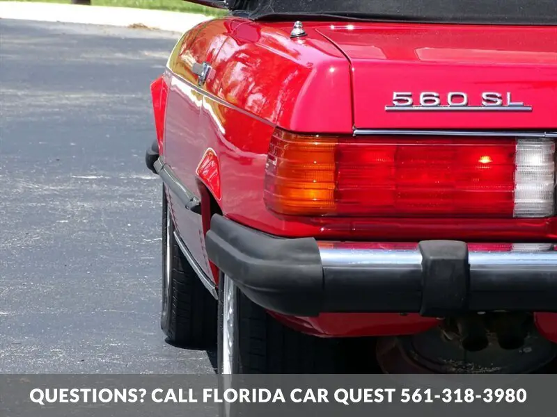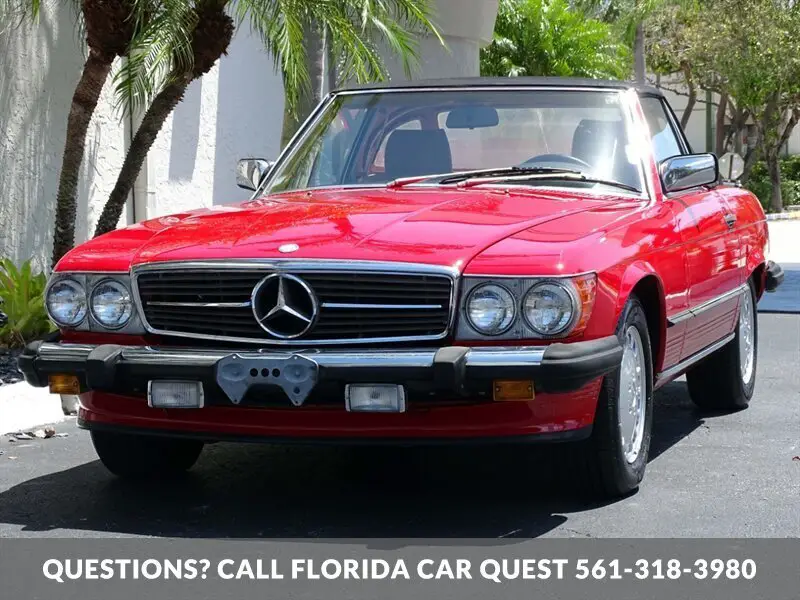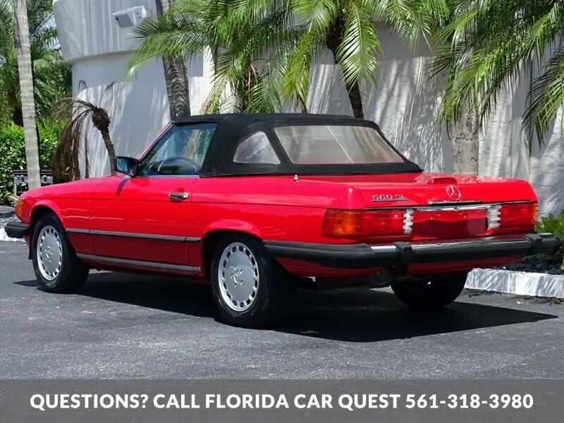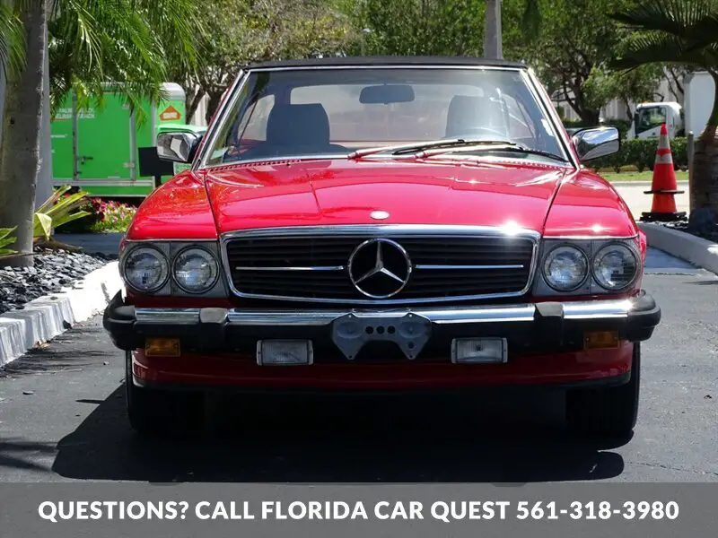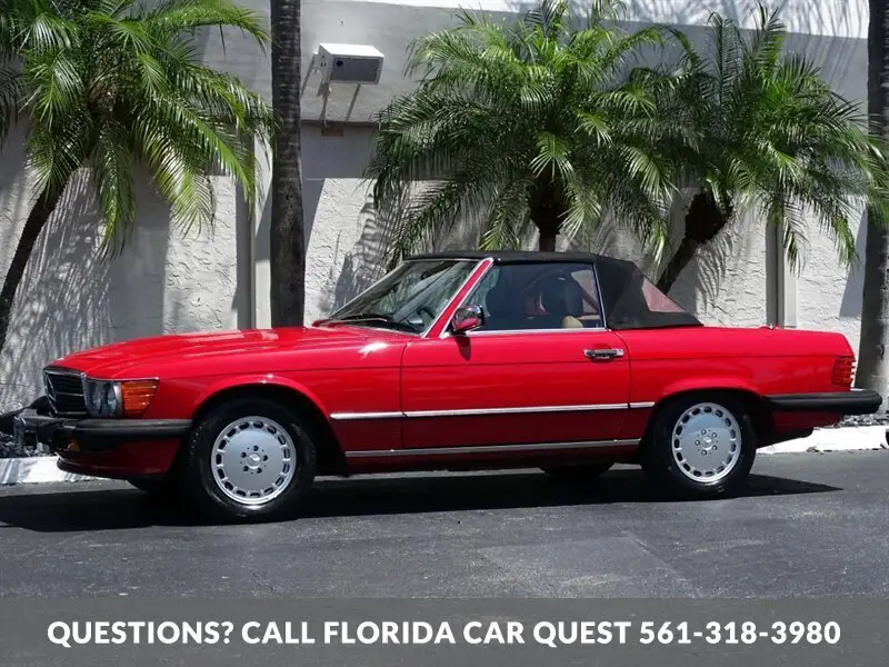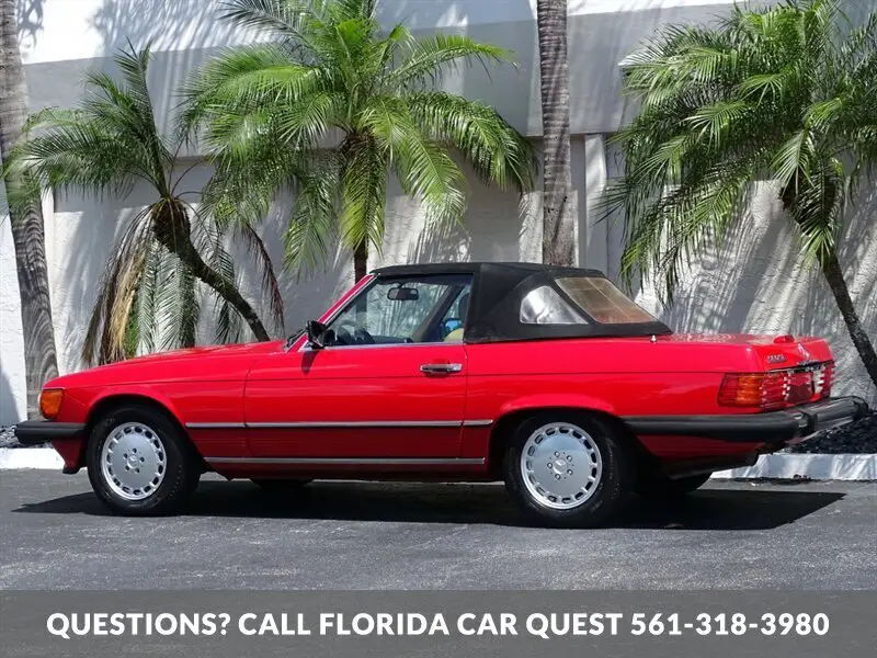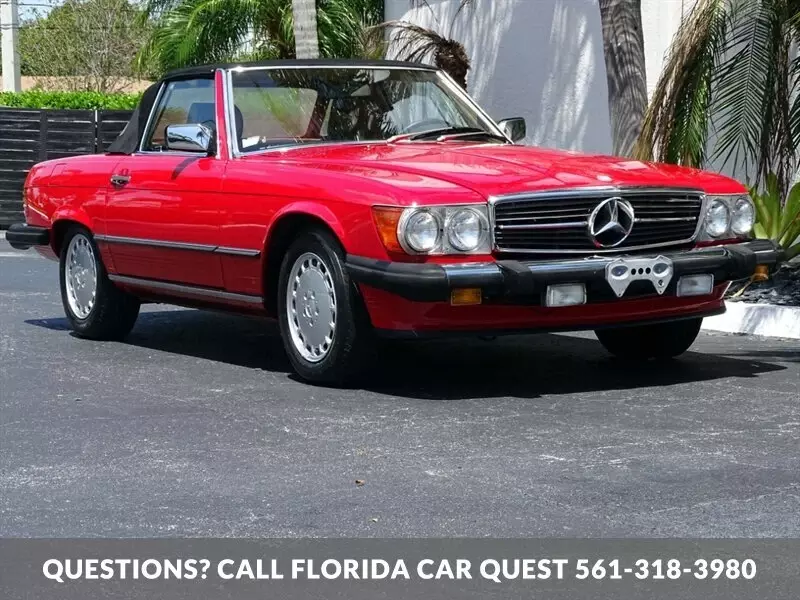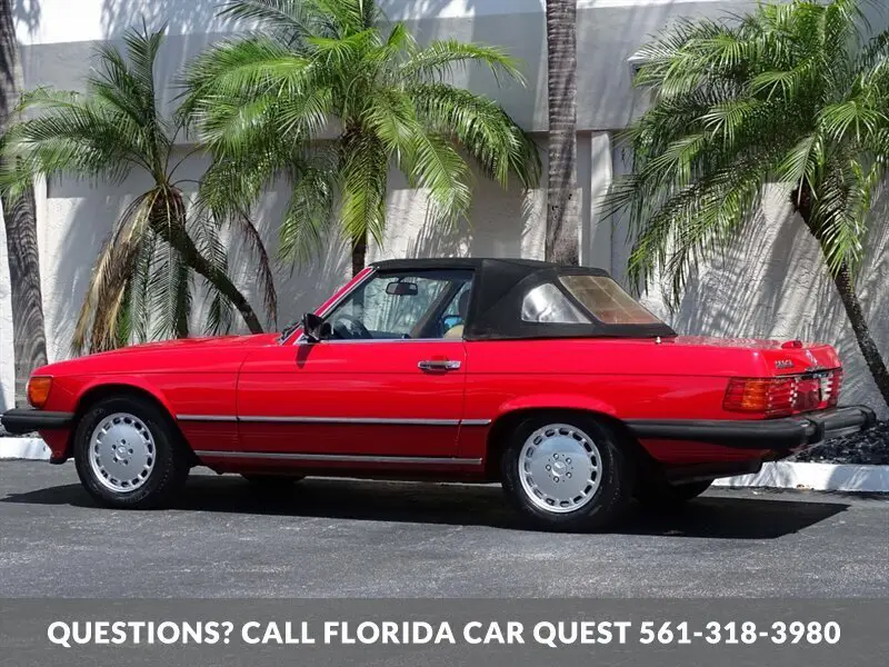 QUESTIONS? CALL US AT 561-318-3980 You are viewing a very nice extremely well kept 1989 Mercedes Benz 560 SL 2-Door Convertible. It is finished in the #1 color combination of these highly sought after & collectible Roadsters. The Exterior is Red with Factory Installed Mercedes Benz Aluminum Alloy Wheels. The Interior is Palomino Colored Leather. The Soft Top is Black. As you may already know 1989 was the last year of production for the 560 SL. Amazingly this 560 SL has only been driven 29720 miles since purchased new. Our 1989 Mercedes Benz 560 SL is in near flawless "Museum Quality" condition. Everything works as it should. The AC is Ice Cold, All The Power Windows work Effortlessly. The Soft Top is in good condition. The AC is ice cold, Cruise Control works & radio is 100%. Power antenna is 100%. If you've been looking for a low mileage 1989 560 SL then this is the car for you. We are offering our 1989 560 SL with a Buy It Now or Best Offer Format. We cheerfully accept all fair offers on any of the fine automobiles we have in our inventory. Call us at 561-318-3980 with your questions & offers.
