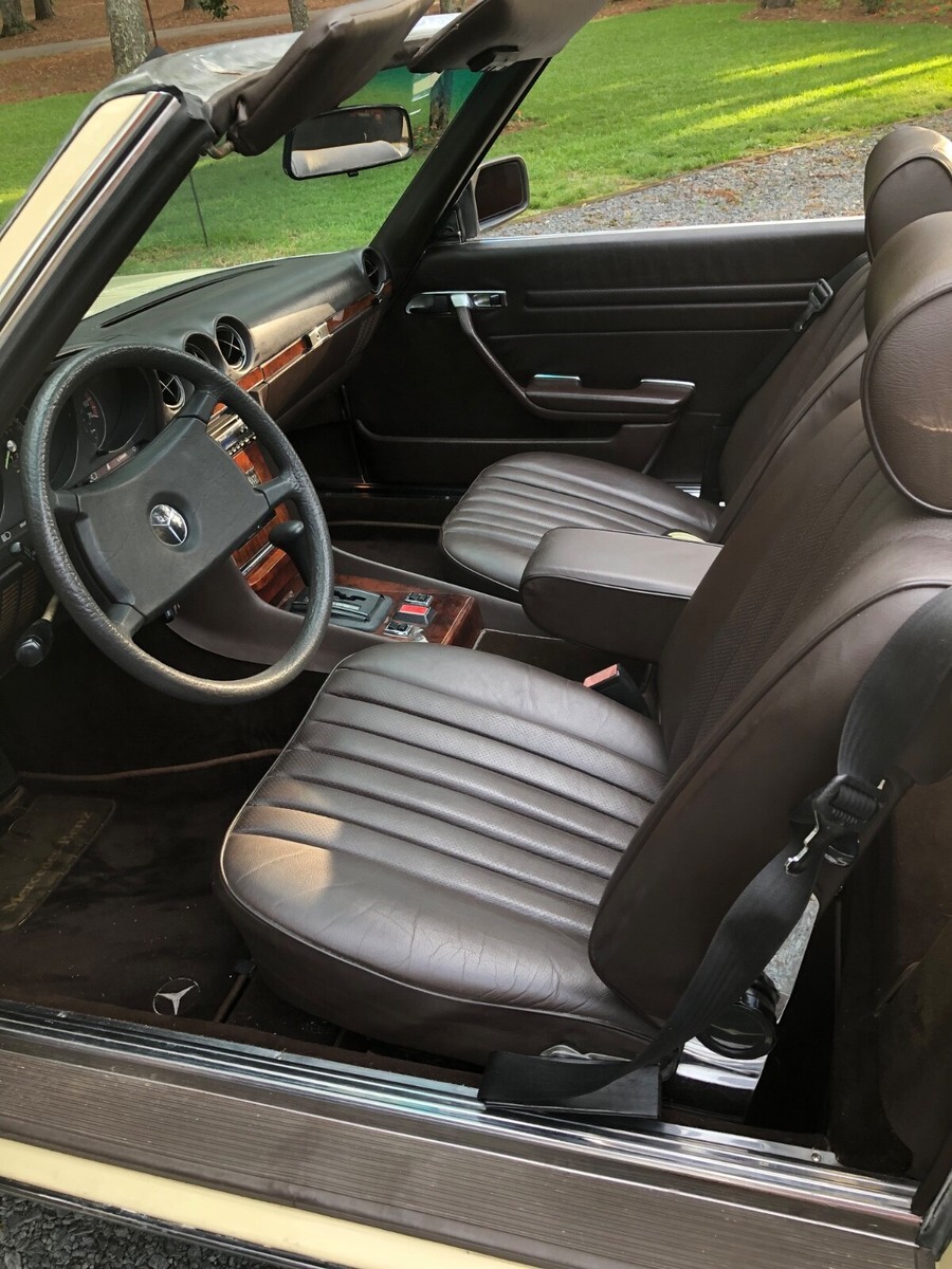 The car is finished in Manila beige (681) The bucket seats are trimmed in Palomino MB-Tex. It is powered by the 4.5 L V8 and was factory rated at 160 hp and 230 lb-ft of torque and three speed automatic transmission. Interior elements include cruise control, power windows & door locks. An upgraded Pioneer CD/Bluetooth radio has been added. (Only item not OEM) It comes with matching removable hardtop, soft top and factory fog lights. Additional equipment includes power antenna, chrome accident bumpers and trim. it has had the double timing chain conversion. This car is from North Carolina and always garage kept.I need room in the garage, this classic has got to go.