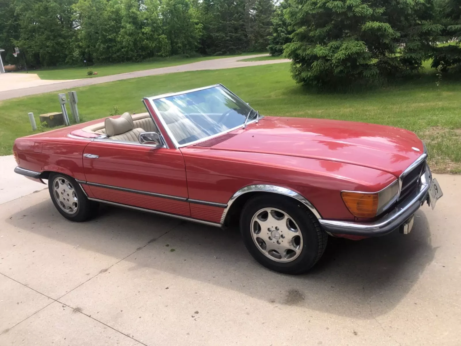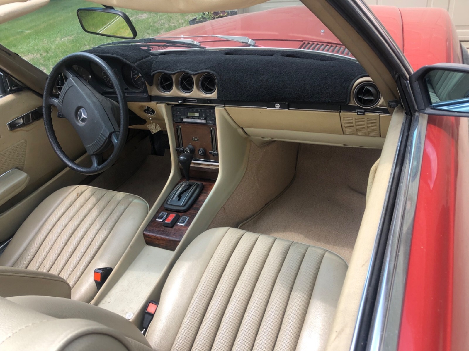 The 1976 Mercedes-Benz 280 SL is a classic sports car with a sleek R107 body type, featuring a tan interior and a vibrant red exterior color. This iconic vehicle has a clean title and is in excellent condition, with only 165,000 miles on the odometer. With its 2-seater capacity, this Mercedes-Benz model is sure to provide a luxurious and stylish driving experience for its new owner.