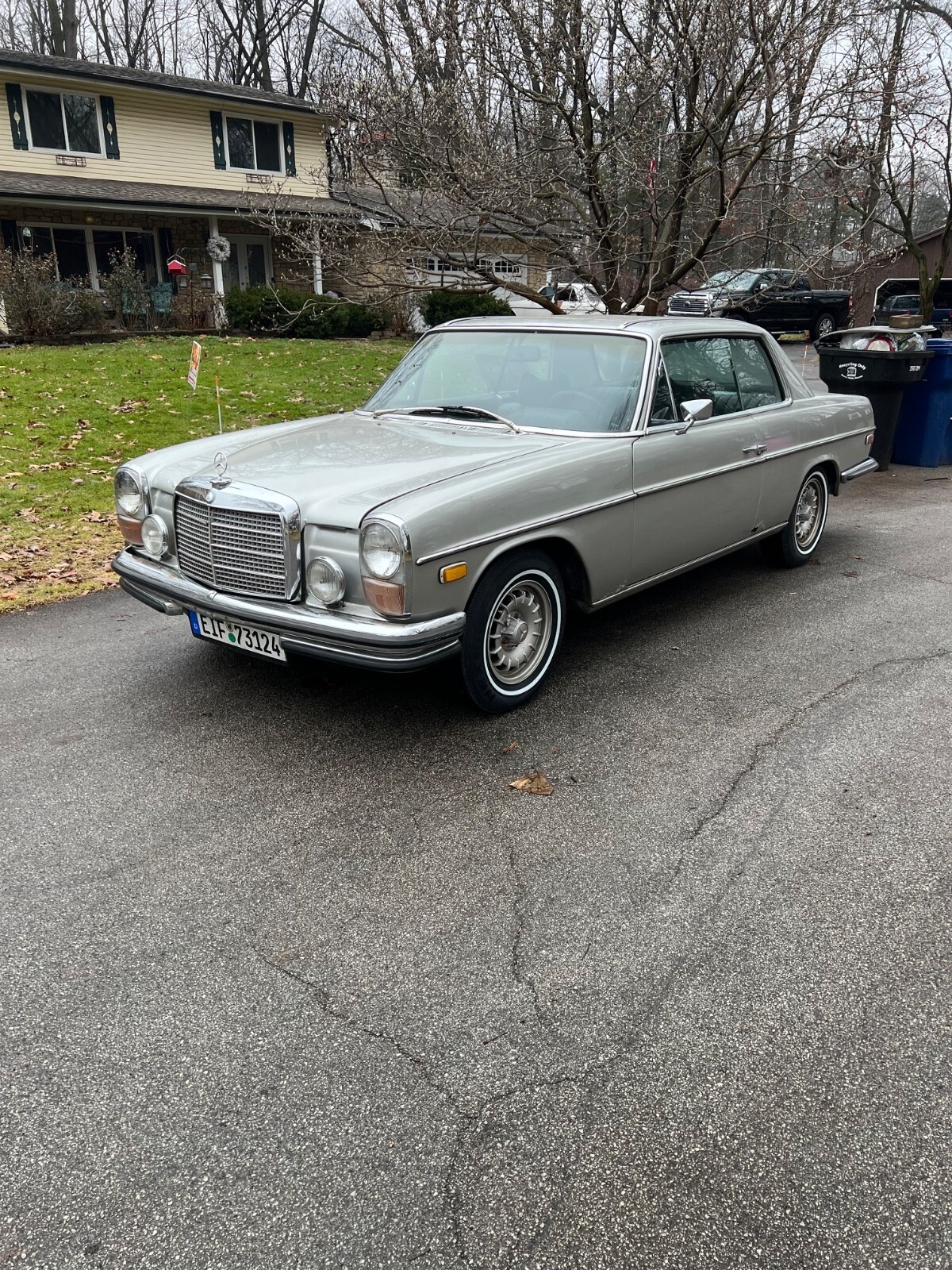The 1973 Mercedes-Benz 200-Series is a classic coupe with a sleek black interior and a silver exterior. This V6 engine vehicle, made in Germany, has only had 4 seats and 2 doors since its production. With a mileage of 51,000 and a clean vehicle title, this automatic transmission car is a desirable choice for those looking for a vintage Mercedes-Benz with a touch of luxury and style.