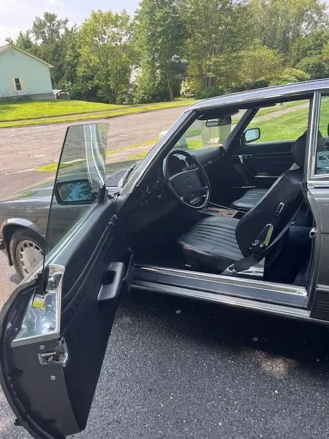 The 1986 Mercedes-Benz SL-Class is a classic convertible with a sleek black leather interior and a sturdy gray exterior. This luxurious vehicle features an automatic transmission, powerful 8-cylinder engine, and rear-wheel drive for a smooth and enjoyable driving experience. With only one previous owner, this Mercedes-Benz comes equipped with a variety of convenient features such as power windows, climate control, and cruise control, making it a stylish and practical choice for car enthusiasts.