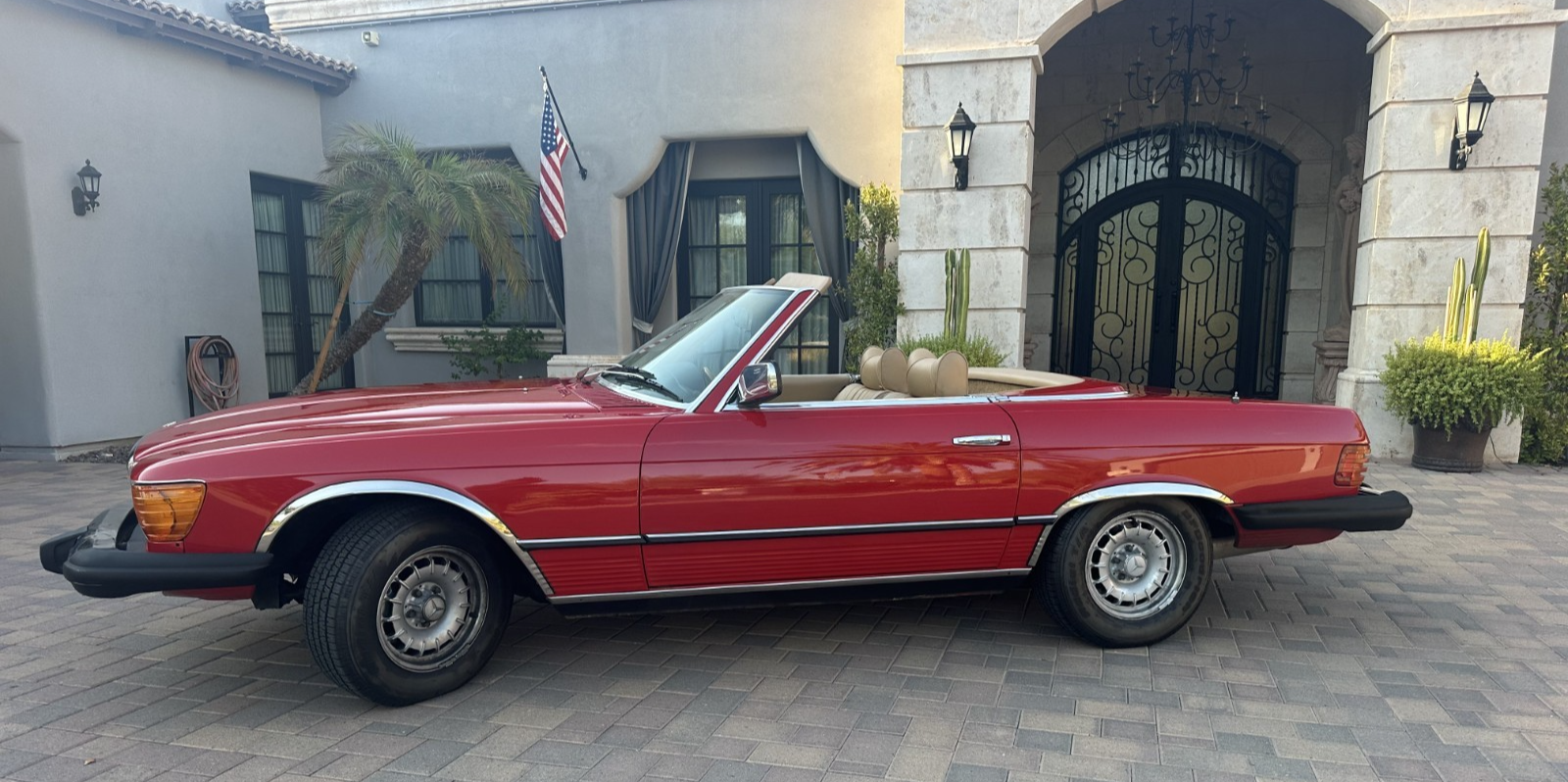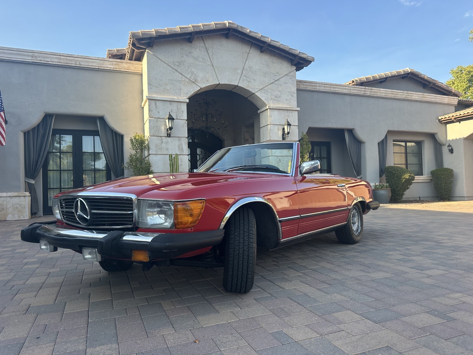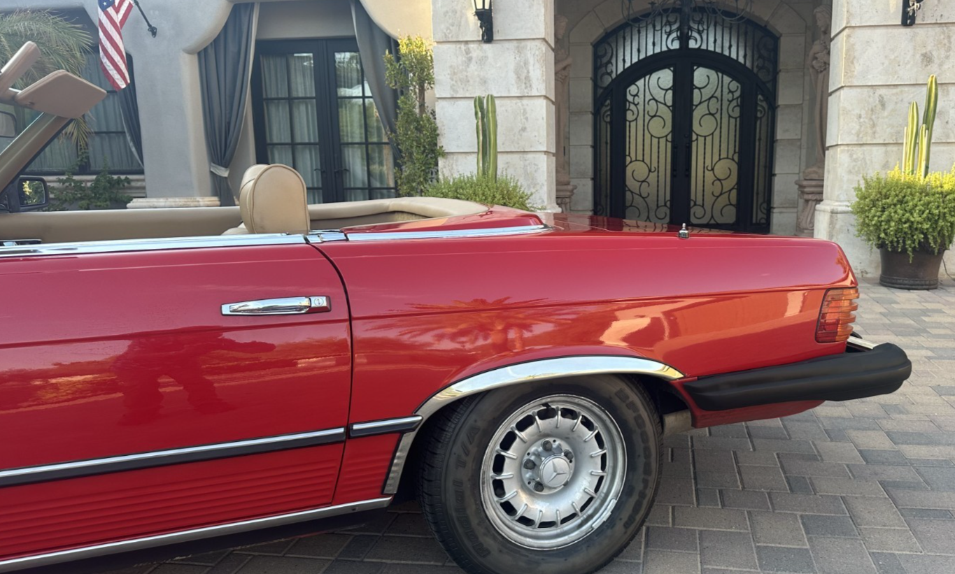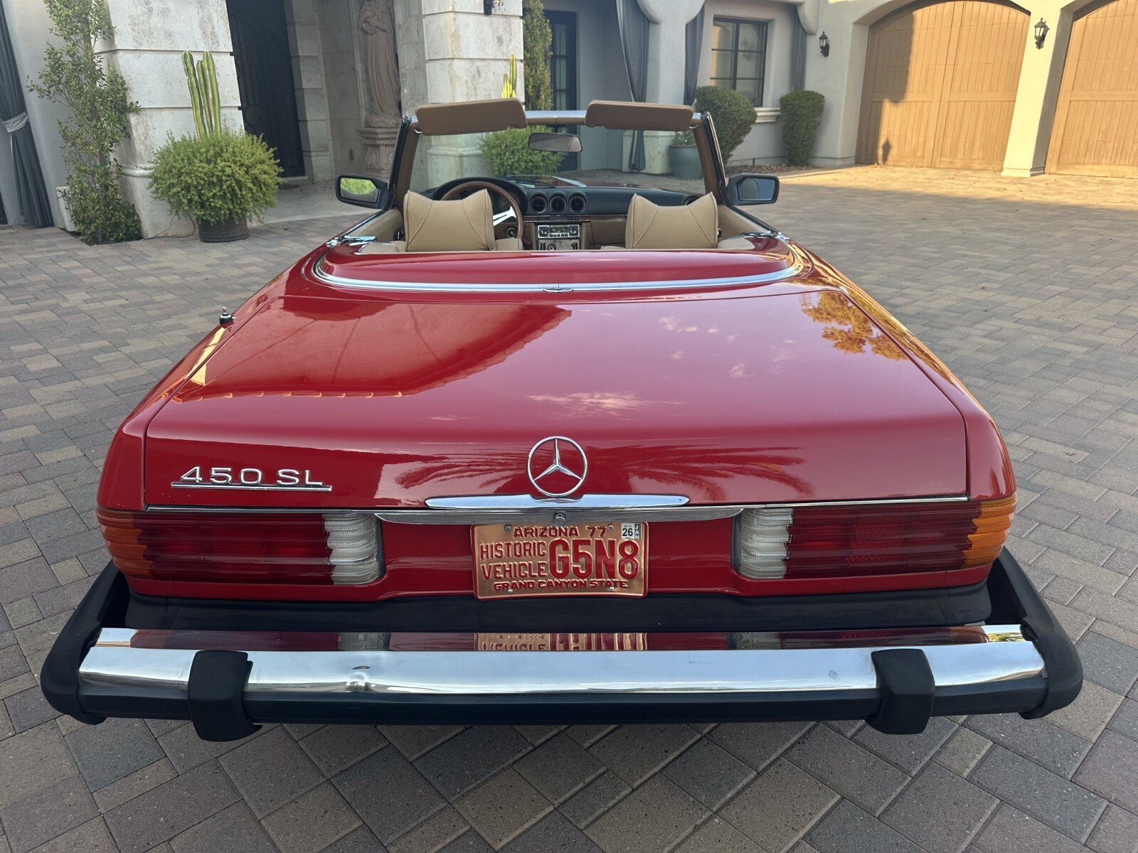 The 1977 Mercedes-Benz 450 SL-Class is a classic convertible with a luxurious tan interior and a striking red exterior. This iconic car features a powerful V8 engine, automatic transmission, and rear-wheel drive for a smooth and exhilarating driving experience. With only 83965 miles on the clock, this vintage gem boasts a clean title and comes equipped with desirable features like power windows, climate control, cruise control, and more. Perfect for car enthusiasts looking for a piece of automotive history with modern convenience and style.- 48-year old classic in great condition.-Both soft and hard tops included!- Very low mileage for its age (averaging 1,800 miles per year).- A few minor paint dents / scratches.- Interior in great condition with no tears or blemishes.- 4 brand new radial BF Goodrich tires.- Runs very well and sounds incredible (big engine).- All critical functions (brakes, transmission, engine, suspension, lights /blinkers, etc.) in very good condition according to local Classic Mercedes Benz repair experts shops.- The cruise control does not work.- A brand new aftermarket Crutchfield Europa radio was added with USB port to allow playing your cell phone through the new Crutchfield speakers.- See attached NMVTIS report (Autocheck / CarFax do not have reports prior to 1981).- Passed its annual 2025 Emission Testing with high flying colors.