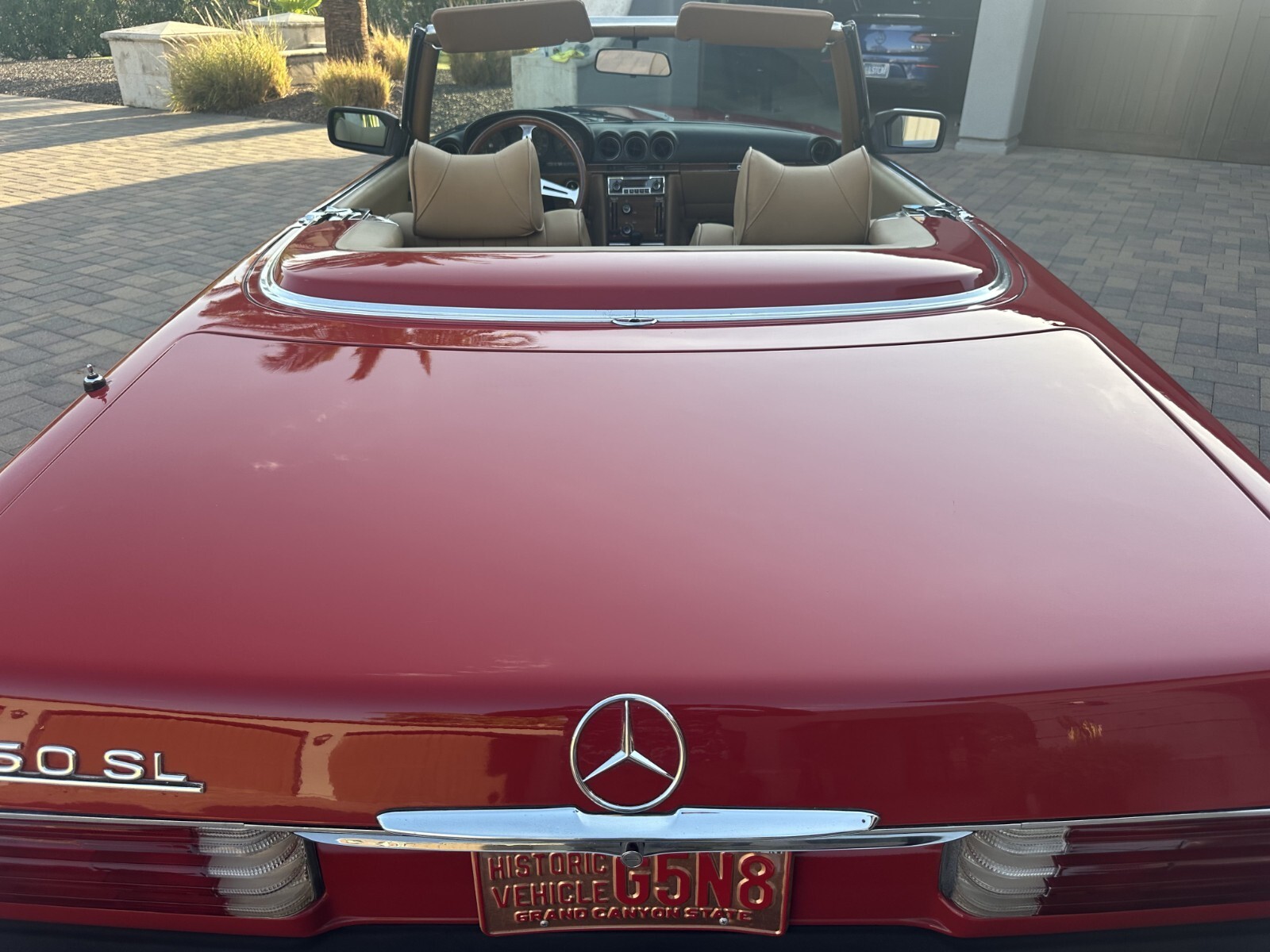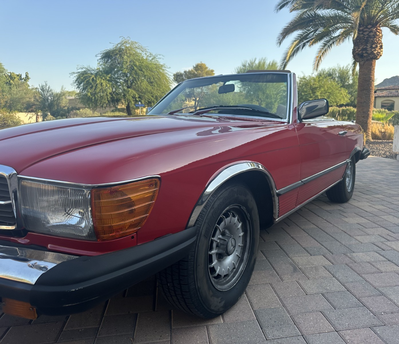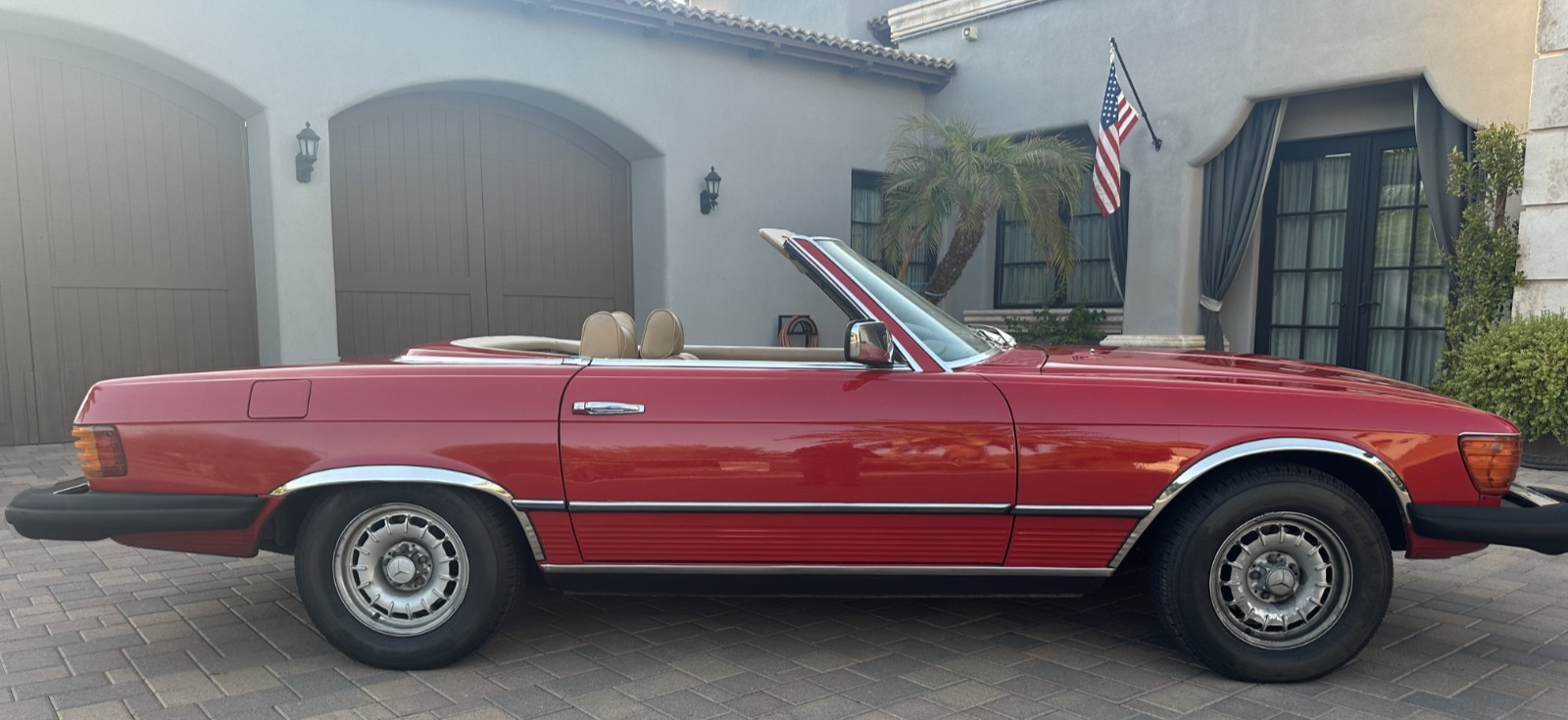 The 1977 Mercedes-Benz 450 SL-Class is a classic convertible with a luxurious tan interior and a striking red exterior. This iconic car features a powerful V8 engine, automatic transmission, and rear-wheel drive for a smooth and exhilarating driving experience. With only 83965 miles on the clock, this vintage gem boasts a clean title and comes equipped with desirable features like power windows, climate control, cruise control, and more. Perfect for car enthusiasts looking for a piece of automotive history with modern convenience and style.- 48-year old classic in great condition.-Both soft and hard tops included!- Very low mileage for its age (averaging 1,800 miles per year).- A few minor paint dents / scratches.- Interior in great condition with no tears or blemishes.- 4 brand new radial BF Goodrich tires.- Runs very well and sounds incredible (big engine).- All critical functions (brakes, transmission, engine, suspension, lights /blinkers, etc.) in very good condition according to local Classic Mercedes Benz repair experts shops.- The cruise control does not work.- A brand new aftermarket Crutchfield Europa radio was added with USB port to allow playing your cell phone through the new Crutchfield speakers.- See attached NMVTIS report (Autocheck / CarFax do not have reports prior to 1981).- Passed its annual 2025 Emission Testing with high flying colors.