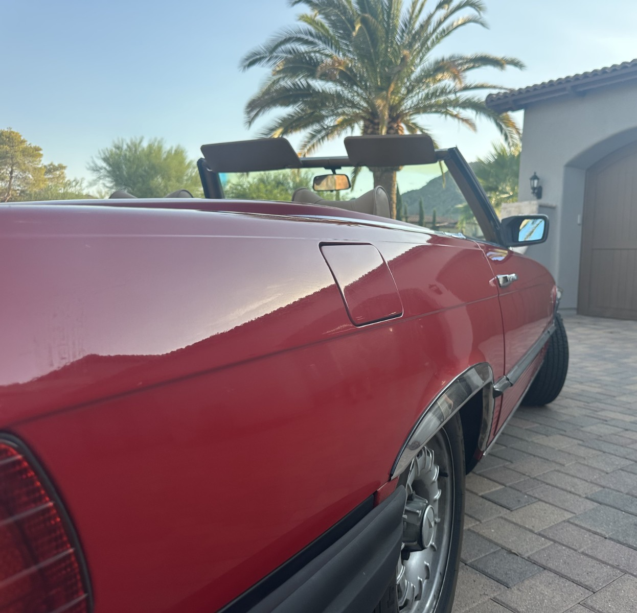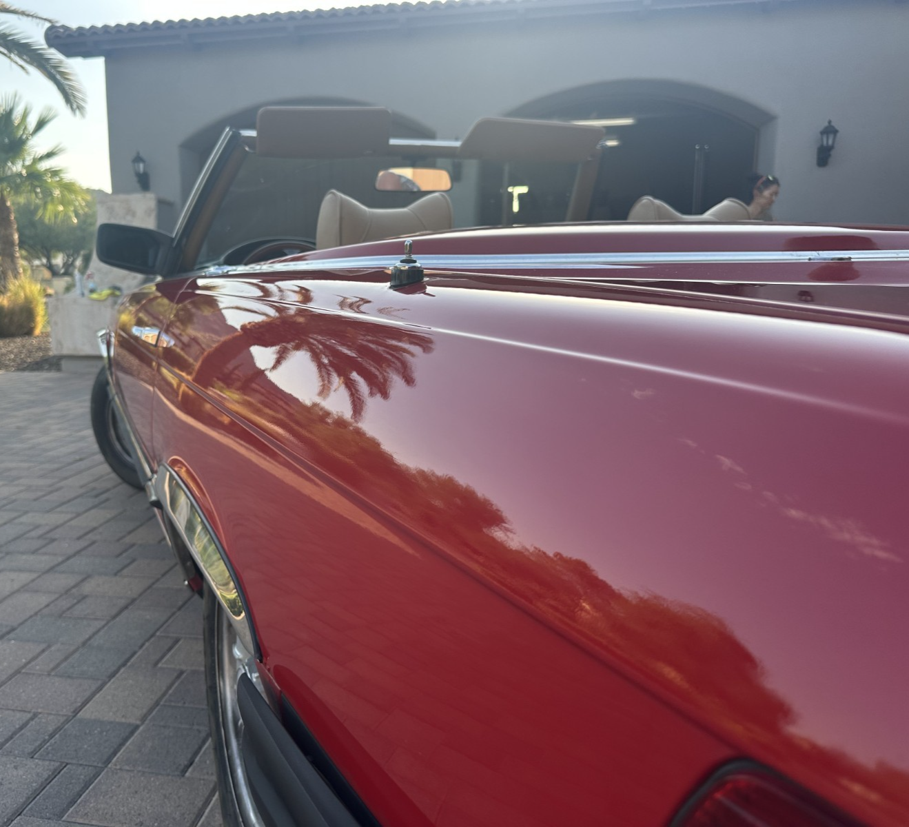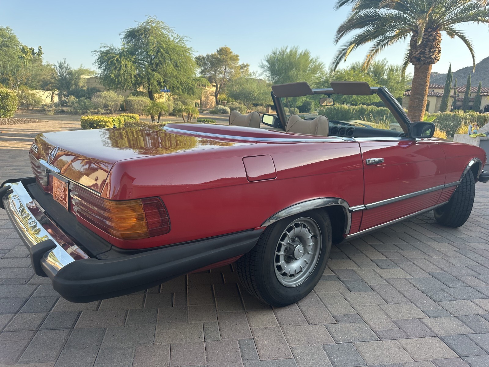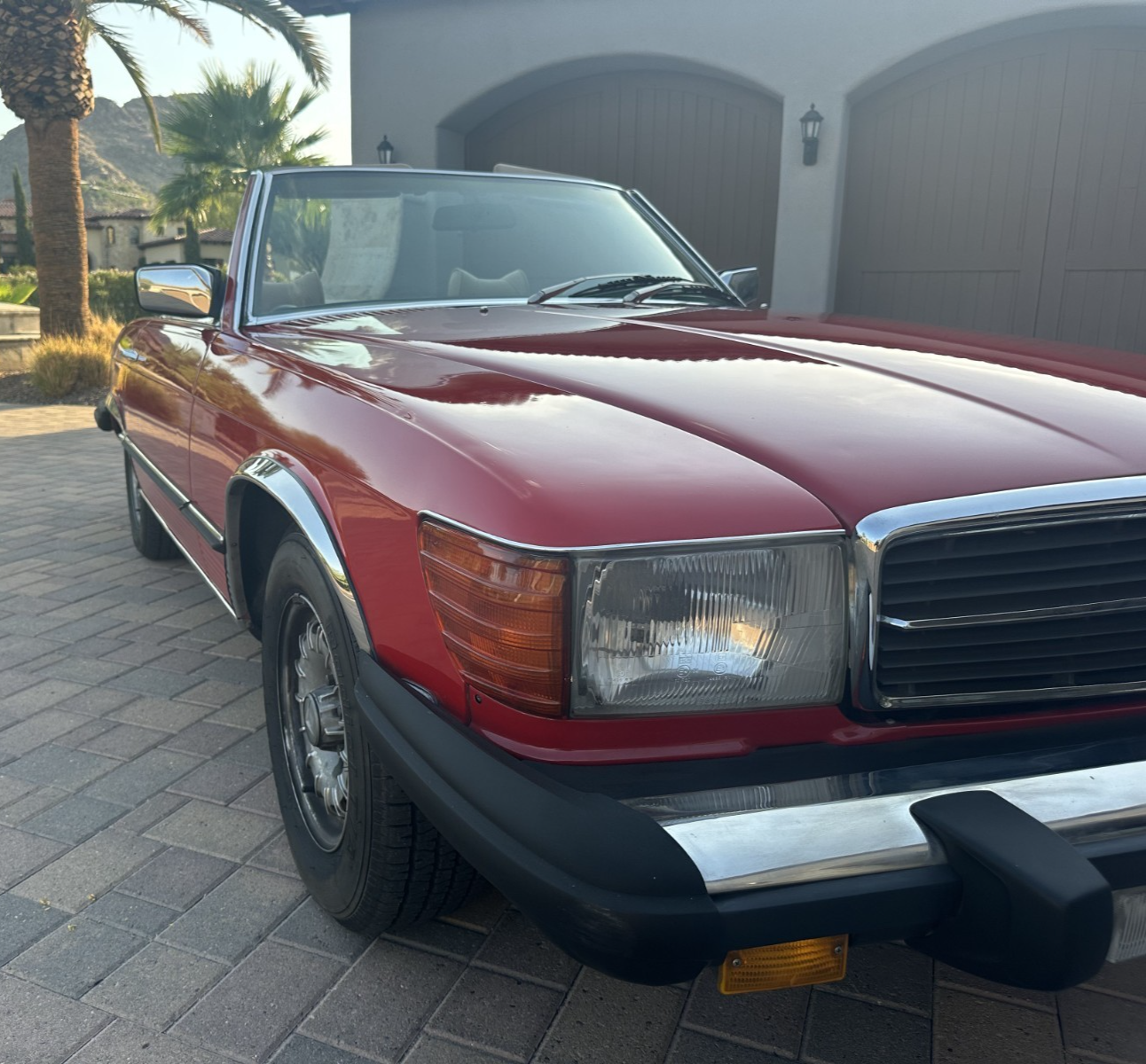The 1977 Mercedes-Benz 450 SL-Class is a classic convertible with a luxurious tan interior and a striking red exterior. This iconic car features a powerful V8 engine, automatic transmission, and rear-wheel drive for a smooth and exhilarating driving experience. With only 83965 miles on the clock, this vintage gem boasts a clean title and comes equipped with desirable features like power windows, climate control, cruise control, and more. Perfect for car enthusiasts looking for a piece of automotive history with modern convenience and style.- 48-year old classic in great condition.-Both soft and hard tops included!- Very low mileage for its age (averaging 1,800 miles per year).- A few minor paint dents / scratches.- Interior in great condition with no tears or blemishes.- 4 brand new radial BF Goodrich tires.- Runs very well and sounds incredible (big engine).- All critical functions (brakes, transmission, engine, suspension, lights /blinkers, etc.) in very good condition according to local Classic Mercedes Benz repair experts shops.- The cruise control does not work.- A brand new aftermarket Crutchfield Europa radio was added with USB port to allow playing your cell phone through the new Crutchfield speakers.- See attached NMVTIS report (Autocheck / CarFax do not have reports prior to 1981).- Passed its annual 2025 Emission Testing with high flying colors.