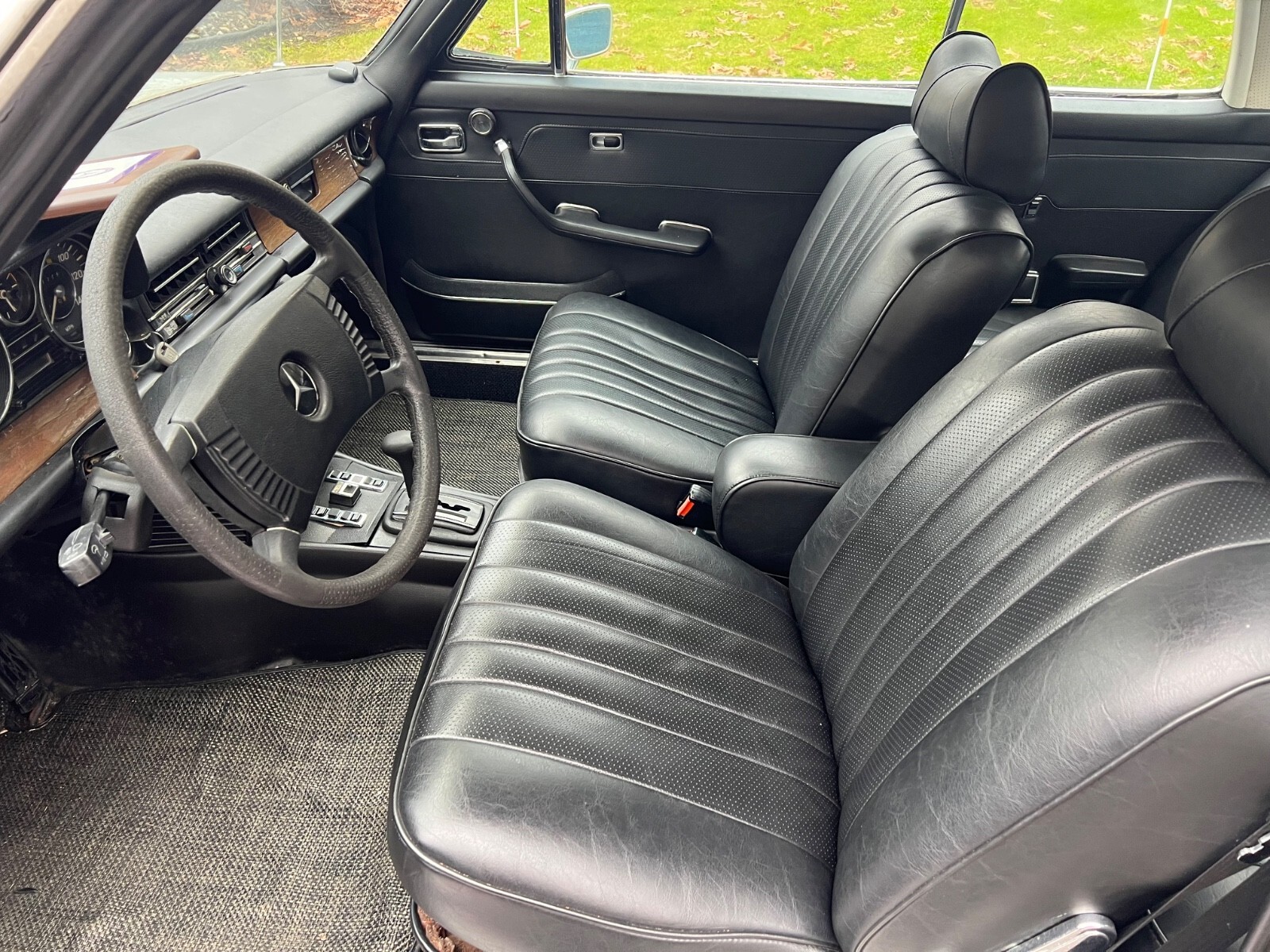 The 1973 Mercedes-Benz 200-Series is a classic coupe with a sleek black interior and a silver exterior. This V6 engine vehicle, made in Germany, has only had 4 seats and 2 doors since its production. With a mileage of 51,000 and a clean vehicle title, this automatic transmission car is a desirable choice for those looking for a vintage Mercedes-Benz with a touch of luxury and style.