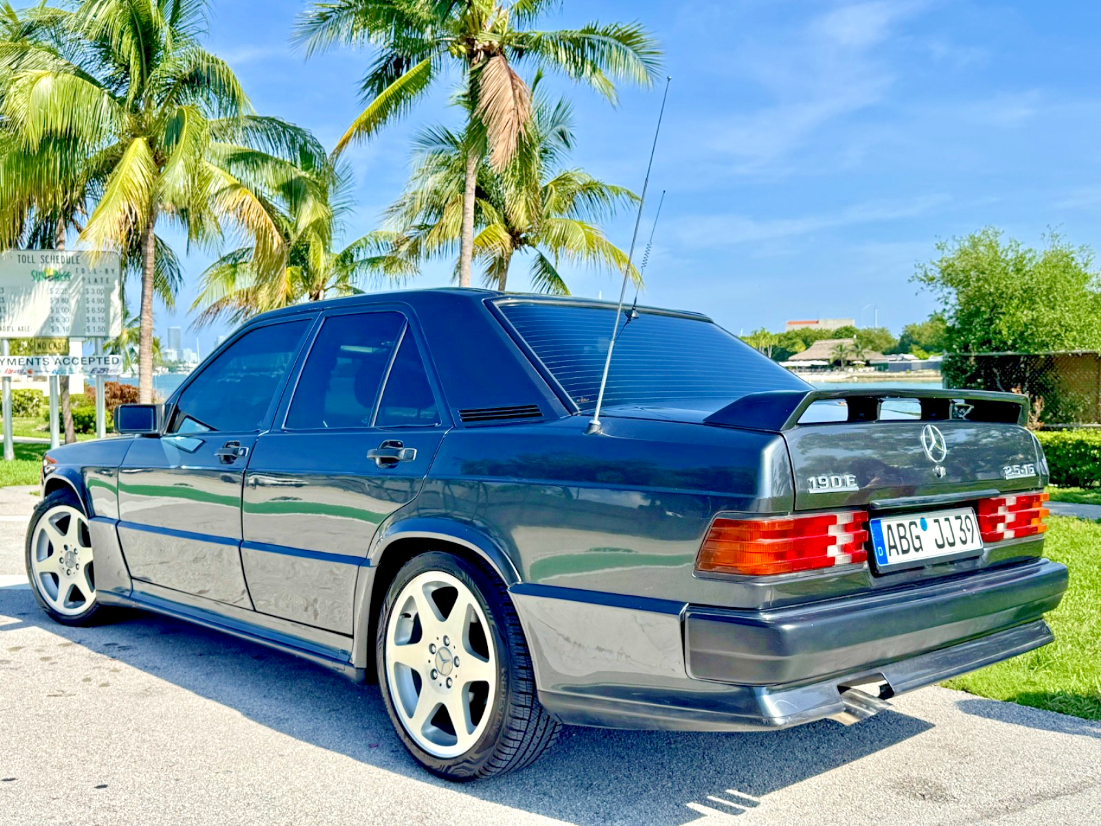 Aerodynamic body kit (front spoiler, side skirts, rear lip spoiler), “190E” and “2.5-16” badging, all original glass and moldings, optional sunroof (fully functional), air conditioning (blows cold), rear headrests, headlight wipers, sport seats, period-correct Continental CD/AM/FM stereo, additional gauges (rev counter, oil temperature, oil pressure, stopwatch, all fully functional), electric windows (fully functional).