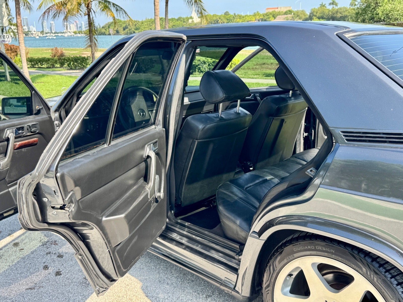 Aerodynamic body kit (front spoiler, side skirts, rear lip spoiler), “190E” and “2.5-16” badging, all original glass and moldings, optional sunroof (fully functional), air conditioning (blows cold), rear headrests, headlight wipers, sport seats, period-correct Continental CD/AM/FM stereo, additional gauges (rev counter, oil temperature, oil pressure, stopwatch, all fully functional), electric windows (fully functional).