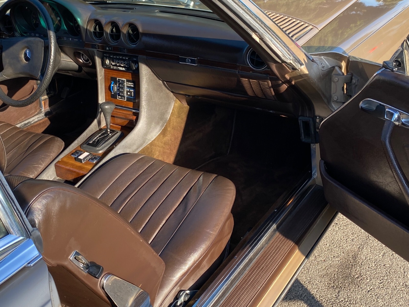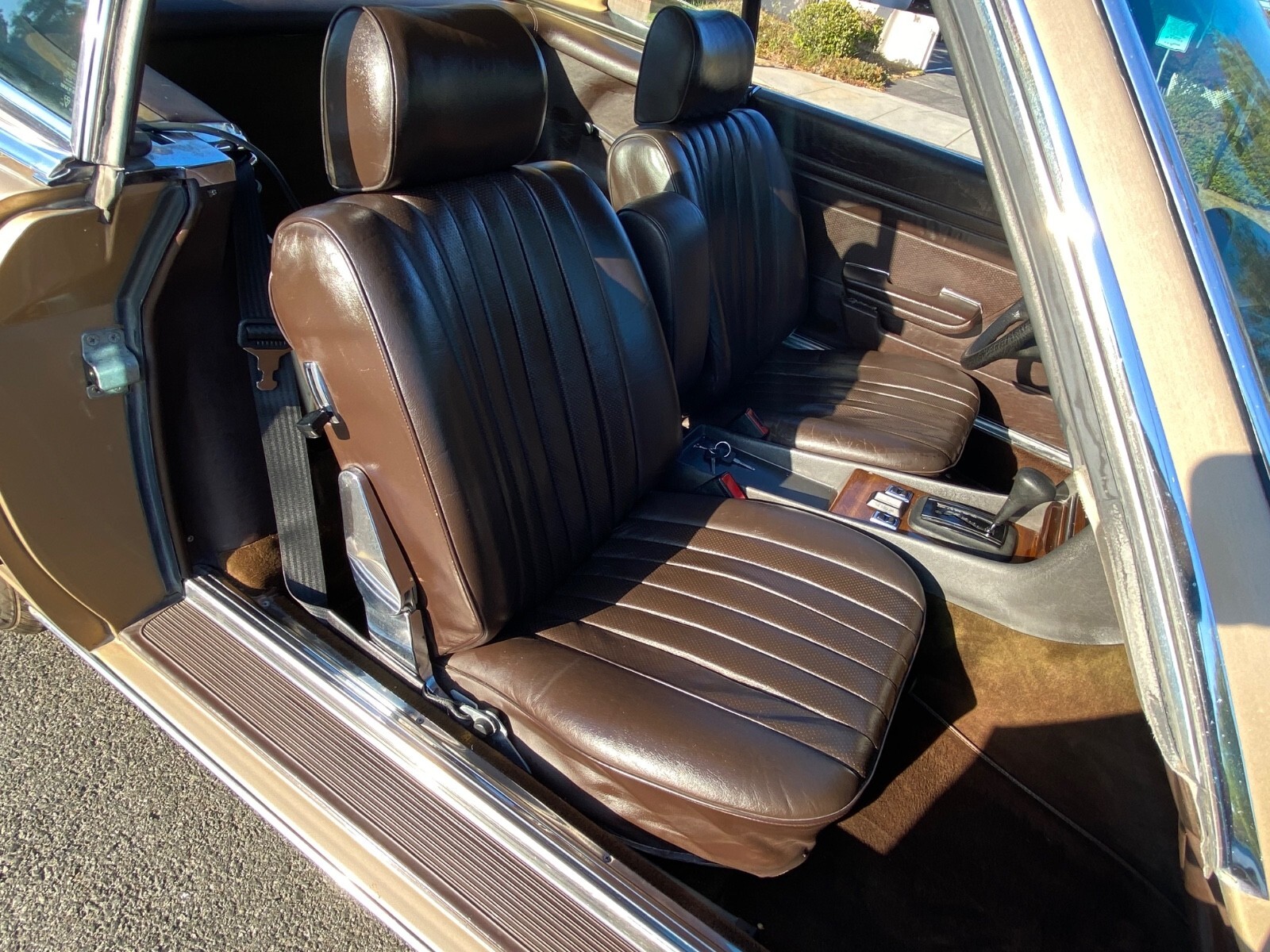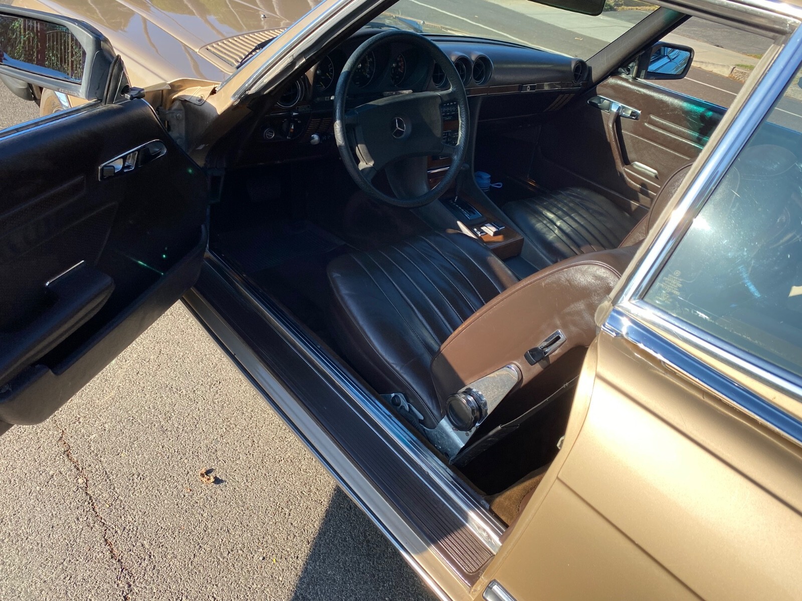 This is a truly stunning example of the classic R107 380SL, one of Mercedes-Benz’s most elegant and enduring roadsters. The gold-over-brown color combination is extremely rare and desirable, making this car stand out even among other well-kept examples.