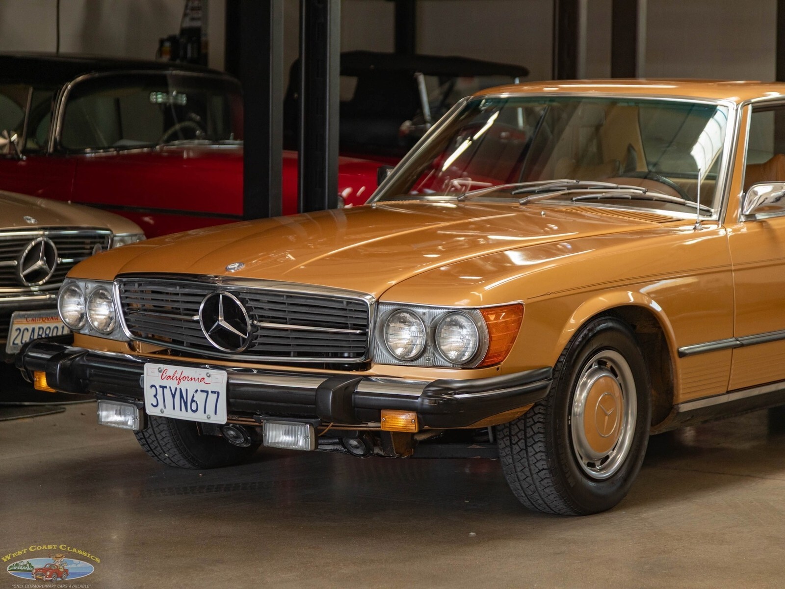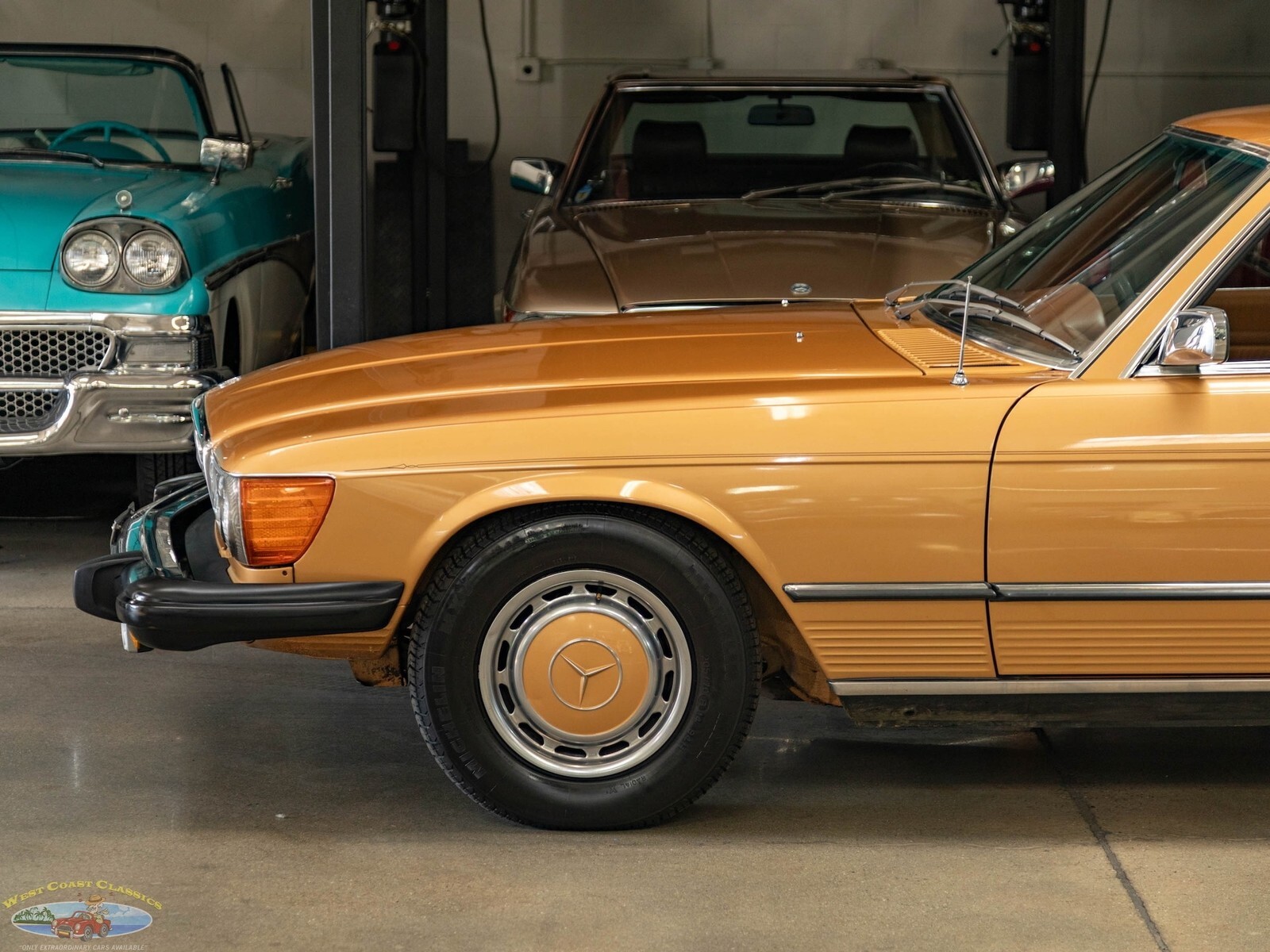The very striking 'Byzantine Gold Metallic' color paint is in very fine condition and the 'Palomino' interior is also in gorgeous shape with virtually no signs of wear and the car has its original Mercedes 'Bundt' wheels which are also in exceptional condition.