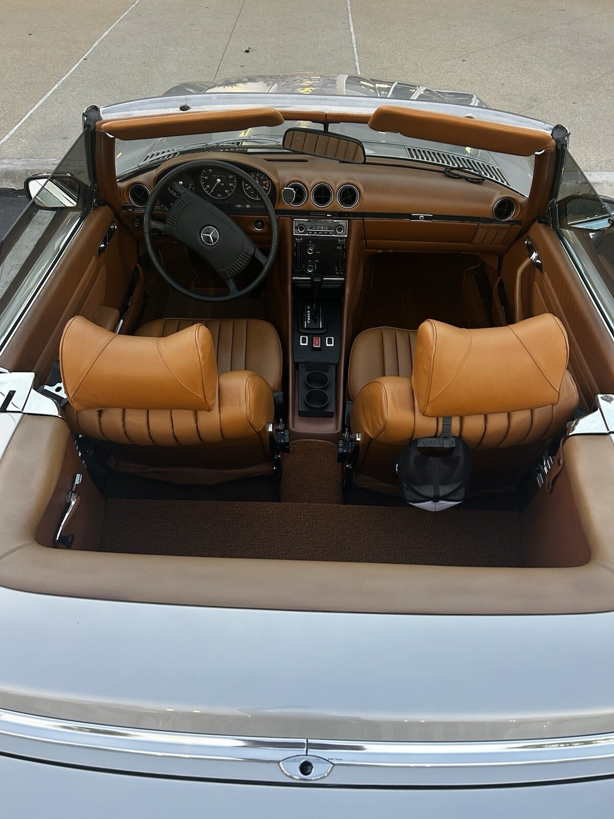 This 450SL comes with both thesoft-top and auxiliary hardtop. It also comes with the original books, tool kit, data sheet, manuals, and a wealth of original documentation that is pictured in this ad. This is an excellent opportunity to own a classic Mercedes that is ready to be used and enjoyed at an unbeatable value. Mercedes is finished in the absolutely beautiful and highly desirable color combination of Astal Silver Metallic (735) over Light Tan Leather (204) interior with a Black (740) soft-top. Please peruse all of the photos, and other information in this ad to get a true sense of clean and nice this 450SL really is.
