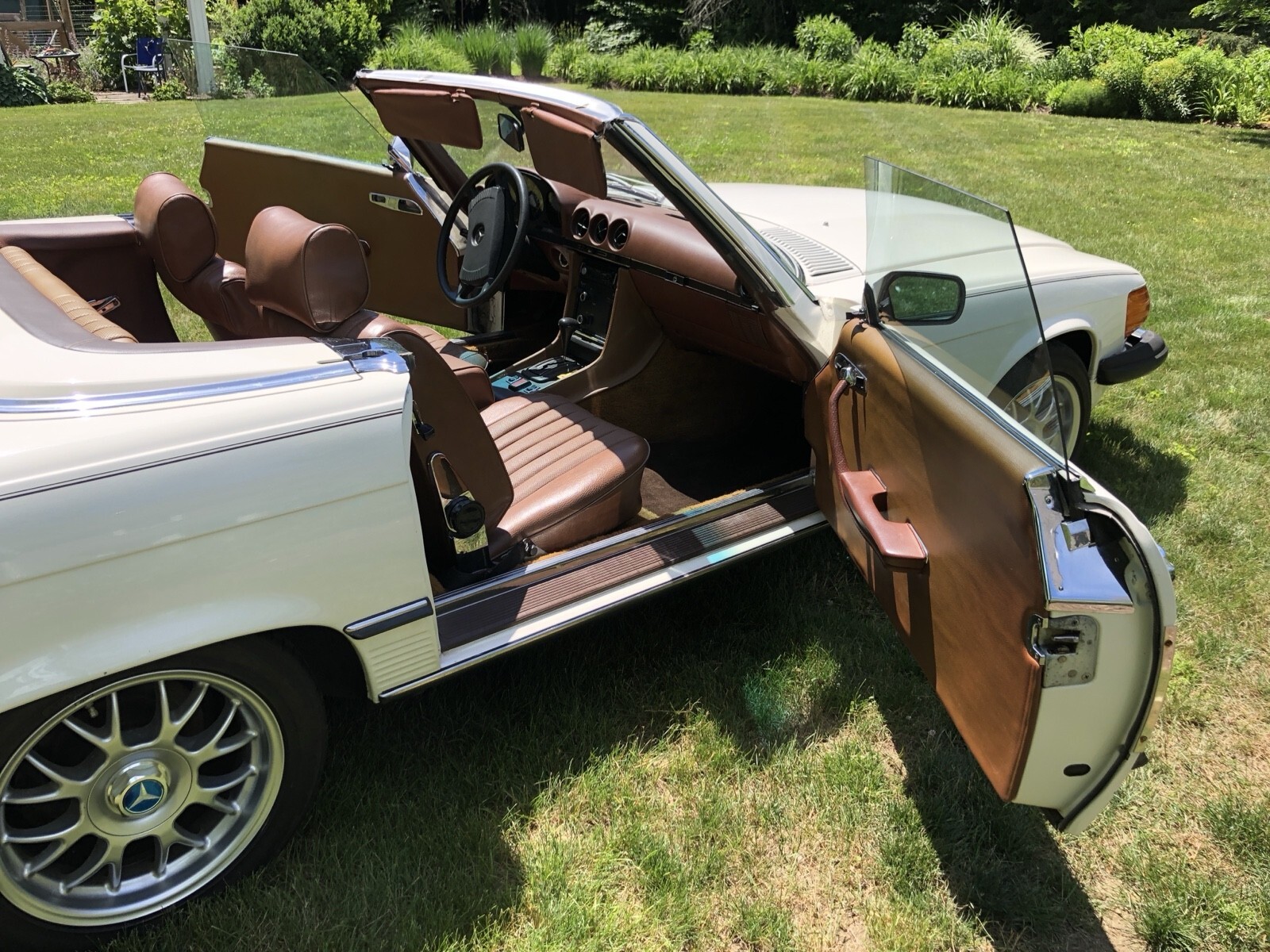 Beautiful classic SL, great color combo, white exterior with saddle MB Tex interior.
