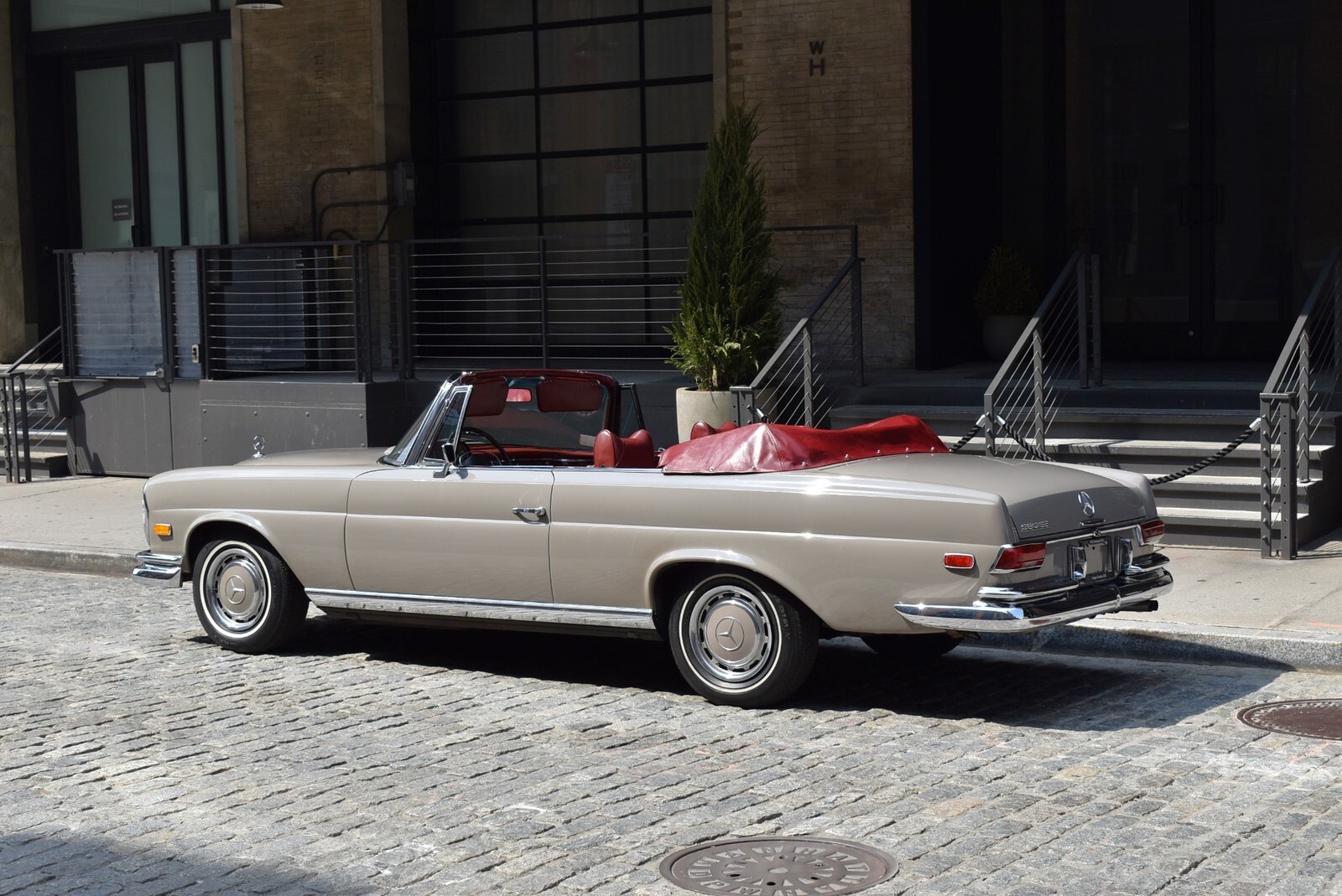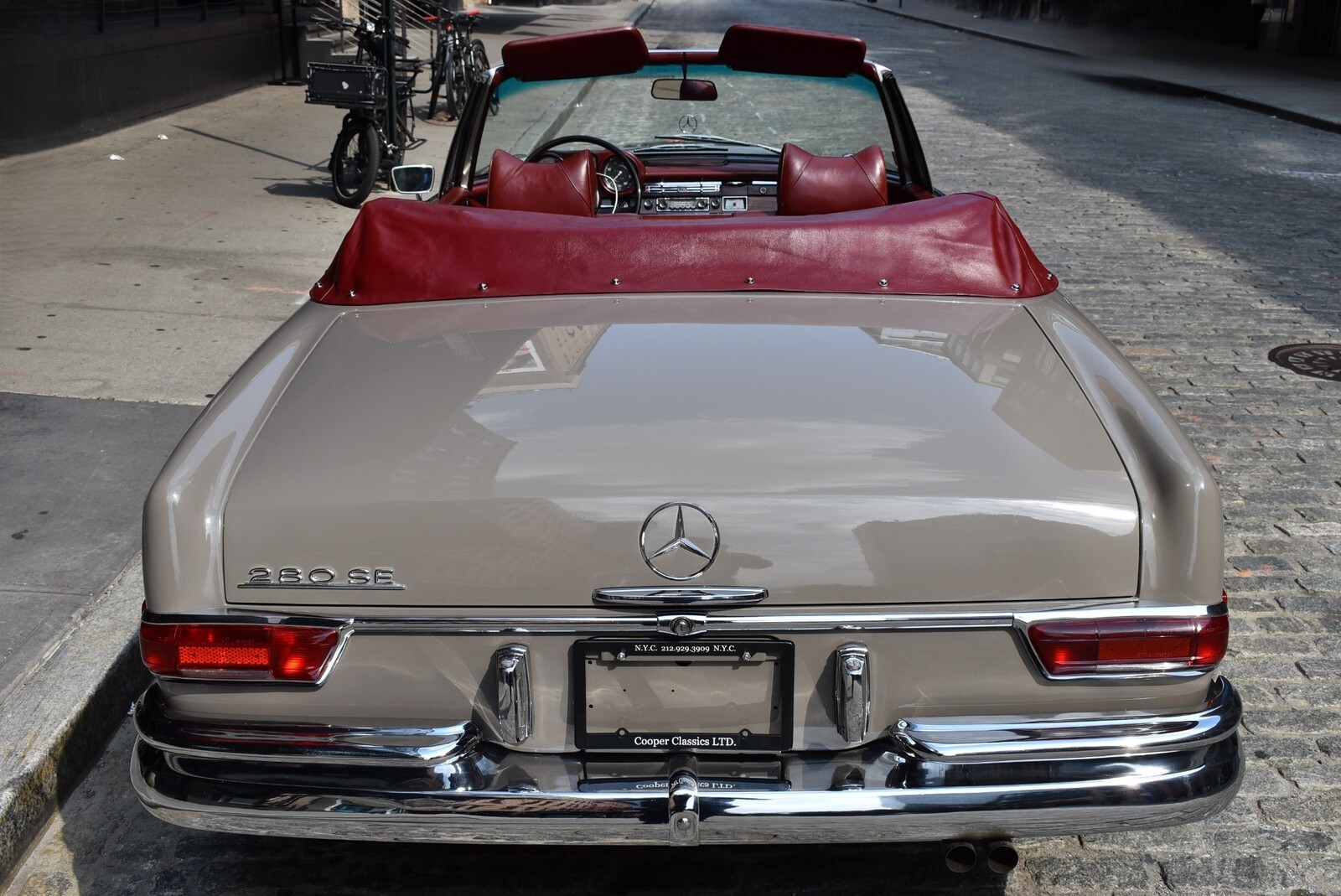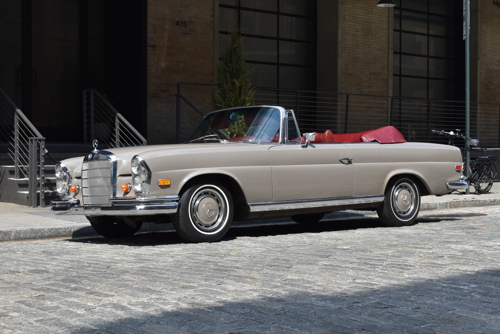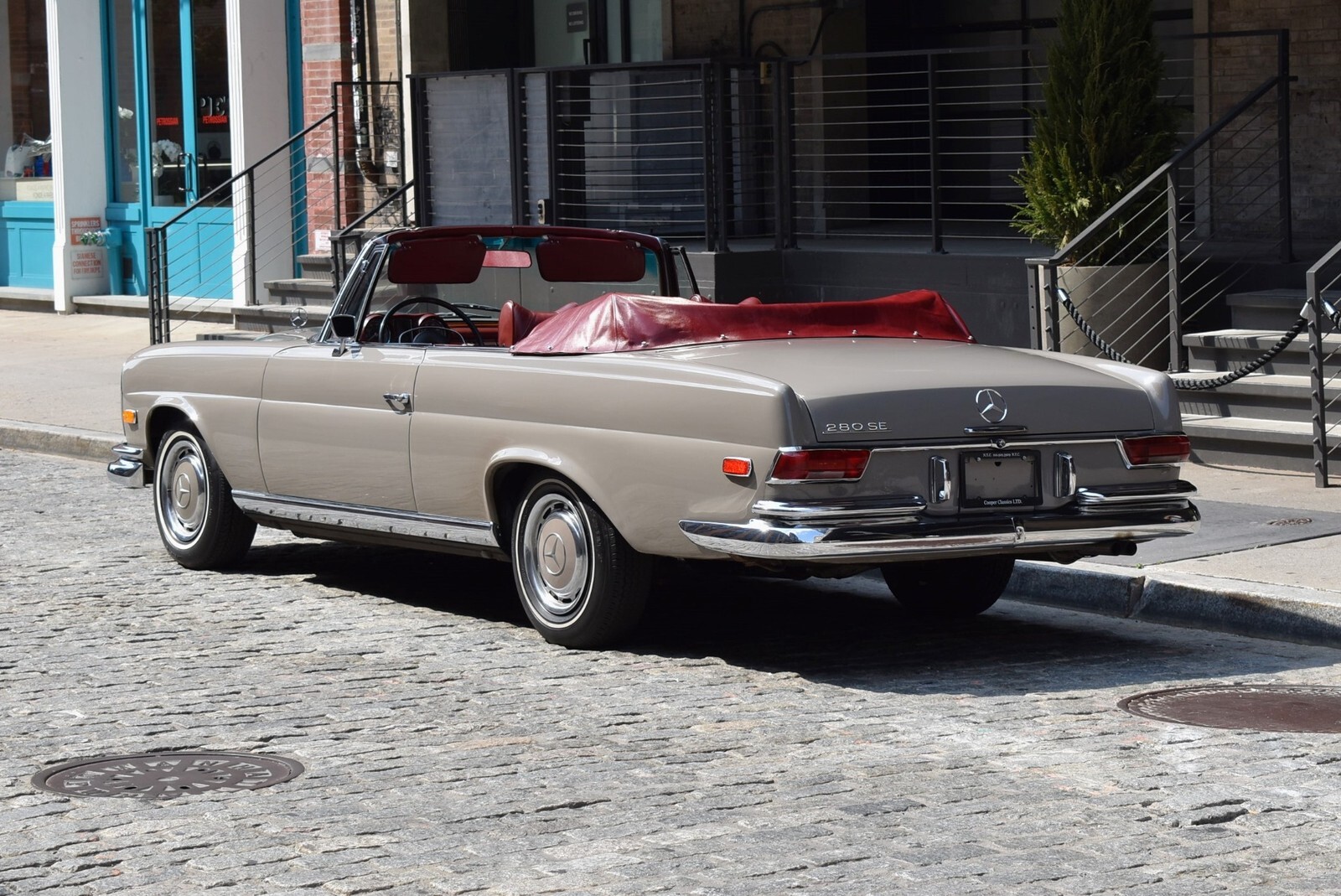 Cooper Classic has the pleasure of presenting this spectacular and highly original 280SE. What is essentially a one owner car, this 280SE was first leased by its original owner in Providence Rhode Island. She bought out the lease in 1971, and car remained under her ownership until 2021, when it was acquired through her estate by a Massachusetts based collector, who kept the vehicle stored in his collection until it was subsequently acquired by us. This incredibly original 280SE retains its original Maroon Leather interior, featuring light but beautiful patina, exemplifying the attention and care paid to the car throughout its life. The car is equipped highly desirable options such as a Becker push-button Radio, Kuhlmeister MagneTemp Air-Condition, desirable power windows, and a floor mounted shifter. While attempting to preserve the originality of the car, thoughtful consideration has been given maintaining its spectacular looks, including the refurbishment of the incredible Zebra wood dashboard trim, and respray in it's original Beige Grey paint under previous ownership. Cooper Classics has continued these efforts by replacing the convertible top with a brand-new unit, befitting of a car with such excellent paint and impeccable brightwork, now presenting as it did new in period. Great attention has also been paid to the mechanical aspects of the vehicle, including the replacement of the heater slides, cooling hoses and refurbishment of the radiator, leading to car that drives just well as it did when new. Comes with spare tire, jack, tool rolls, manual, original lease buy out documentation and a copy of the Mercedes-Benz Data Card