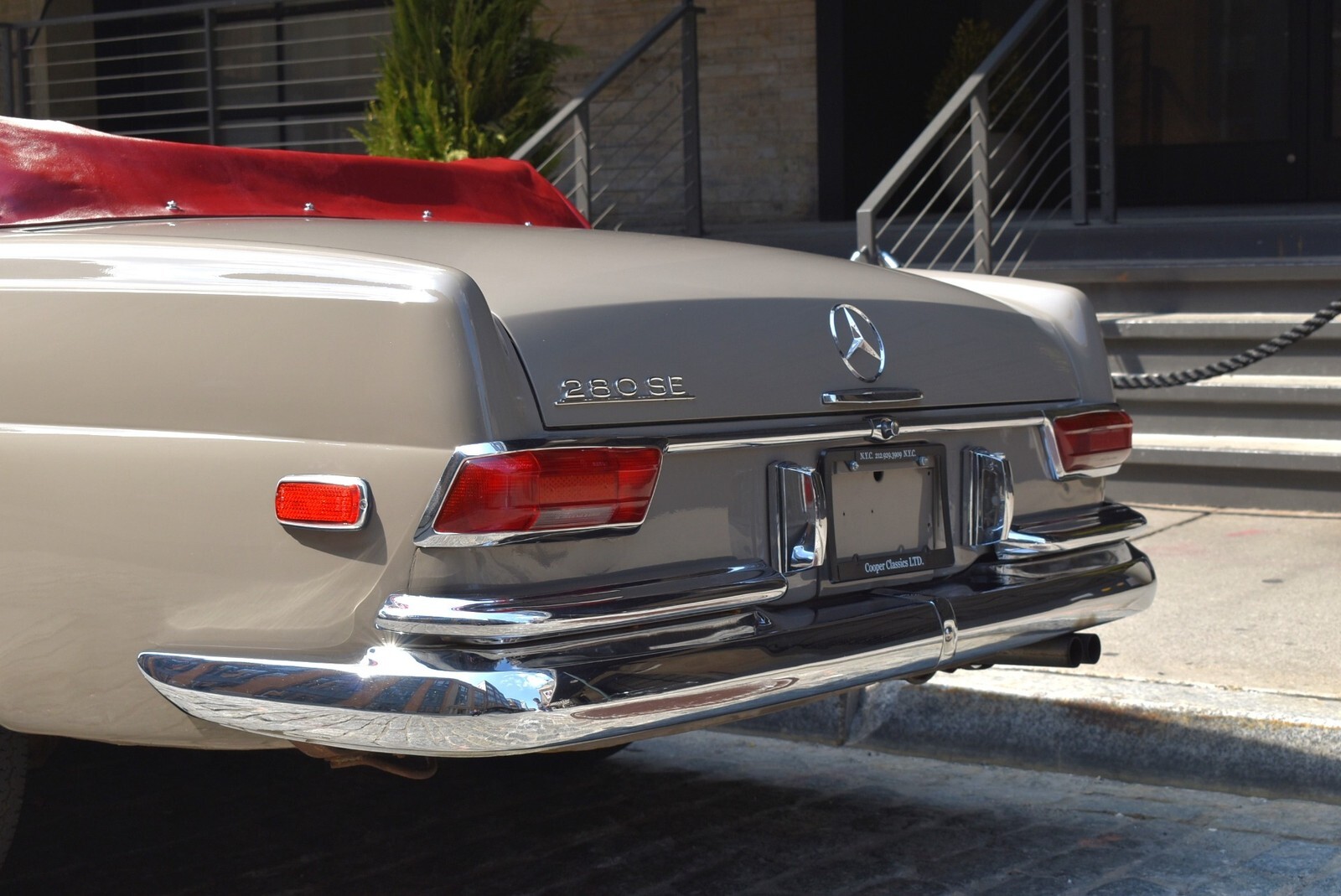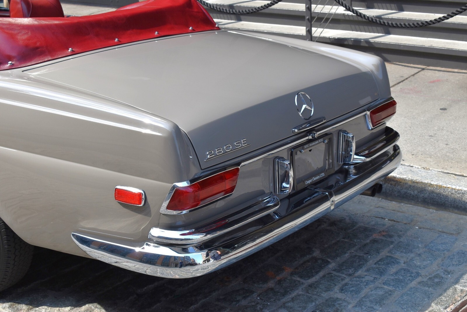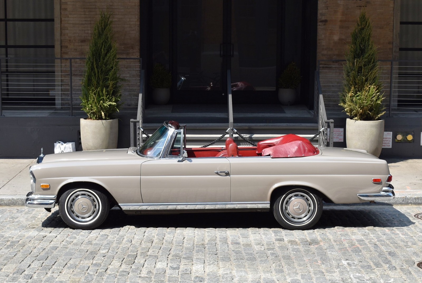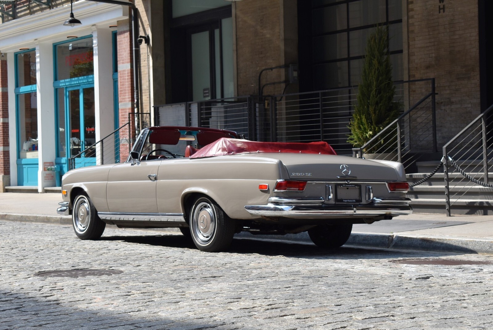 Cooper Classic has the pleasure of presenting this spectacular and highly original 280SE. What is essentially a one owner car, this 280SE was first leased by its original owner in Providence Rhode Island. She bought out the lease in 1971, and car remained under her ownership until 2021, when it was acquired through her estate by a Massachusetts based collector, who kept the vehicle stored in his collection until it was subsequently acquired by us. This incredibly original 280SE retains its original Maroon Leather interior, featuring light but beautiful patina, exemplifying the attention and care paid to the car throughout its life. The car is equipped highly desirable options such as a Becker push-button Radio, Kuhlmeister MagneTemp Air-Condition, desirable power windows, and a floor mounted shifter. While attempting to preserve the originality of the car, thoughtful consideration has been given maintaining its spectacular looks, including the refurbishment of the incredible Zebra wood dashboard trim, and respray in it's original Beige Grey paint under previous ownership. Cooper Classics has continued these efforts by replacing the convertible top with a brand-new unit, befitting of a car with such excellent paint and impeccable brightwork, now presenting as it did new in period. Great attention has also been paid to the mechanical aspects of the vehicle, including the replacement of the heater slides, cooling hoses and refurbishment of the radiator, leading to car that drives just well as it did when new. Comes with spare tire, jack, tool rolls, manual, original lease buy out documentation and a copy of the Mercedes-Benz Data Card