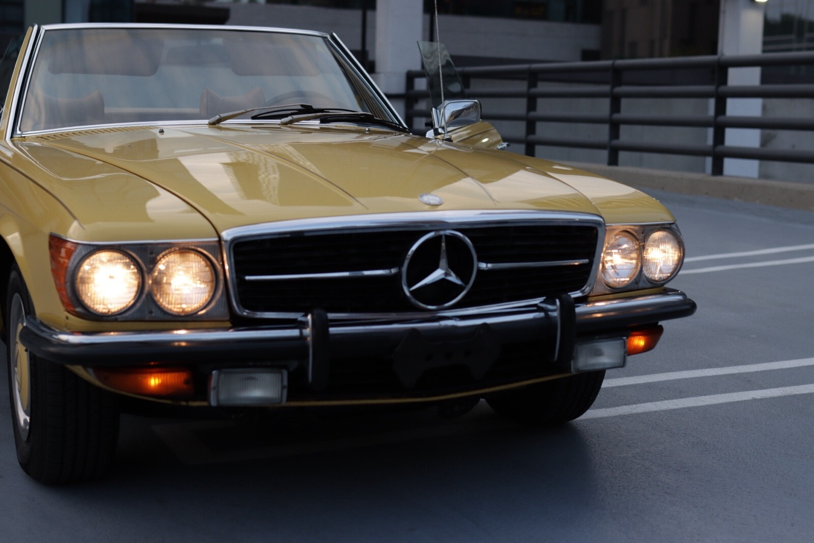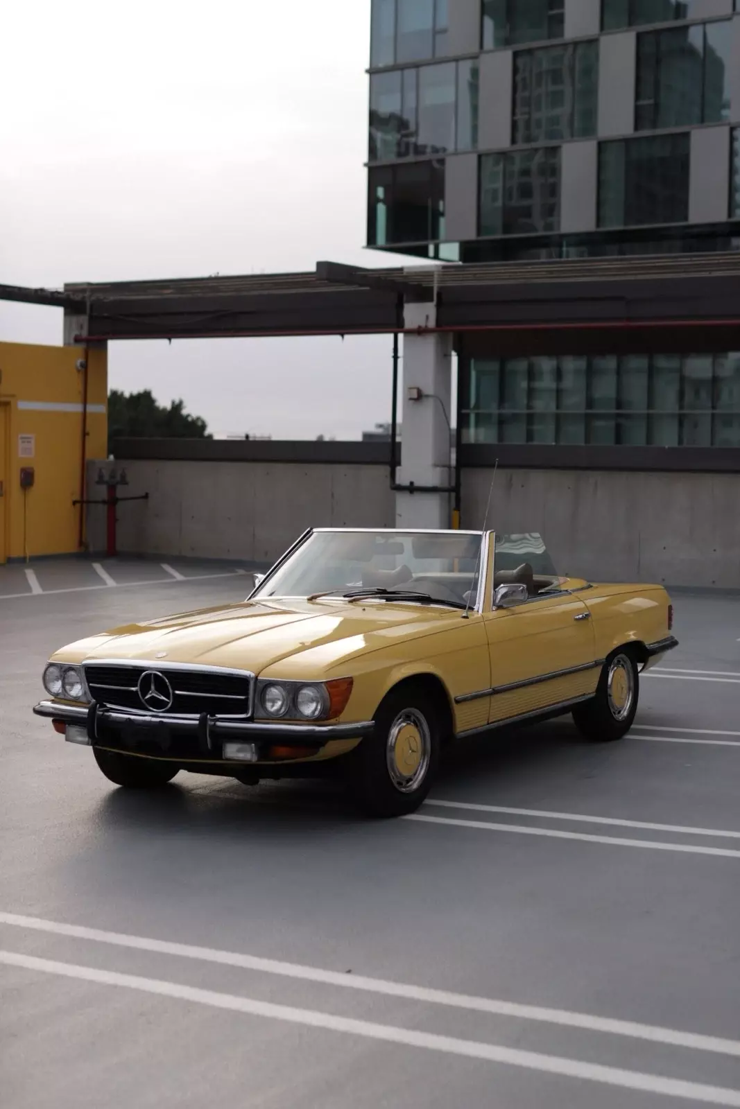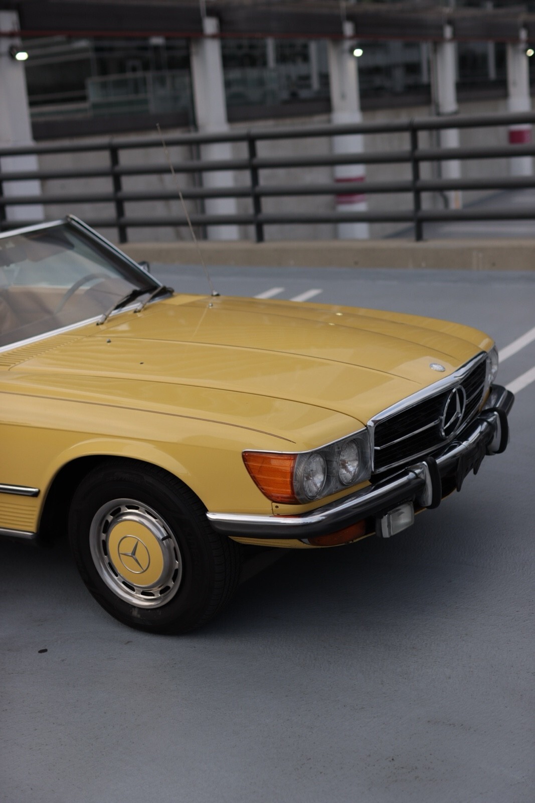 This 1972 Mercedes-Benz 450SL spent time at the Tupelo Automobile Museum and Museum we finished from the factory in Tunis Beige Metallic. The car has been repainted in a fabulous yellow color and is powered by a powerful 4.5-liter V8 paired with a three-speed automatic transmission.