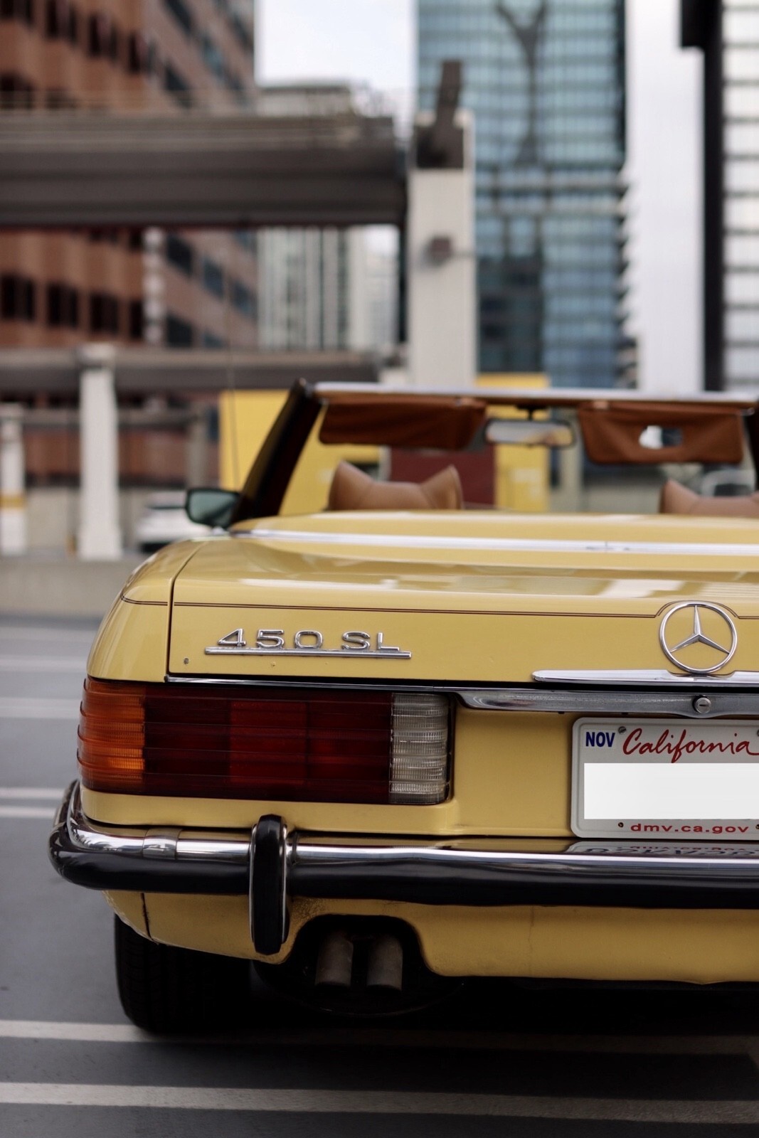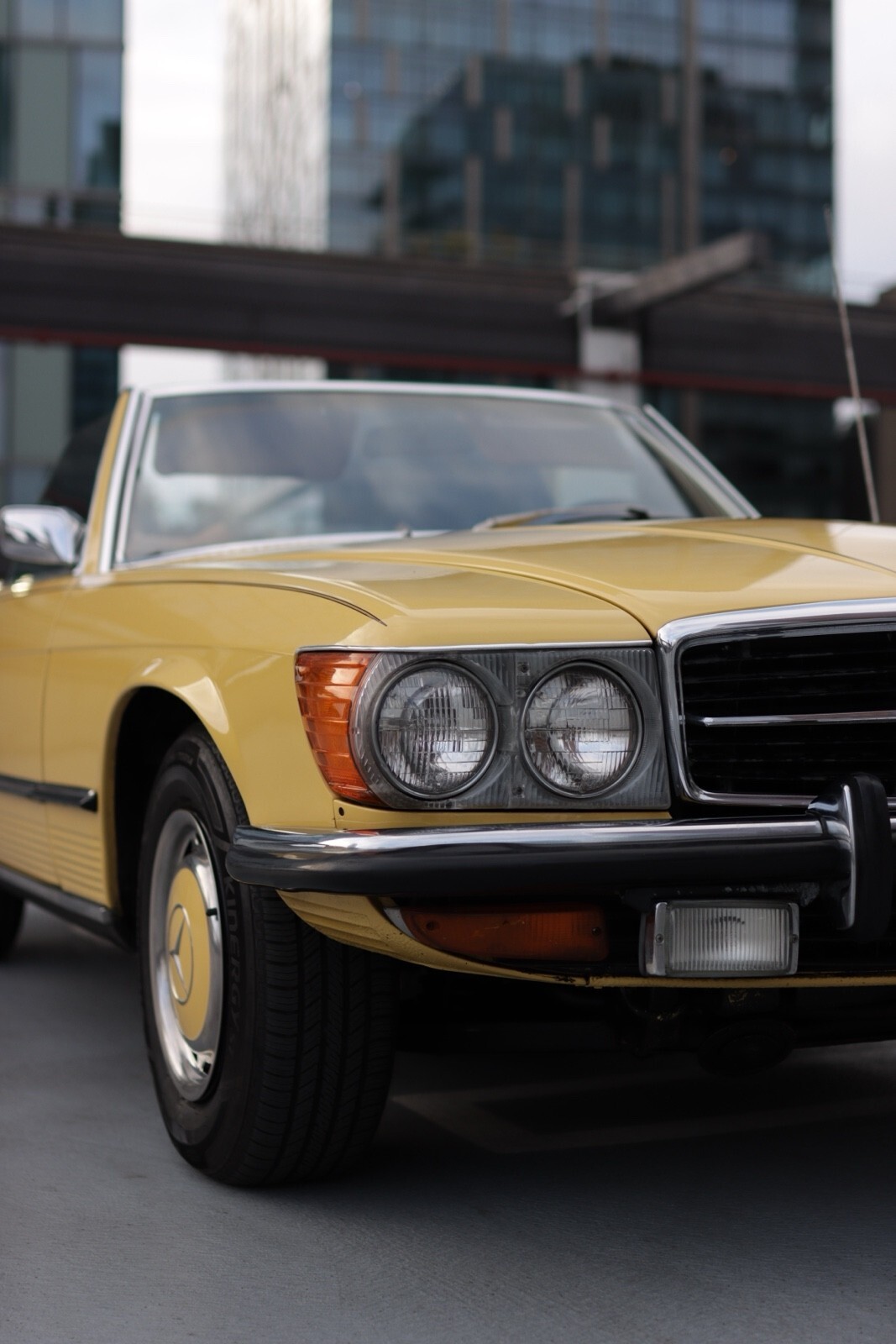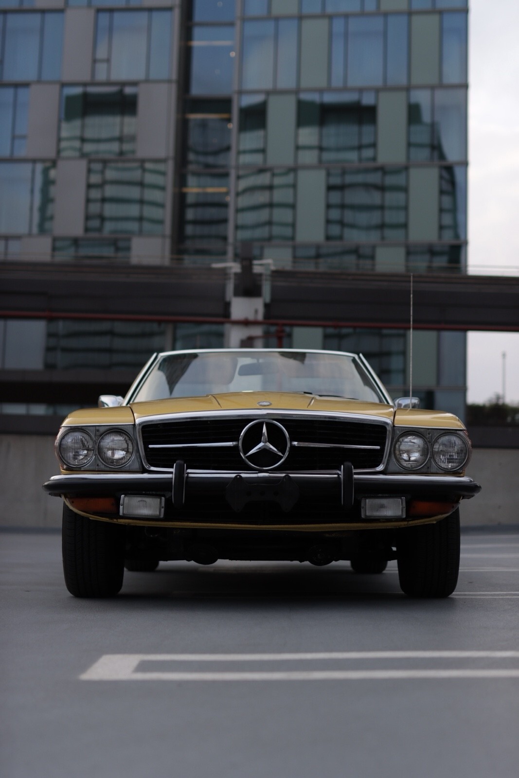 This 1972 Mercedes-Benz 450SL spent time at the Tupelo Automobile Museum and Museum we finished from the factory in Tunis Beige Metallic. The car has been repainted in a fabulous yellow color and is powered by a powerful 4.5-liter V8 paired with a three-speed automatic transmission.