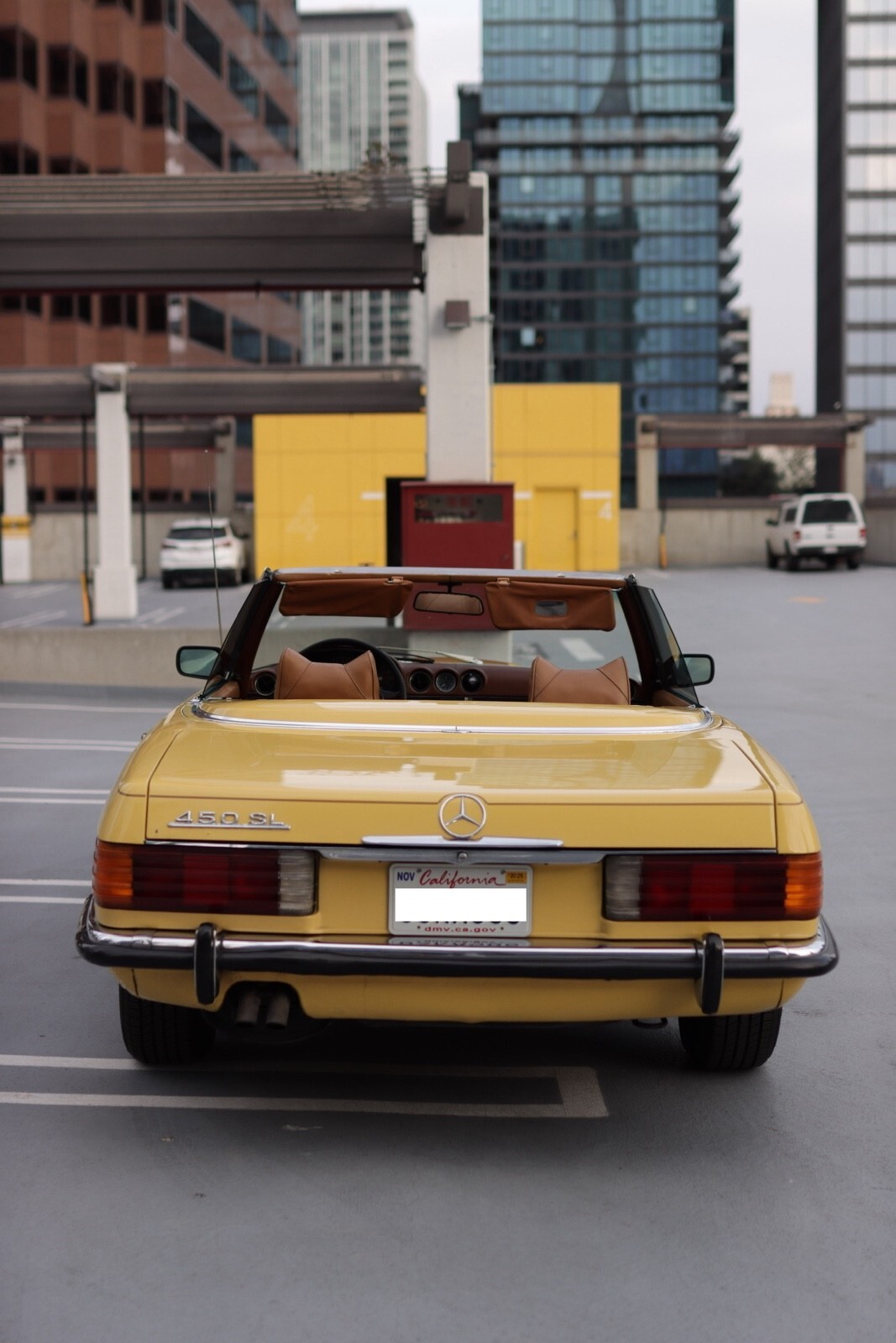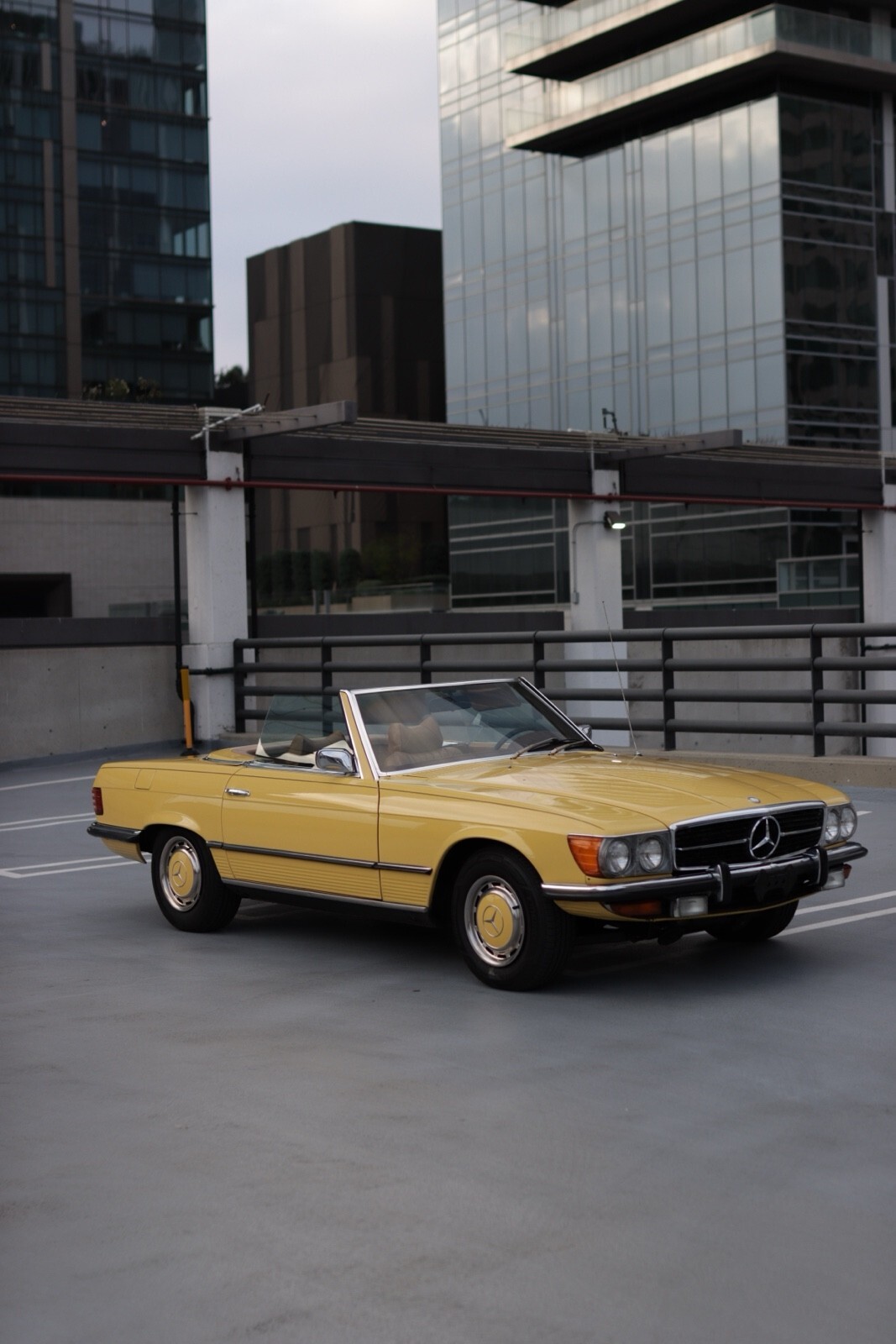 This 1972 Mercedes-Benz 450SL spent time at the Tupelo Automobile Museum and finished from the factory in Tunis Beige Metallic. The car has been repainted in a fabulous yellow color and is powered by a powerful 4.5-liter V8 paired with a three-speed automatic transmission. The cabin features two bucket seats upholstered in Palomino leather along with a matching center console and door panels. Equipment includes a brown soft top, 14″ steel wheels with painted covers, power steering, four-wheel disc brakes, fog lights, a power antenna, chrome-accented bumpers, and a Kenwood cassette stereo along with Jensen speakers. The 4.5-liter V8 features Bosch D-Jetronic fuel injection and was factory rated at 190 horsepower and 240 lb-ft of torque, which is sent to the rear wheels through a three-speed automatic transmission. The four-spoke steering wheel frames VDO instrumentation including a 160-mph speedometer, a 7k-rpm tachometer, a clock, and gauges for coolant temperature, oil pressure, and fuel level. The six-digit odometer shows around 35k miles. Recent work included replacing the brake pads and rotors, new fuel pump, changing the transmission fluid, new battery, new drive belts, new floor mats, new spark plugs, new oil cooler lines, new transmission fluid lines, and new power steering hoses. There is a small corroded hole in the hood due wrong battery fitment (too big). There is a dent on the hood, a crack in the windshield, and paint chips on the door edges and around the body. The sun visors are a little loose, the dashboard is has line cracks, the driver's seat bolster is damaged, and the driver’s power door lock intermittently does not work. Note that the air conditioning system works but does not blow cold air so I recommend a recharge. This R107 is offered with a copy of a 1980 title, records dating from 2019, a wood-rimmed Nardi steering wheel, a Becker Mexico AM/FM cassette stereo (needs to be tested), spare parts, and a clean California title in hand. Driving videos and an walkthrough can be seen from the links below: Walkthrough https://youtube.com/shorts/SRtz_KeC8B8?si=Ng2uWv0uCKOVIfSq Walkthrough (2) https://youtube.com/shorts/xFyCuIfDd44?si=dmIZg-MFqeCHuSj5 Highway Drive https://youtube.com/shorts/dhzRA70yg94?si=16iypJxc2bDTE4i7 Casual Drive https://youtube.com/shorts/ph9hkxuiCO8?si=aZtv_8vTUZedISXJ