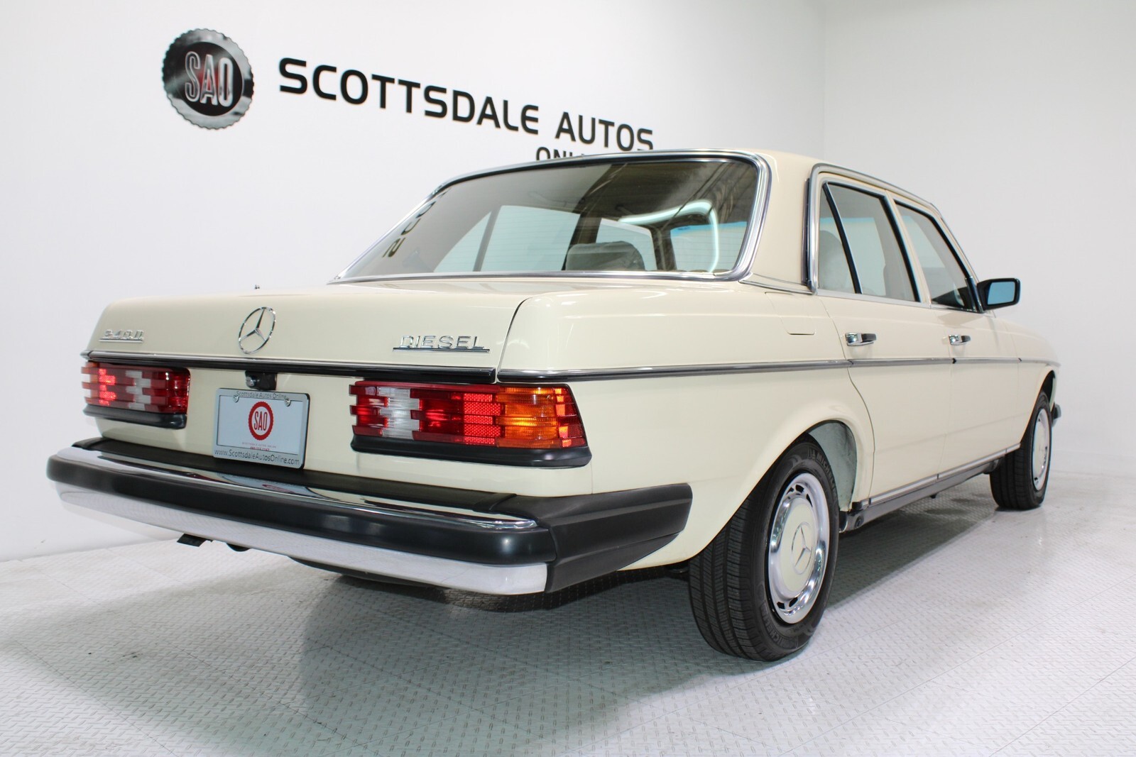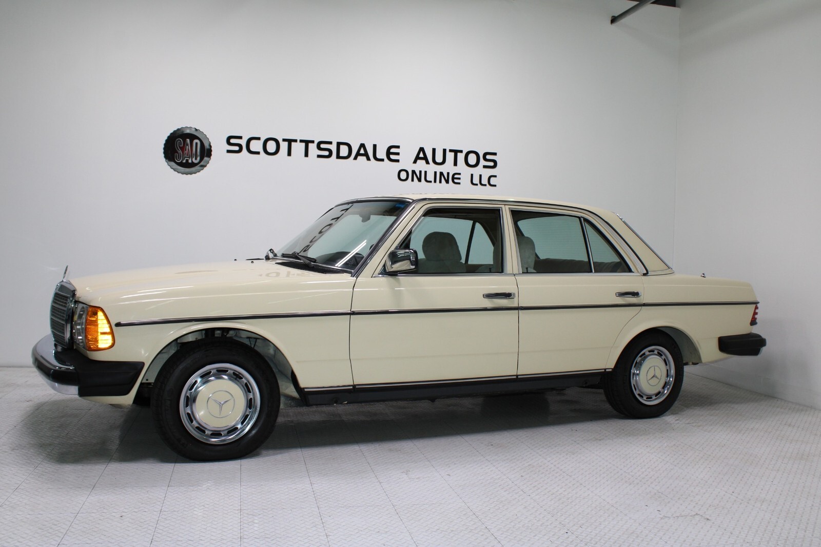 Scottsdale Autos Online, LLC is proud to offer this gorgeous little cult classic 1983 Mercedes-Benz 240D is powered by a 2.4-liter diesel inline-four paired with a four-speed manual transmission and is finished in Light Ivory over Palomino MB-Tex. Visit WWW.SCOTTSDALEAUTOSONLINE.COM FOR MORE PICS, FREE CARFAX AND MORE INFO. OR STOP BY AND VISIT OUR INDOOR, AIR-CONDITIONED SHOWROOM. AS ALWAYS, SCOTTSDALE AUTOS ONLINE IS YOUR SOURCE FOR CLEAN, NO ACCIDENT, LOW MILE LUXURY CARS IN AZ! Additional equipment includes power steering, air conditioning, a Becker cassette radio, and 14 steel wheels. The car is said to have been first delivered to Phillips Oldsmobile-Mercedes-Benz in Virginia Beach, Virginia, spent time in Virginia and Florida before being acquired by the previous owner and brought to Scottsdale, AZ. Service in 2021 included fluid and filter changes as well as an overhaul of the front brake calipers. Now showing 95k miles,