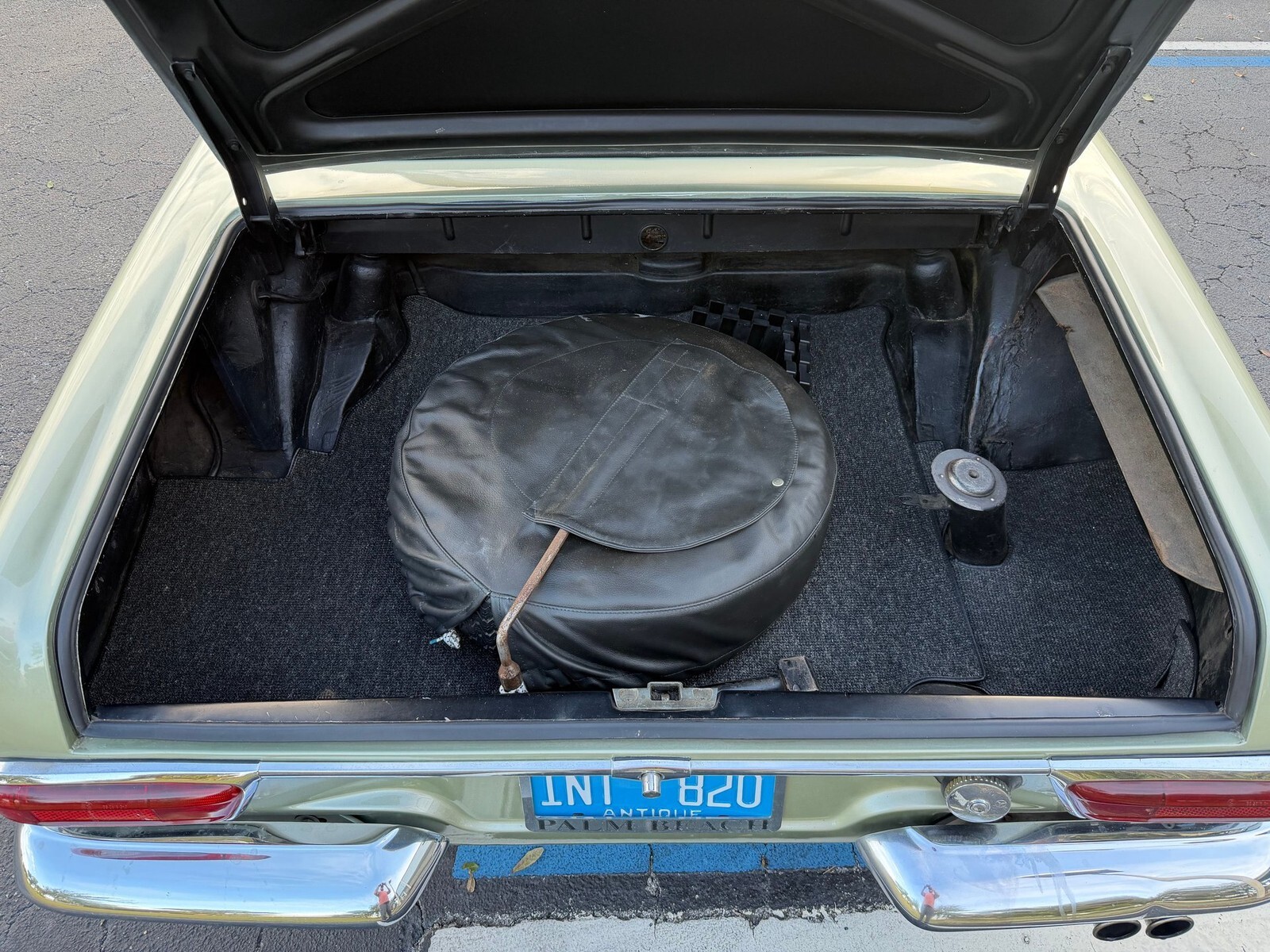 Theinterior is finished in Light Metallic Green over Black MB-Tex upholstery. All of the lights and gauges function as they should and are in excellent condition. Theprevious owner installed an AM FM CD stereo with bluetooth to keep you well entertained on trips! One of the most unique features is option code 565, the "Kinder Seat" which is a small sideways facing back seat designed for small children! Talk about a rare option!!