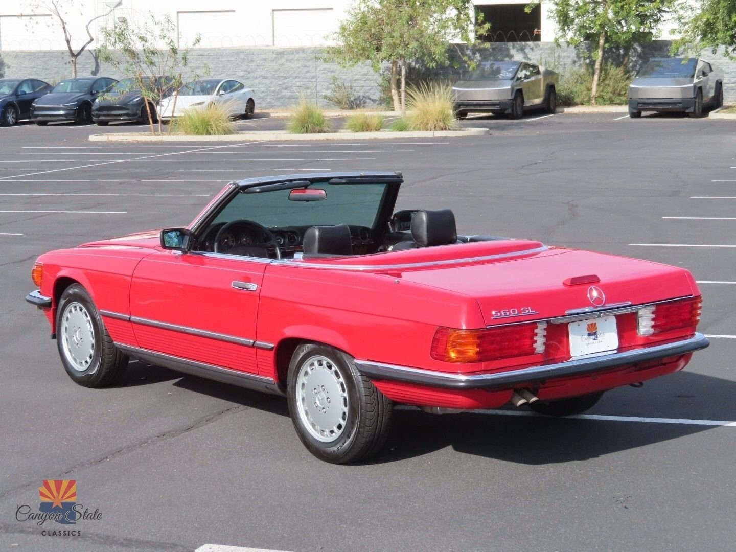 Give Us A Call 480-703-2337 1989 Mercedes-Benz 560 Series 2dr 560SL Roadster w/ hardtop Year 1989 Make Mercedes-Benz Model 560 Series Body Color Signal Red Stock 161231196520 VIN WDBBA48D5KA092089 Miles 77,873 Engine Size 5.6L V8 Transmission Type 4-Speed Auto w. OD 1989 Mercedes-Benz 560SL Roadster, 5.6L V8, Euro Bumpers, Final Year 107 SL!