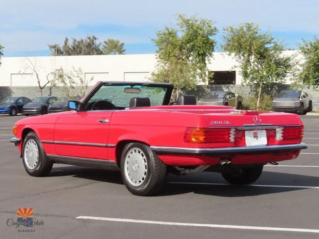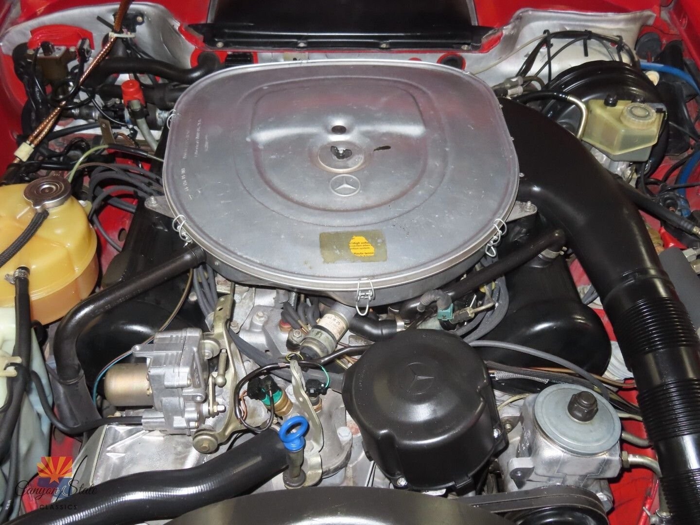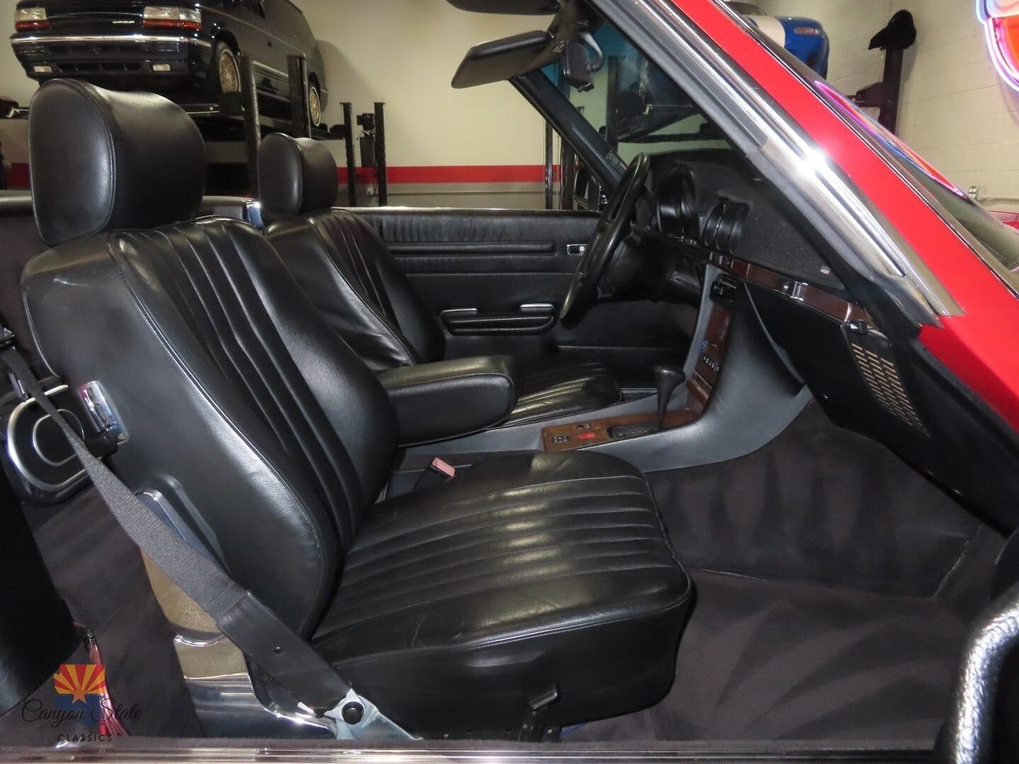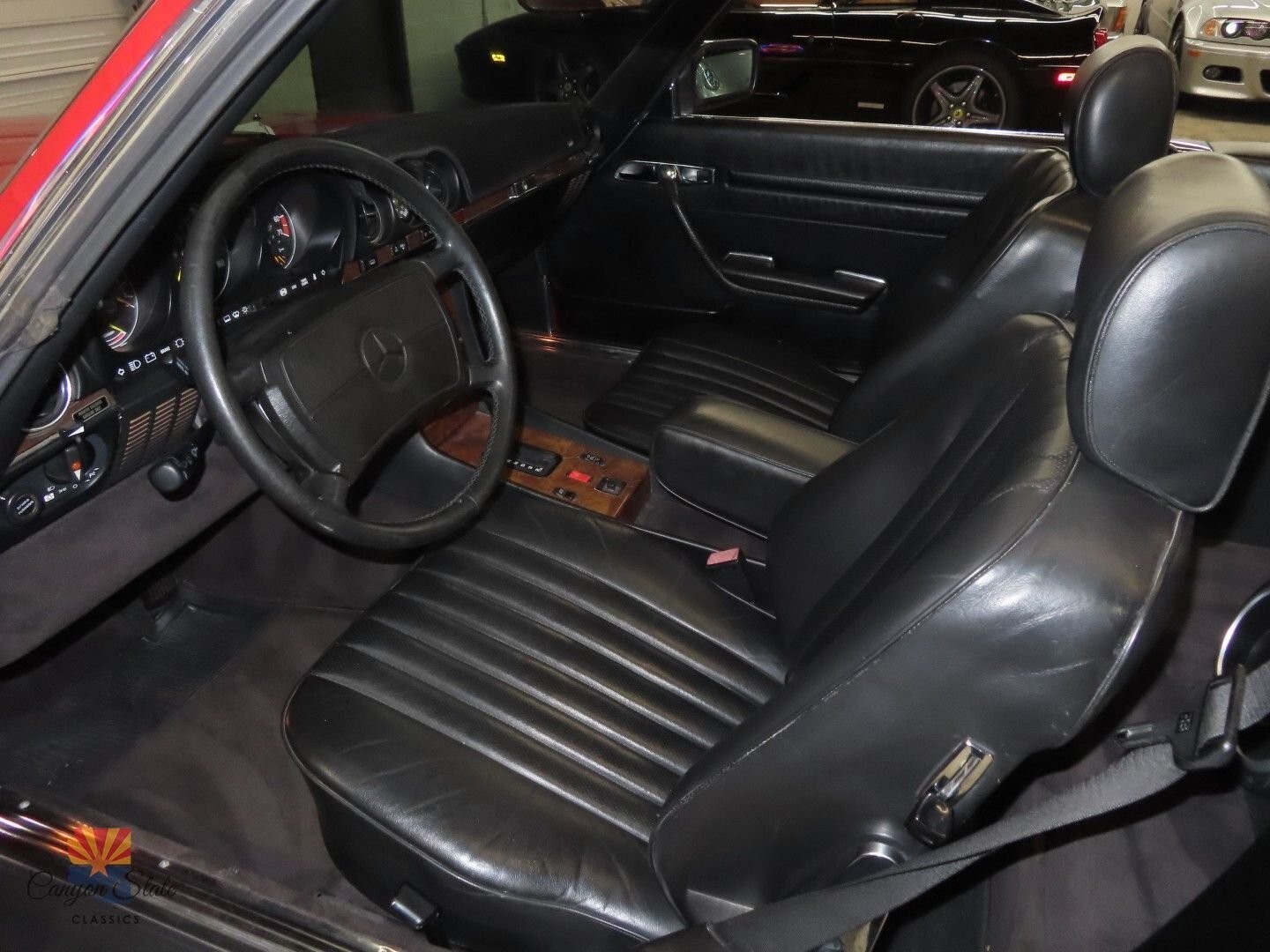 The body on the car is in pristine condition and was extremely well maintained. The car is finished in its gorgeous original Mercedes color of Signal Red and is in awesome condition. The car is straight as an arrow and looks spectacular. The car has been completely inspected underneath from front to back and is solid as a rock as any collector car should be. The car is riding on the original 15" wheels with the correct size tires that are brand new. The windshield is like new with no chips. The black German Cloth soft top is brand new and was just installed. The hard top has good seals and the headliner is in awesome shape. This car has also had the Euro small bumper conversion completed, and we can sell you a euro headlight conversion as well!The interior is in great shape all around. The dash and door panels are in like new condition. The supple original black leather seats are all in very good condition and look very nice with no rips or ware lines, which shows the quality of leather used in this car. The carpets are all very nice are not worn or damaged. All dials and controls function as they should, power windows and antenna also are fully functional. Music is crisp and clear and not overwhelming. The sound system definitely adds to the driving experience of this roadster. All lights, gauges switches, and accessories work as they should. This interior is in immaculate condition.The trunk compartment is clean enough to eat from. The spare tire compartment is clean as a whistle and the original spare tire is present. Original jack is in place and the tool kit is even still in the original bag.Mechanically, this SL runs GREAT! The car starts right up and shifts smooth as silk. It drives as good now as the day it rolled of the lot. The V8 engine is surprisingly quick and responsive. It is reliable, easy to fix, and parts are readily available. The car was always regularly serviced and maintained! Recent inspection upon arrival to AZ yields a clean bill of health. Under the hood is clean as a whistle and looks like new. I just had the oil changed, and brake fluid flushed and the car given a once over and its all ready to hit the road with the top dropped! I will put my personal stamp of approval on the mechanical excellence of the car. If you look at the Carfax you can see the massive amount of service work completed on this car including head gaskets, steering box rebuild, all the suspension gone through, all new belts and hoses, full tune up with plugs and wires, new alternator and more!All in all, this is one of the cleanest and nicest SL's that I have had the privilege of being associated with. I truly feel it is one of the nicest 560sl's in existence and I will put it next to any of the lower mileage examples and it will hold its own. It has been professionally maintained and truly loved by its previous owners, and is a fantastic car for the price! This is your chance to get an like new classic convertible for a fraction of the cost of its original price. The car has a clean Arizona Title and a clean Carfax and Autocheck. Any further questions please call Jon at 480-703-2337.