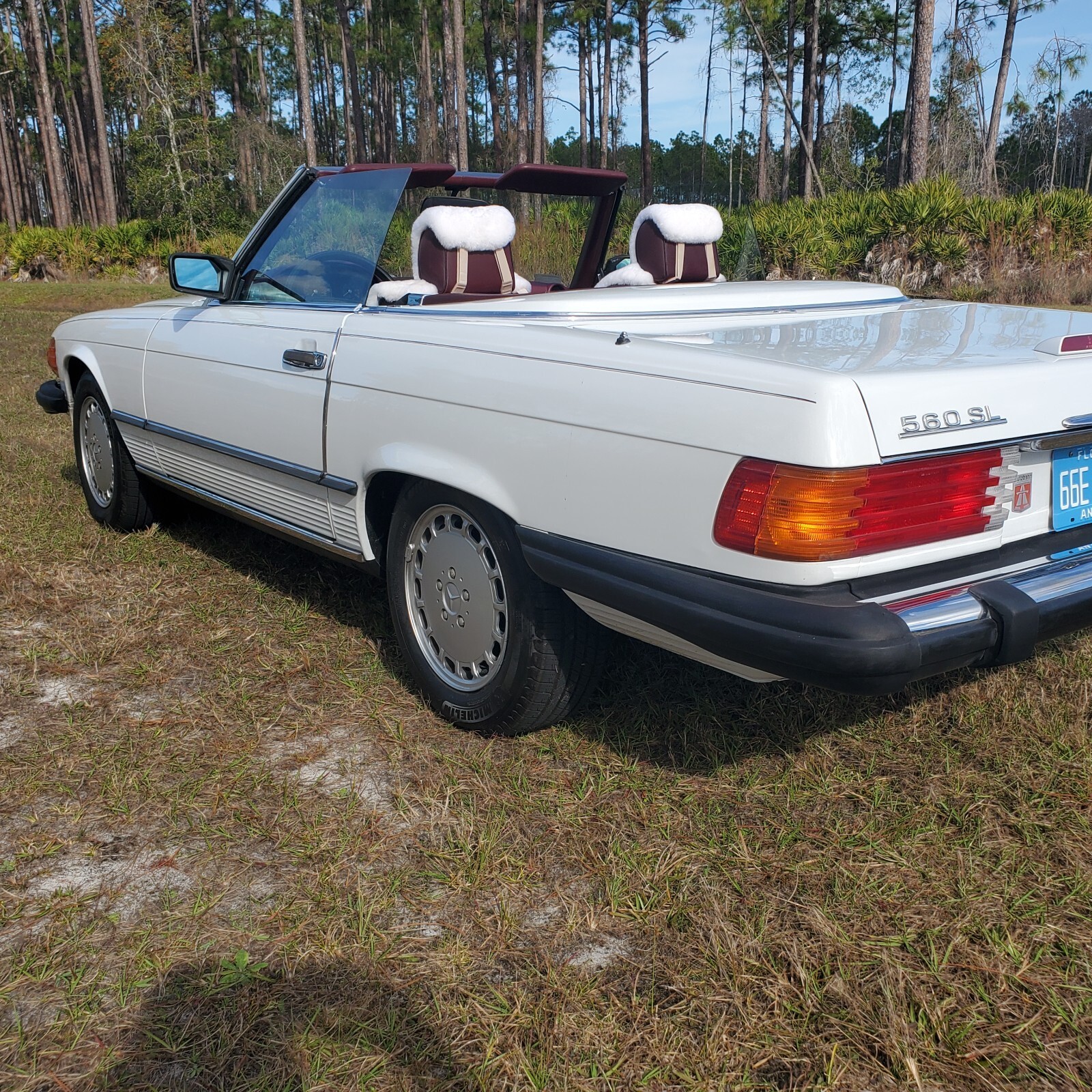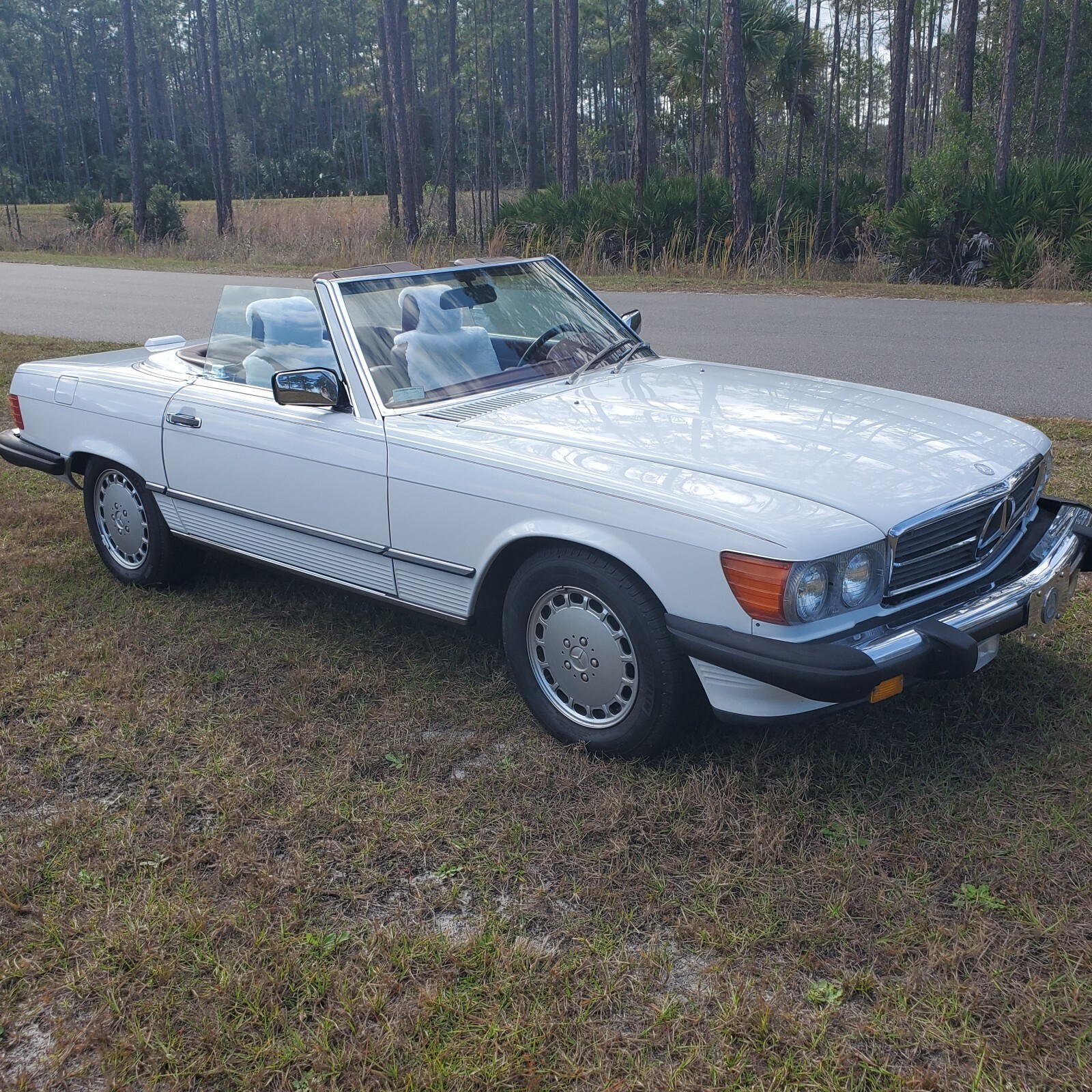 For example: Original paint, even the pinstripe looks likes new, no dents or rust areas, all body gaps are correct, garaged, excellent chrome, all glass original, everything works except the cruise control and maybe I'll have that sorted out before the sale, all four matching Michelin 205/65R15 tires with few miles on them, the alloy wheels are scratch free with no "rash" on them. Repairs made lately: Front and rear brake calipers, rotors, pads, master cylinder and brake lines plus fuel accumulator, new wool seat covers, at 98,881 miles, new German soft top (special order} with all new window seals, matching Hardtop (looks like new, really), engine oil and filter changed 98,900 miles,CARFAXreport is included, new hard top stand, original tool kit and First Aid Kit is there too. Further, new dash cover, chrome door sills, Sony Radio with bluetooth and CD, service records from Carfax and current repair records some documentation and the build sheet. Just email me for more information about "Isabella" and I'll try my best to give you accurate answers from me as a Huge Mercedes Fan (I've been to the Main Mercedes Plant in Sindelfingen, Germany 87 times starting in 1981 while living in Germany) and Club Member for over 40 years here and in Germany. Also, there are a few videos and more pictures of the car that I could email you, call/text 443 454 2829 I'll have my cell phone with me East Coast Time! I've put lots of effort into Isabella and probably too old to drive her around Ormond Beach and need the garage space for my wife's ML.
