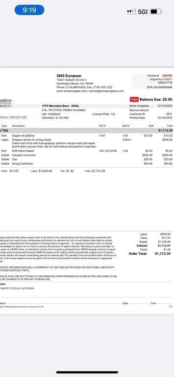 “Beautiful 1979 Mercedes-Benz 450SL with recent maintenance completed last month (see photos for records). This classic roadster features a 4.5L V8 with automatic transmission and has been lightly used as a weekend car since 2022.