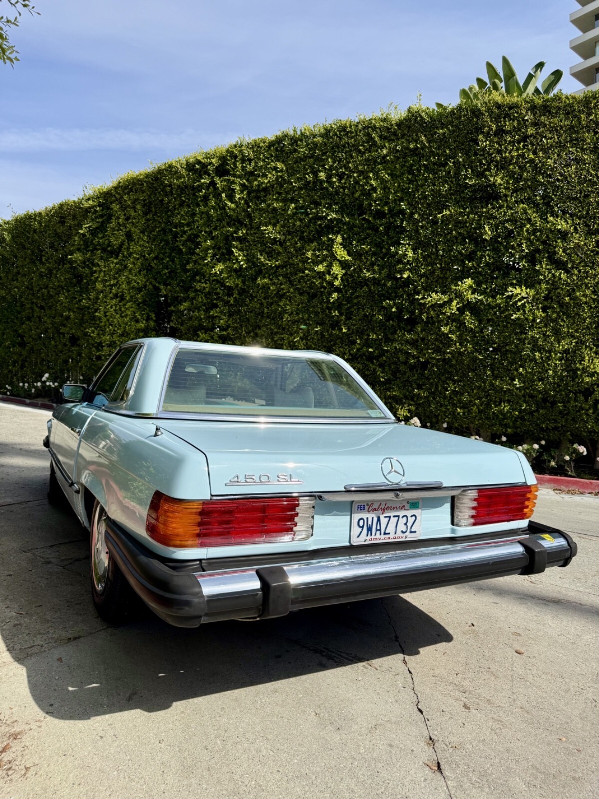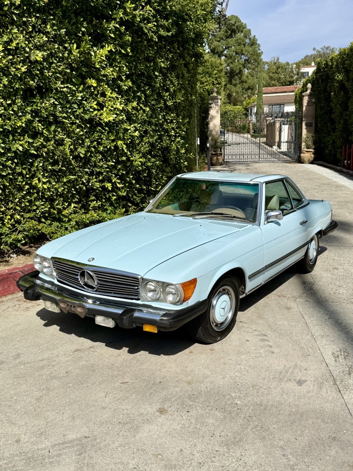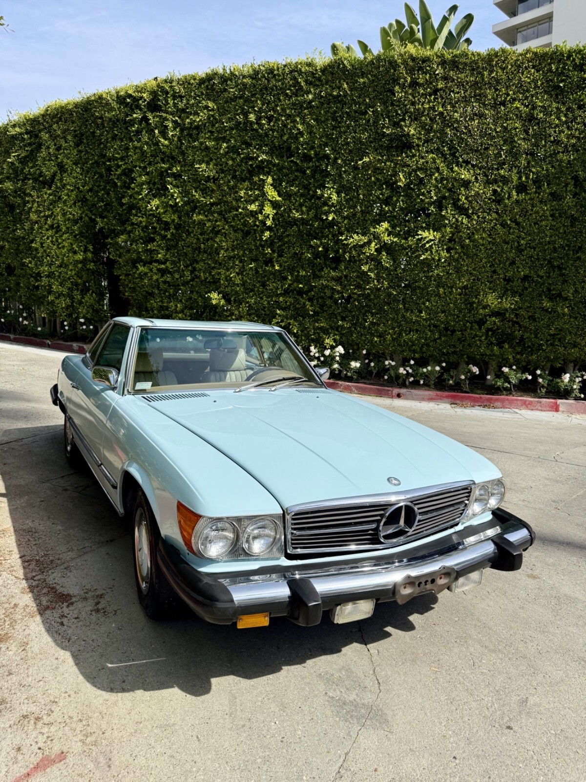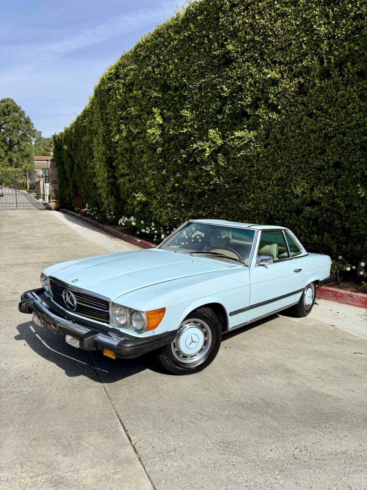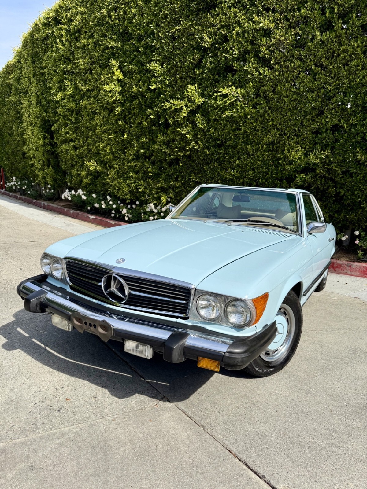 Private seller offers this stunning 1975 450SL! Finished in the ultra rare paint code 917 Aqua Blue (only a few examples of this color were ever produced and mostly in European markets). Parchment interior and navy blue soft top. Extremely ultra low 53,576. Very hard to find one with this low mileage anywhere. Also includes the extremely rare and valuable cassette version of the Becker radio.