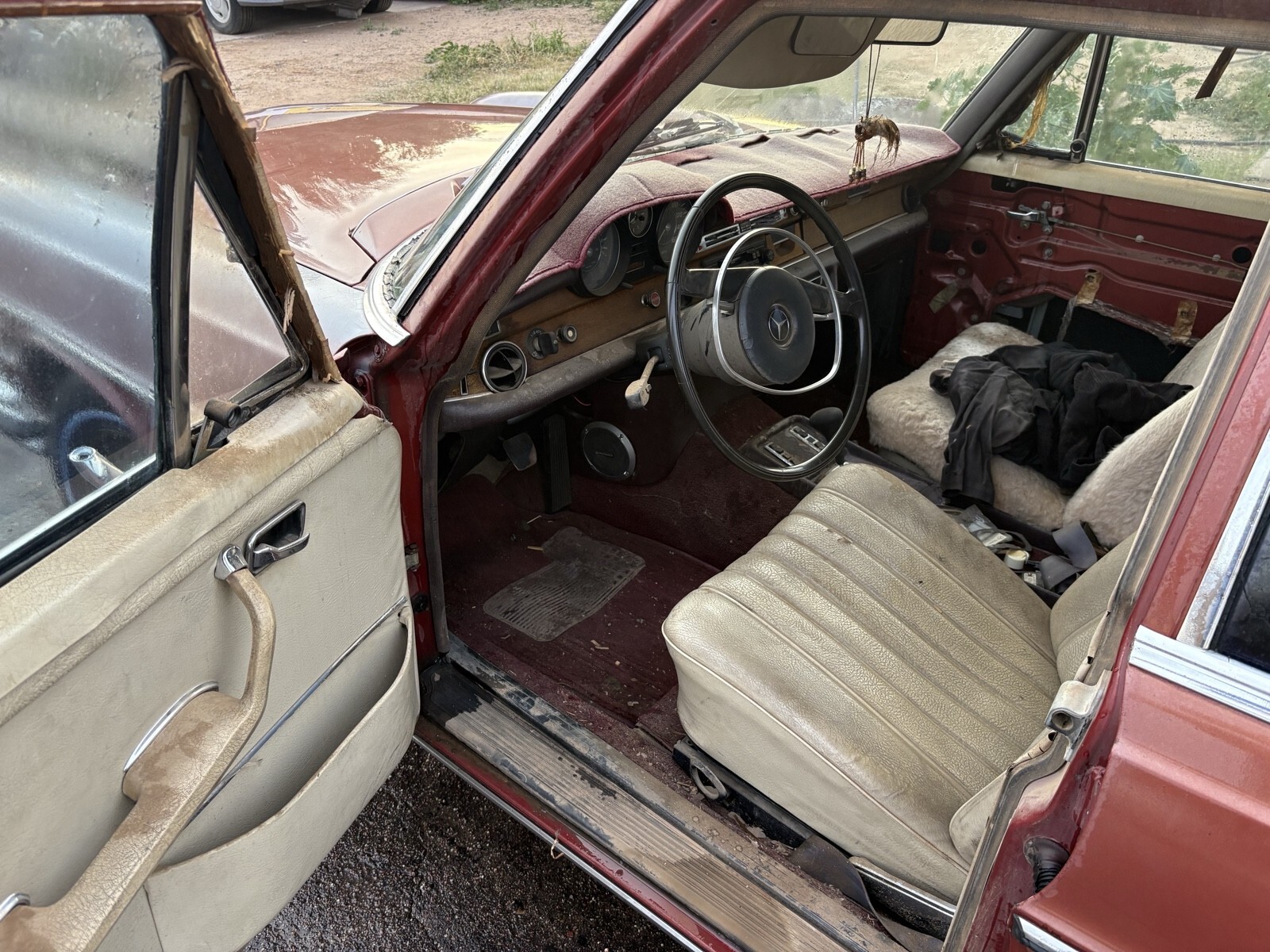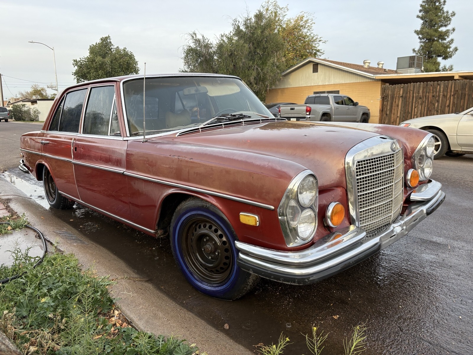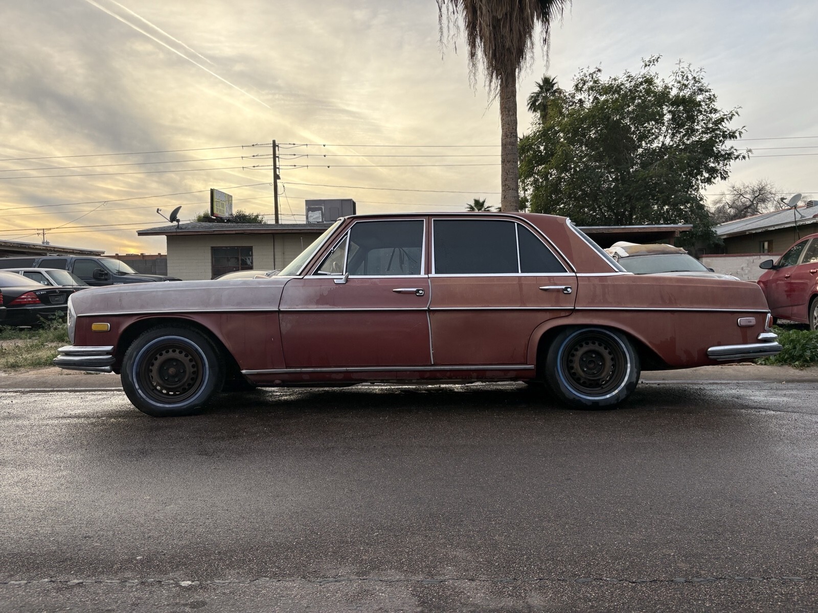 This is a 1971 Mercedes 280SE with the 4.8 OHC V-8. This was Mercedes’ muscle car back in the day. Only 13,000 of the short wheelbase V-8 sedans were ever sold in the US.