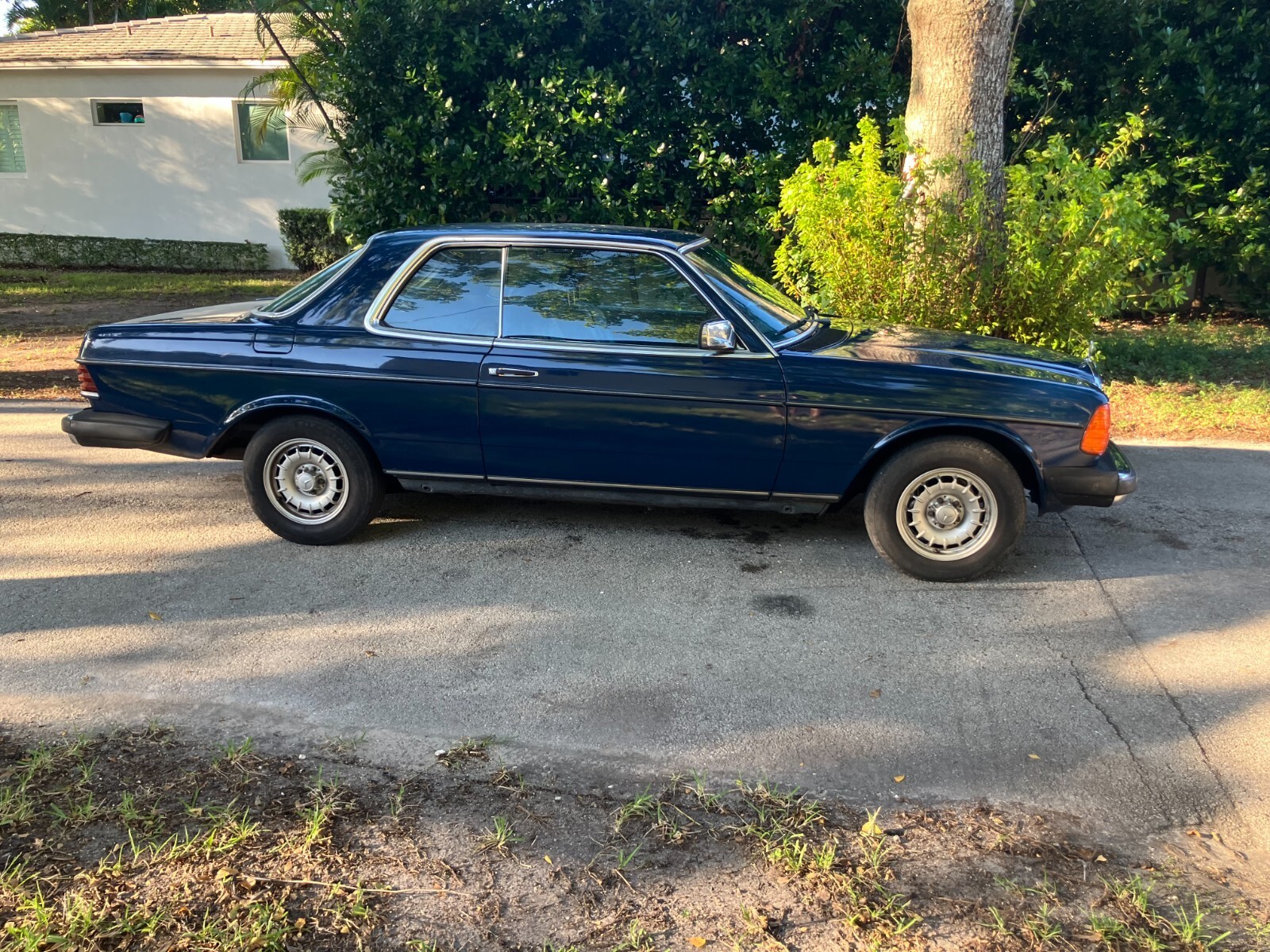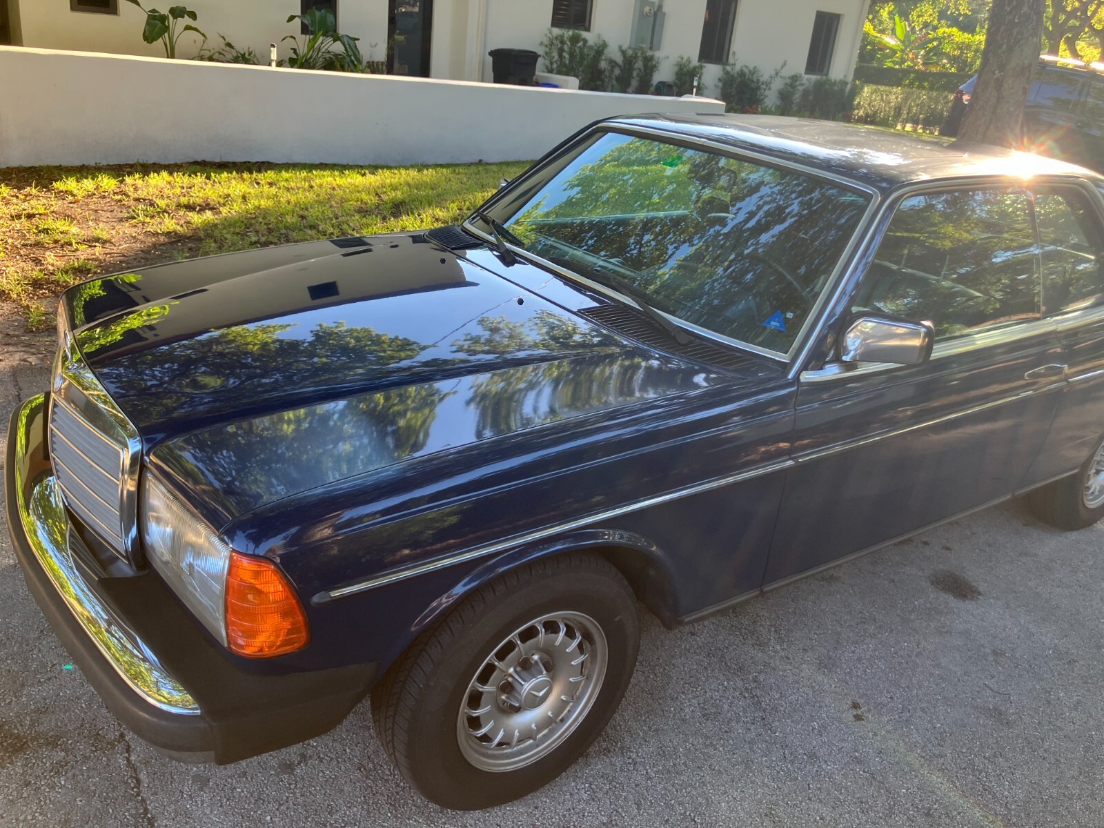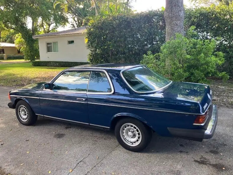 Rare and desirable 1983 Mercedes-Benz 300CD Turbo Diesel Coupe finished in original blue paint with matching blue interior—a very uncommon color combination.