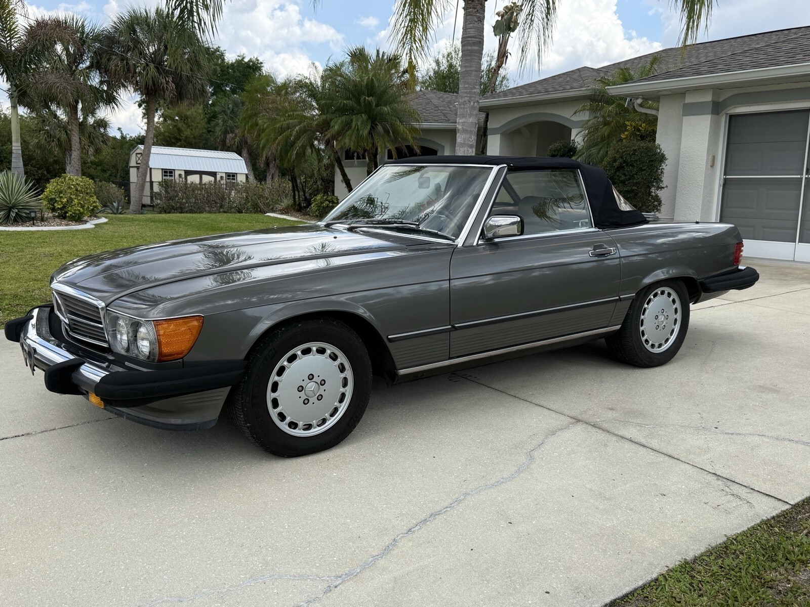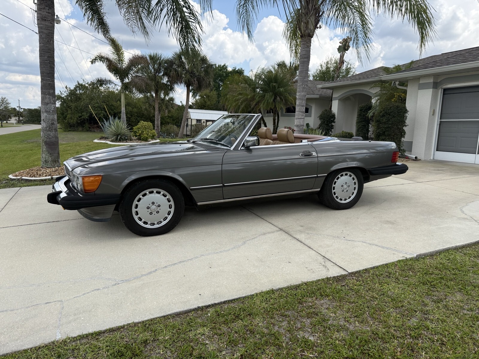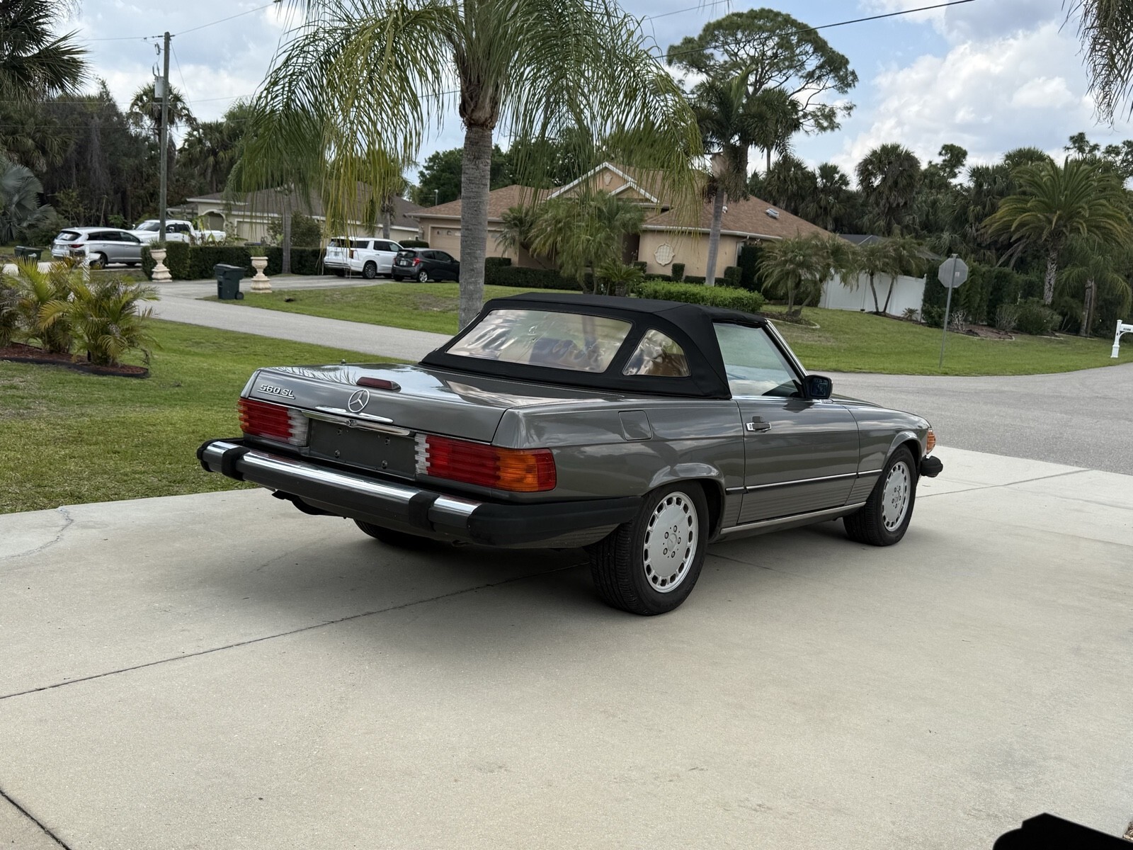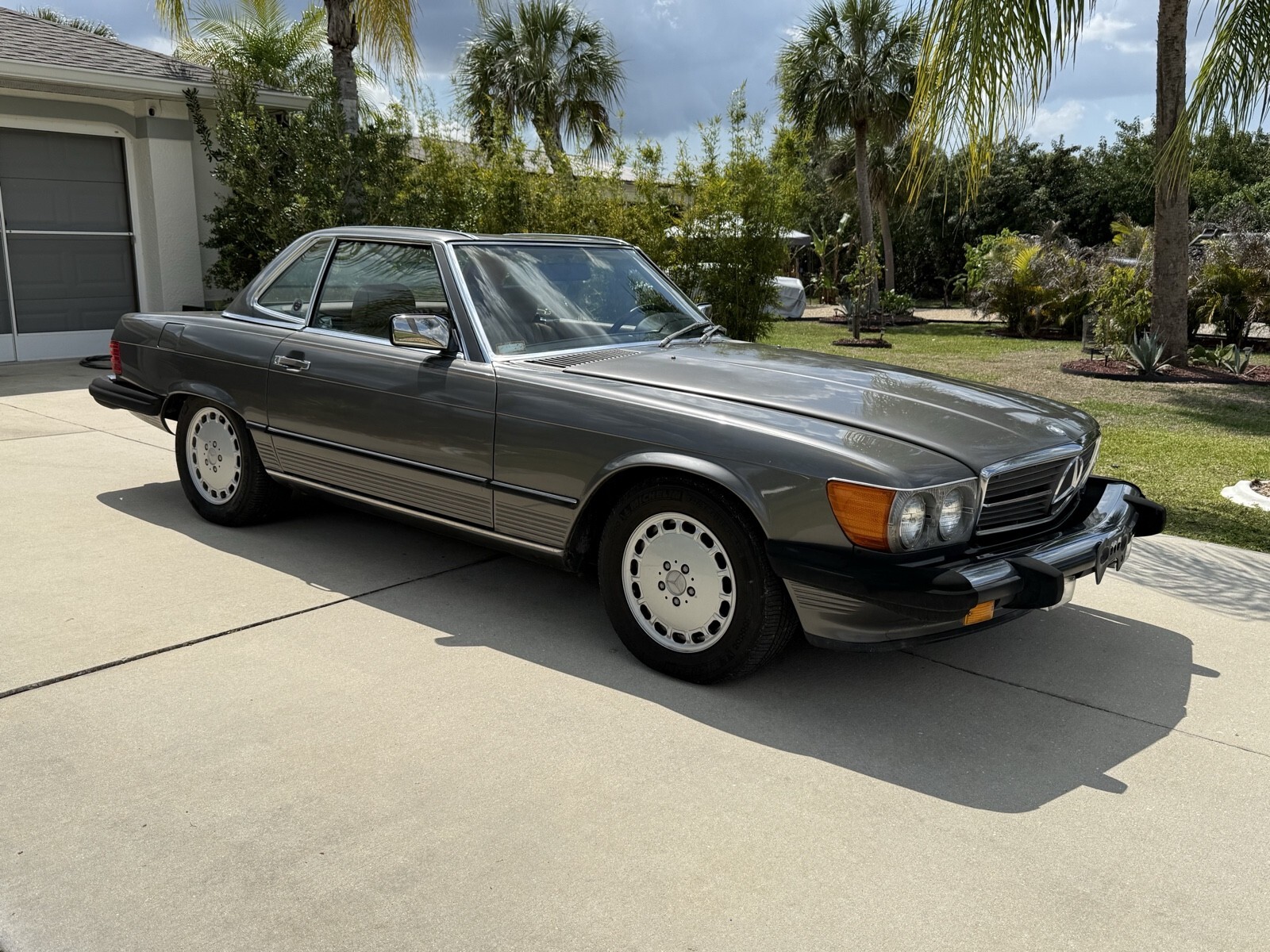 Selling 1988 Mercedes 560sl with 133K documented miles . ANTHRACITE GREY METALLIC color. Always serviced with Mercedes specialist. Last service cost $14524 in total. I have receipts . Car runs and drive perfect. The bottom of the car is dry without any leaks . Same owner daily driven car for last 22 years . Brand new Continental Bluetooth radio installed by professional shop. Original leather palomino interior. Black soft top. Everything works. Set of 3 original keys and manual books . Original Mercedes tools and spare wheel. Brand new battery. Car will need some buffing to be perfect . Ther is a spot of faded paint on trunk and hood. but still look good for almost 39 years old vehicle. No rips or holes in original convertible canvas. Oil change done 2000 miles ago: Services done in last 6000 miles included .