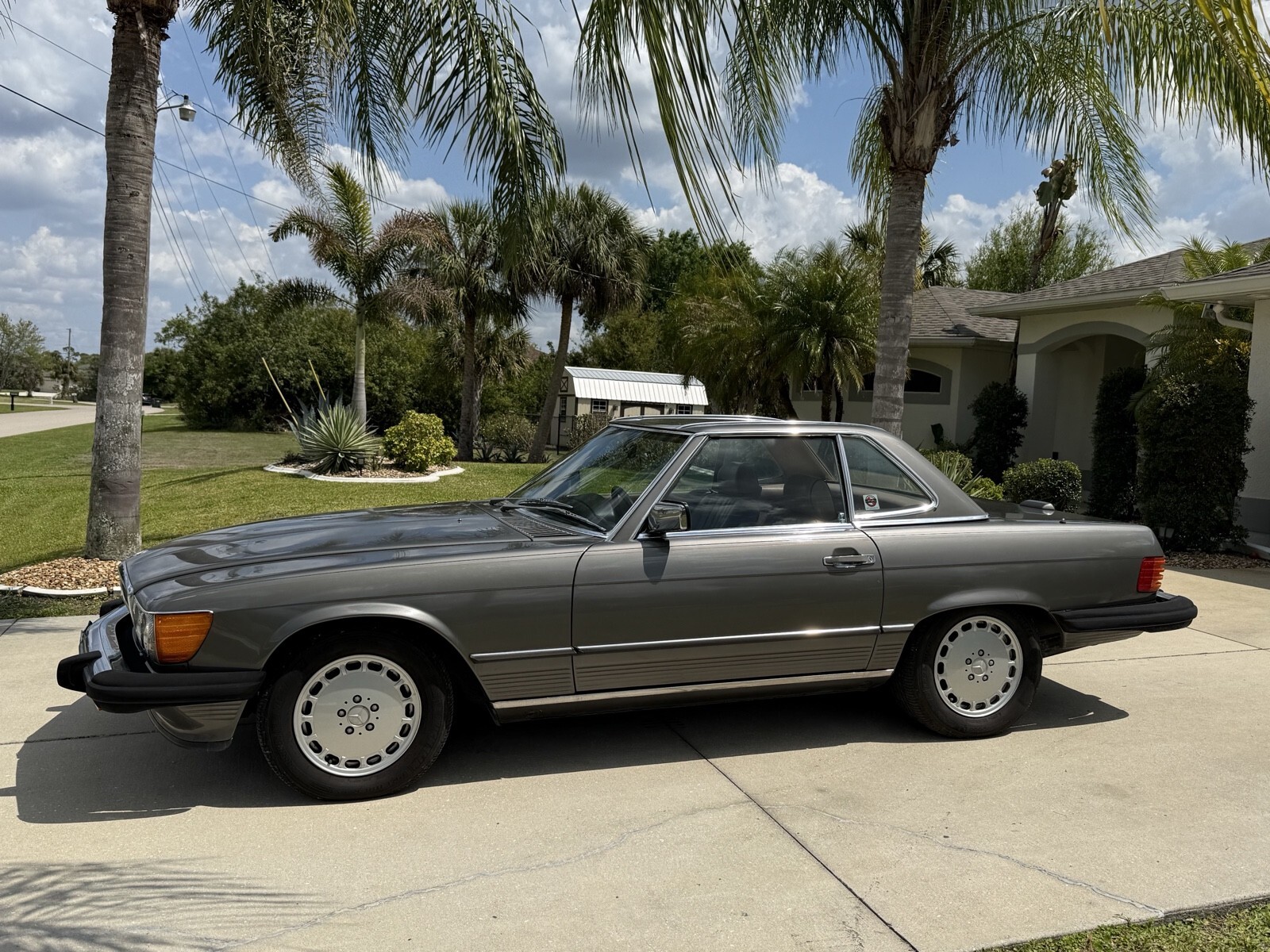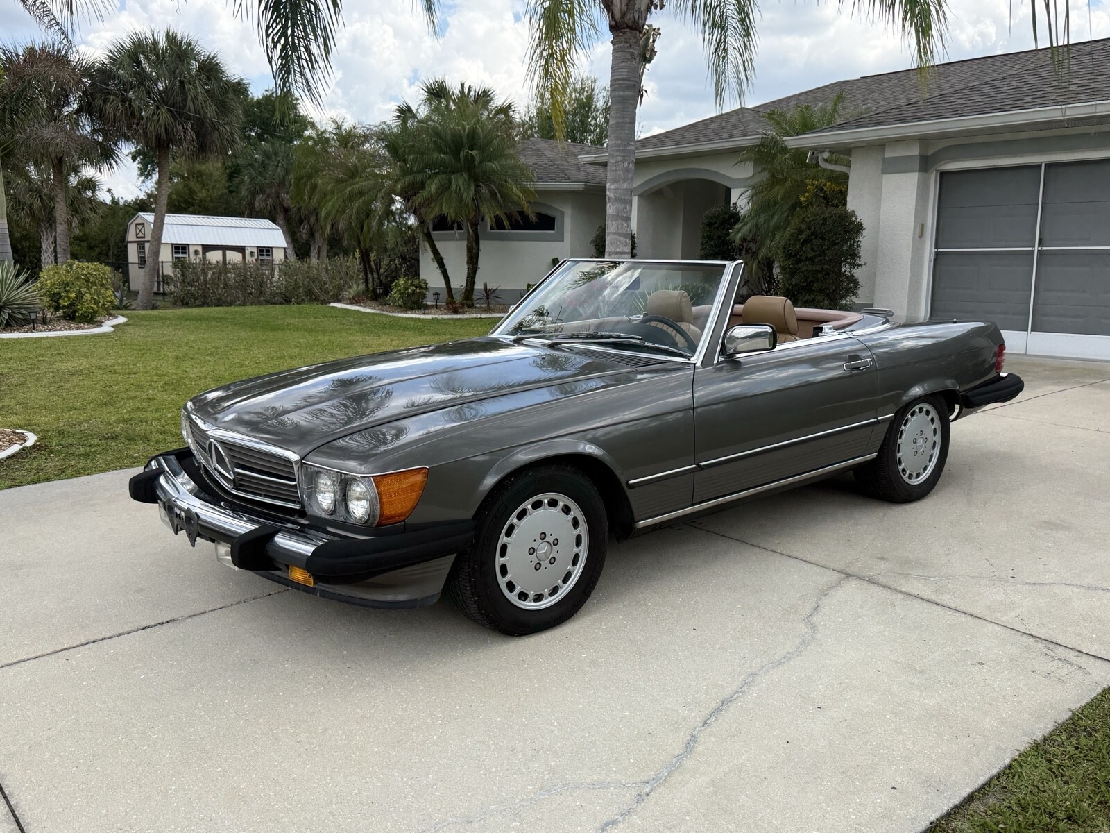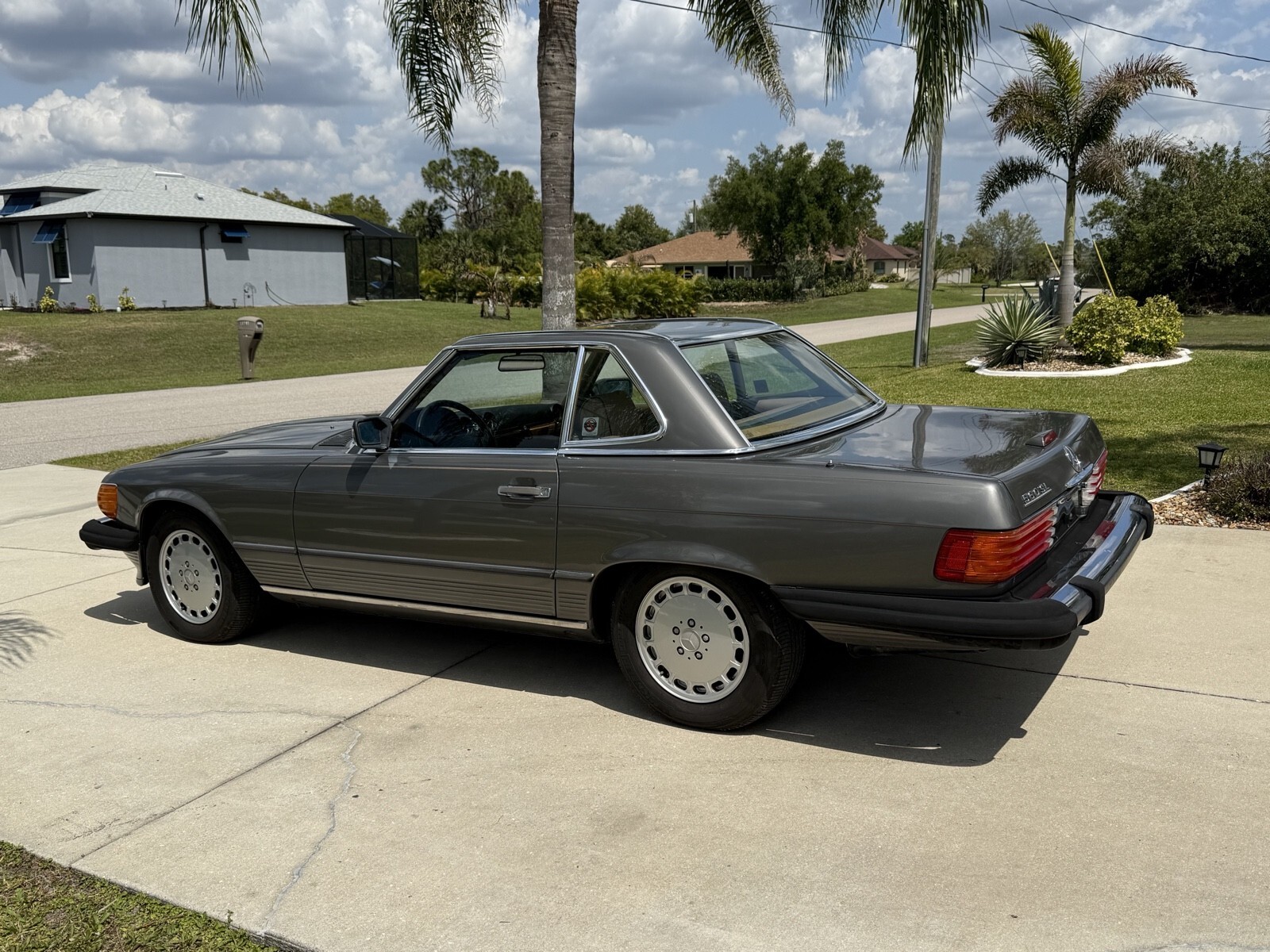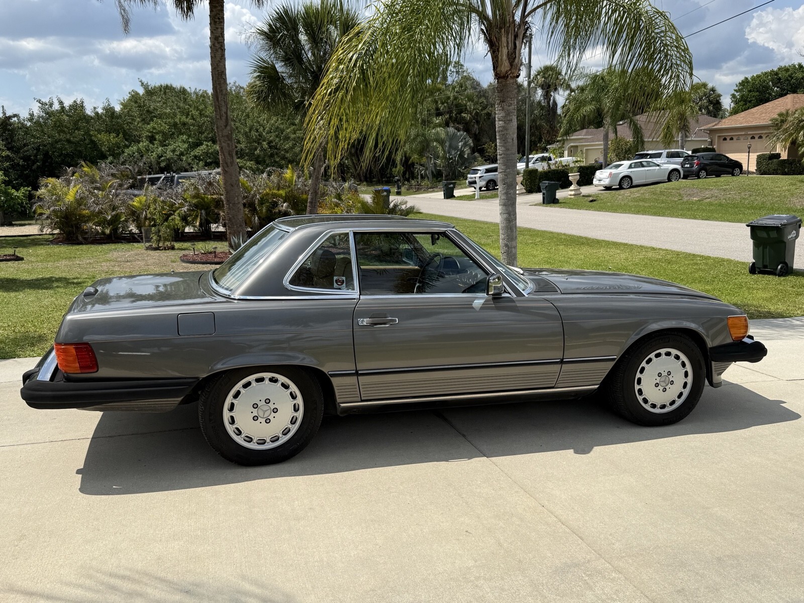 Selling 1988 Mercedes 560sl with 133K documented miles . ANTHRACITE GREY METALLIC color. Always serviced with Mercedes specialist. Last service cost $14524 in total. I have receipts . Car runs and drive perfect. The bottom of the car is dry without any leaks . Same owner daily driven car for last 22 years . Brand new Continental Bluetooth radio installed by professional shop. Original leather palomino interior. Black soft top. Everything works. Set of 3 original keys and manual books . Original Mercedes tools and spare wheel. Brand new battery. Car will need some buffing to be perfect . Ther is a spot of faded paint on trunk and hood. but still look good for almost 39 years old vehicle. No rips or holes in original convertible canvas. Oil change done 2000 miles ago: Services done in last 6000 miles included .