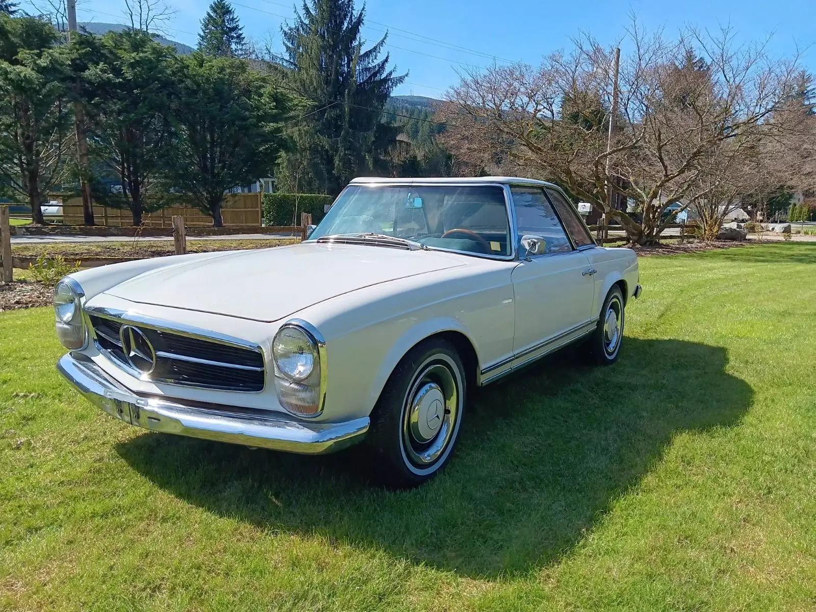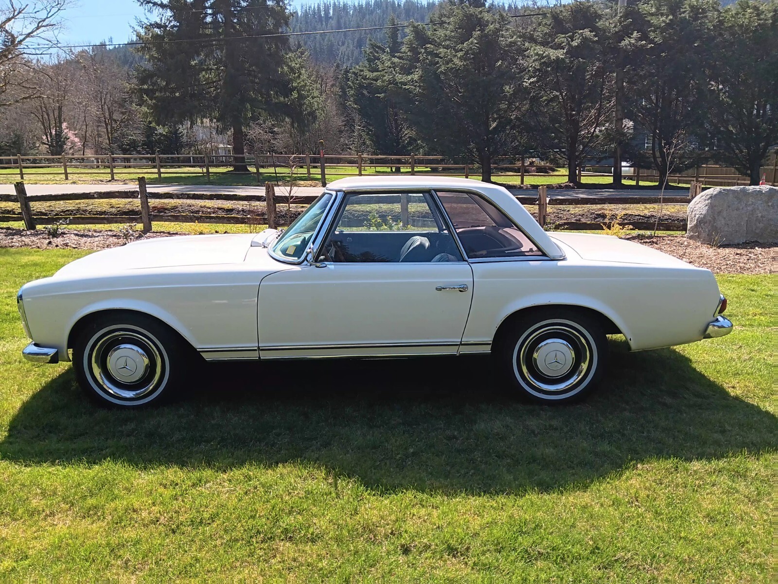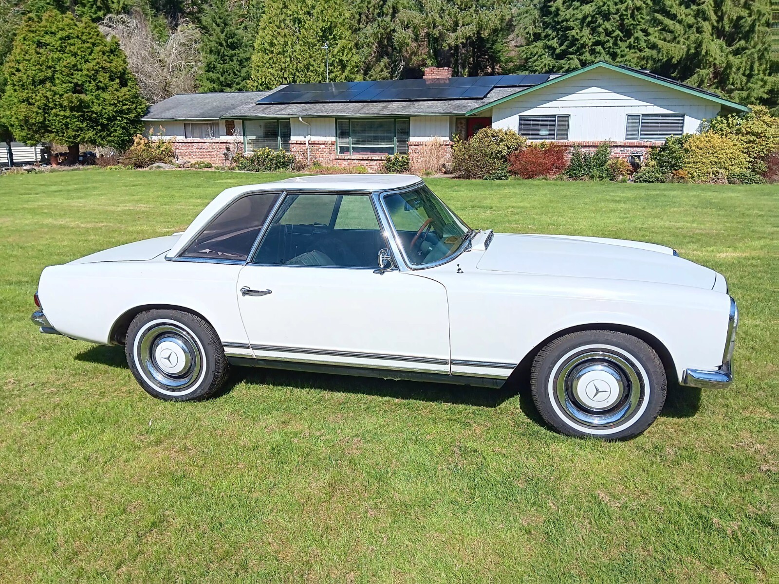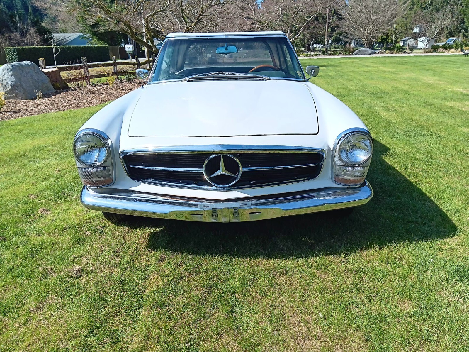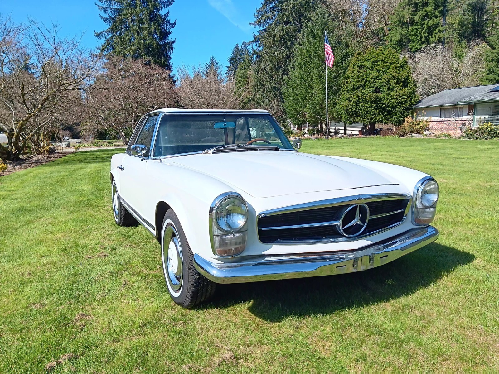 One of only 185 1967 Mercedes 230SL. The car is complete but not in running condition. It was last registered and driven in 2019 and has been in storage in a private residential garage since then. When I purchased it we did a compression test and found roughly 150 psi on all cylinders. The fuel pump by the gas tank is dead and I believe the main reason why it won't run. It will fire off with a shot of starter fluid or spray gas shot into the intake manifold. A bore scope was used to examine the inner cylinders and nothing unusual was found. Everything is in place and original in the engine compartment. I was told the radiator and some fuel lines were replaced in 2017 and the car driven occassionally up until it was parked in 2020 during covid.