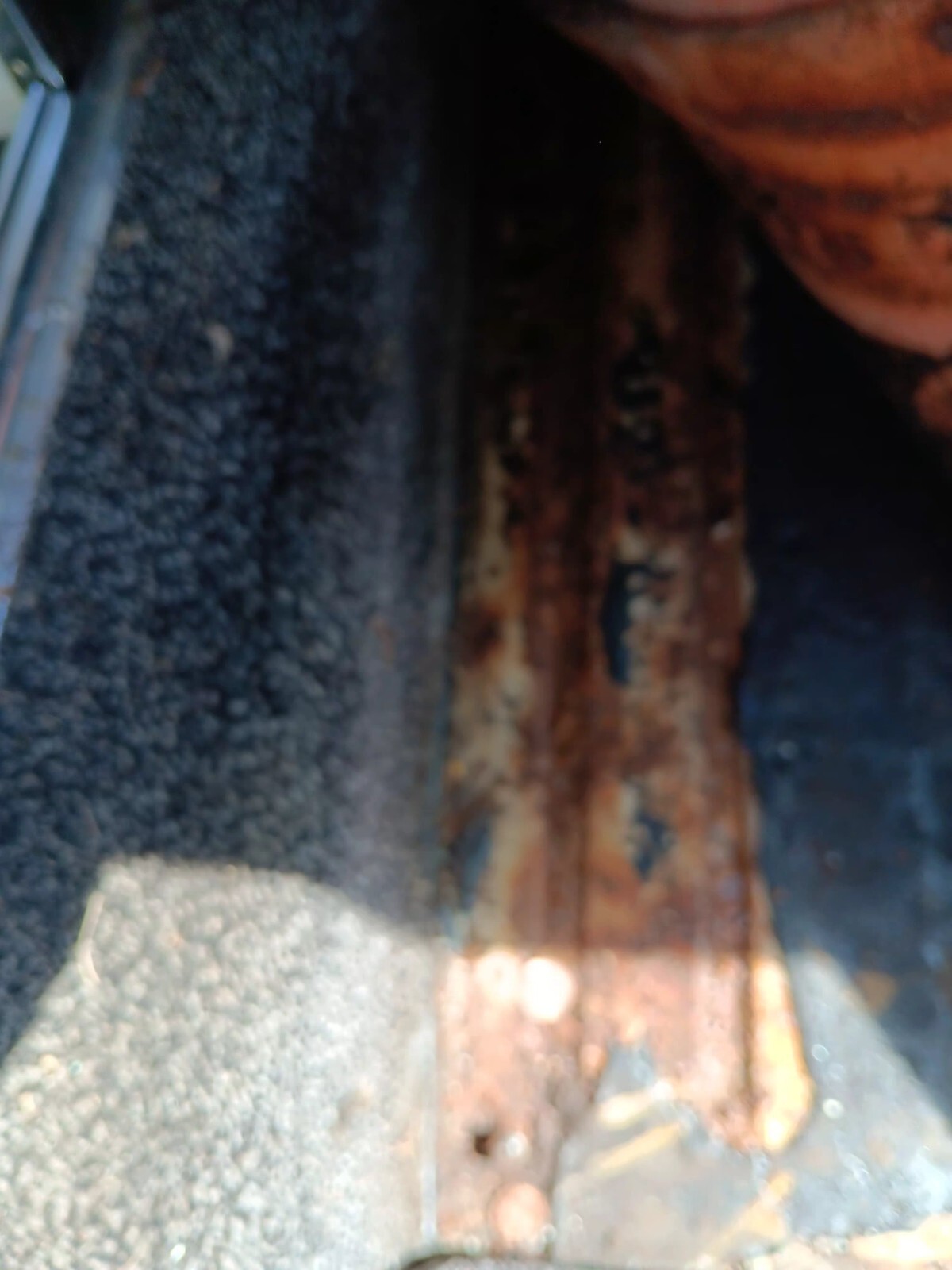 The car has been repainted at some point in the past, a decent enough job that it could be touched up and brought to an aceptable level for a nice daily driver. There are minor scrapes and one small dent in the roof from having stuff stored on it while garaged. There are also some rust bubbles forming in the driver's rear fender flare. I found one soft spot, about 6" long, in the bottom of the passenger side rocker. That is the only structural rust I've found, easily patched. I would not replace the entire rocker panel. Other than those two areas the car appears remakably rust free. There is some surface rust in both front footwells but the floors appear solid. The trunk floor is also quite solid aside from some minor surface rust in the passenger rear corner. gl