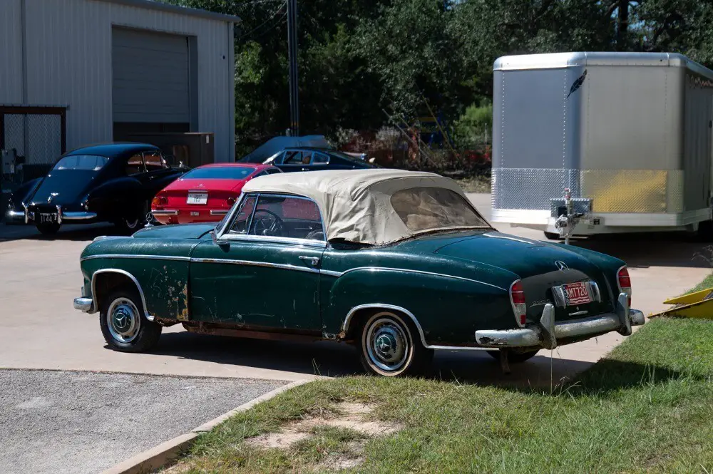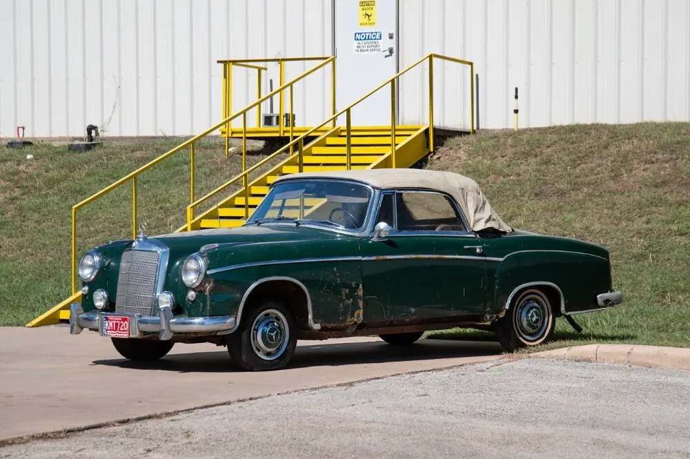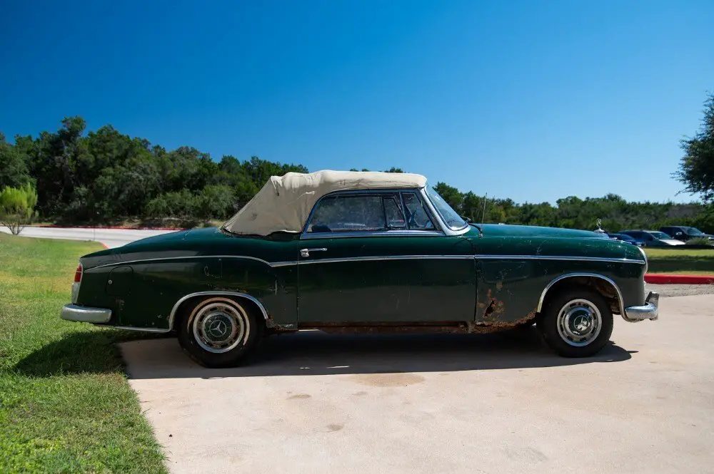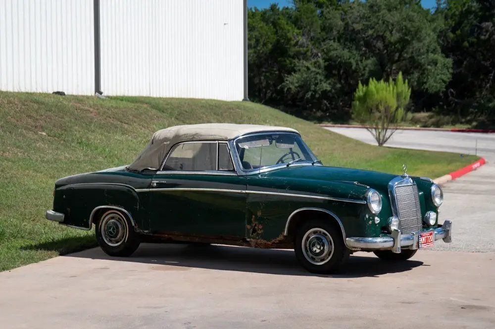 This 1957 Mercedes-Benz 220S 'Ponton' Cabriolet is a highly original example in need of complete restoration. Green with tan leather interior. This car has never been restored so you can be the first to do so. Just out of long-term ownership and storage. It comes complete but has rust. First introduced in 1956, the Mercedes-Benz 220S sat atop the 220 model range and was the last of the Ponton? series cars. Featuring a unitized body/frame construction and a fully independent suspension, the 220S provided the
