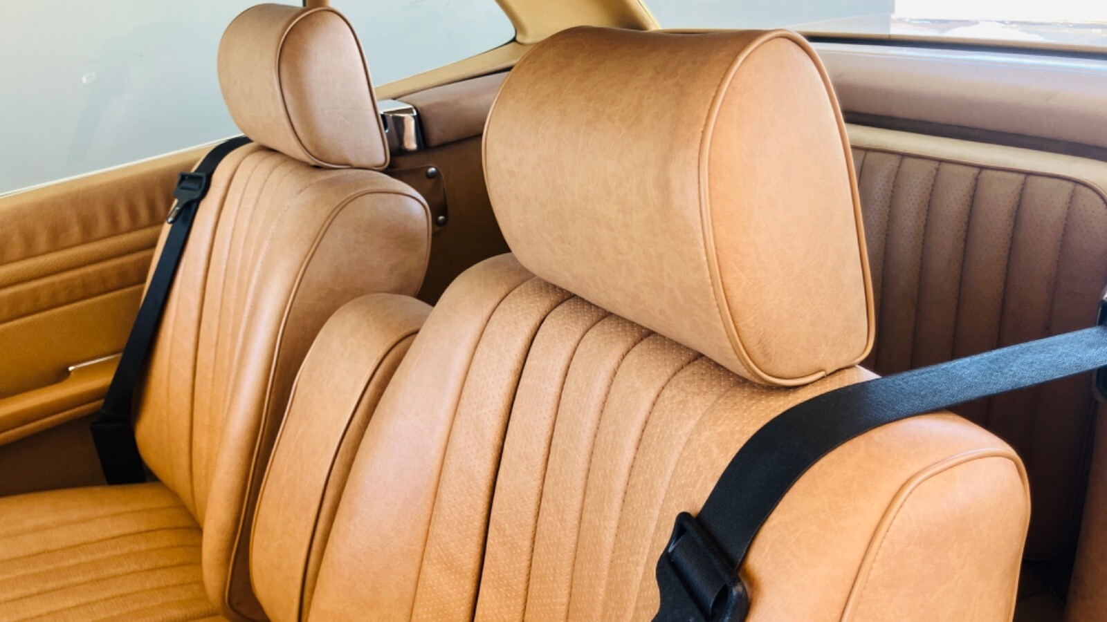 • new Mercedes-Benz Tex vinyl driver & passenger-side seats in Palomino with matching armrest & rear kinder seat