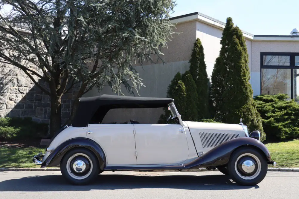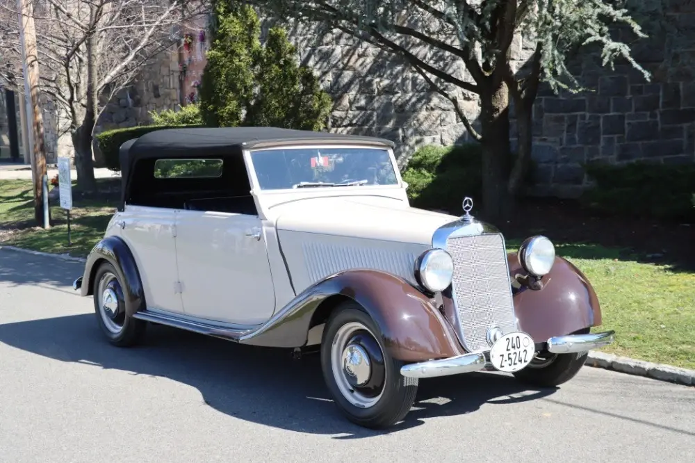 This rare and superb 1951 Mercedes-Benz 170Da has undergone a professional restoration leaving no expense spared and having covered minimal mileage since completion. Its rarity and infrequency on American soil make it a truly exceptional and fascinating find, particularly with its diesel engine. It is finished in a two-tone cream and brown exterior over a black interior, a particularly appealing livery for this body style. These early diesel automobiles represent a groundbreaking achievement in automotive history and would be a prized addition to any esteemed collection, particularly one focusing on pioneering "alternative fuel" vehicles. This 170 comes with all four window inserts for all-weather touring, while the fold down windscreen provides wind-in-your-face excitement when the sun is shining. Accompanied by a Mercedes service manual, some restoration photos as well as some spare engine parts. Surely a wonderful opportunity to acquire a rarely seen early diesel Mercedes in comprehensively restored form.The Mercedes-Benz W136 series, a line of four-cylinder passenger cars, served as the brand's flagship model from the mid-1930s to the 1950s. Debuting in February 1936 as the 170 V (the "V" designation denoted "Vorn," or front, distinguishing it from the rear-engine 170 H), it succeeded the W15 Type 170 and became Mercedes' best-selling model from 1936 to 1939, with over 75,000 units manufactured by 1942. Surviving Allied bombing during World War II, its tooling facilitated post-war reconstruction. Resuming production in 1947, the 170 V regained its top-seller status until 1953. Most models were four-door "Limousines," although diverse body types were offered, including the "Cabrio-Limousine" with a foldaway canvas roof, while more utilitarian taxi variants featured large rear luggage racks. The range also included two-door "Cabriolet A" and "Cabriolet B" models. Despite war disruptions, Mercedes-Benz production recommenced in 1946, initially focusing on light trucks and ambulances before passenger car production resumed in 1947. The 170 V saw a resurgence in 1949, including a diesel variant dubbed the Mercedes-Benz 170 D, renowned for its exceptional fuel economy.Chassis no. 136.174.13127/51