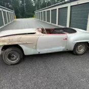 Inside, he black MB-Tex seats all look good with only a few minor tears major and wear visible. good tan molded mats throughout the interior. The black door panels and dashboard are matched with each other and are a nice contrast to exterior of the car. The headliner mirrors the floor of the cabin and completes the theme. The original equipment leather wrapped steering wheel is in very good condition with only minor cracks. The fuel gauge and horn are inoperable. The AM/FM Sanyo tape player functions as designed Included with this car is the original South Carolina Mercedes-Benz are wiring diagrams, arts catalogs owners manual, tamped maintenance booklet and even two (!) Mercedes data build cards, nd extra keys (including the keys to raise the antenna)!