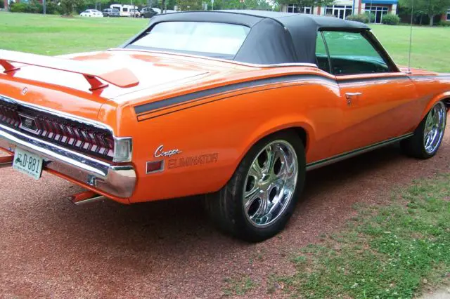 This is a great find. This is a 1970 Cougar convertible Eliminator tribute. The car has 94360 miles on it. This the best of both. The Eliminator had no air conditioning and a straight shifttransmission andno convertibles. There were only2322 convertibles made in 1970. Thatabout the same asthe Eliminator.The entire bodyand thefloors were repaired thenpainted with POR 15 if you know anything about sealing a car to protectfrom any rust in the futurethis is the best.