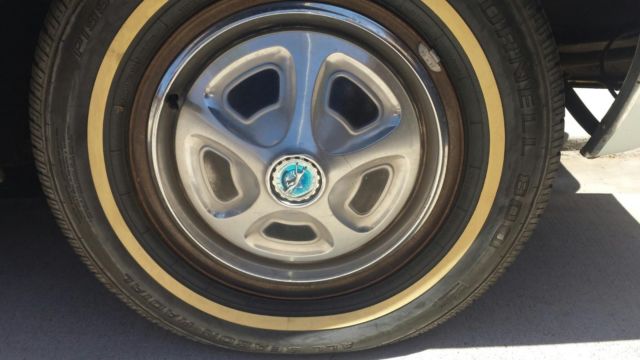 The 351C 2-barrel engine runs out strong but burns oil and could use a refresh. I've recently driven it to Palm Springs (about 240 miles there and back) with no problems other than needing to stay ontop of the fluids (It's a 47 year old car and has normal leaks).New radiator, starter, water pump, oil pump, timing chain, voltage regulatorand Pertronix upgradeddistributor have beeninstalled. I've also installed disc brakesto replace the front drums.Factory air conditioning with a new smallcompressorthat needs a charge. The last owner had a toggle switch installed on the dash to turn the compressor on/off. The driveshaftwill need to be balanced as I removed it to replace the transmission rear seal and didn't mark it to put it back where it was so you can feel a mild vibration at about 40mph. The factory AM radio is in place but not working (I suspect antenna wire not connected) and the horn does not work either. The interior is mostly original with a good headliner, nice door panels and good gauges.The seatswere recovered in dark blue cloth and look really nice. The carpet is worn and could use replacement; that's the only change I would make to the interior. The car has worn through a set of new tires in ashort time indicating it's time to replace some steering components, though I have replaced the rag joint at the steering box. The rear tires are still new with very low miles, front tires are pretty old and need replaced before you drive the car anywhere--so bring a trailer to pick it up. It can go for rides around the block though!