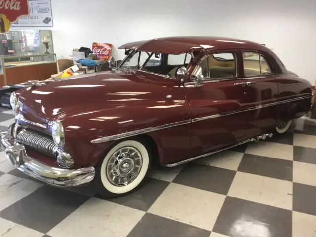 IM SELLING THE SWEETEST 50 MERCURY I HAVE EVER SEEN. IT DRIVES AS NEW, AND THE A/C MAKES IT A VERY COMFORTABLE DRIVER. A TIGHT CAR, NO WIND NOISE, NO BODY ROLL,AND WITH LOTS OF POWER. IT HAS HAD A FRAME OFF PROFESSIONAL RESTORATION JUST OVER 9,000 MILES AGO WITH NEW BODY MOUNTS, NEW GAS TANK, LINES AND BRAKE LINES, BUSHINGS AND SUSPENSSION PARTS, BRAKES, ETC. THE CAR HAS BEEN LOWERED. IT HAS WHITE WALL RADIALS ON IT WITH 1957 CADILLAC HUB CAPS. IT HAS REAL DUAL SPOTLIGHTS. ALL OF THE GAUGES HAVE BEEN REBUILT AND WORK GOOD. HAS WORKING SUN TACH .THE ODOMETER WAS SET TO 0 WHEN RESTORED SOME YEARS AGO. IT HAS ABOUT 9600 MILES ON IT SO FAR SINCE RESTORATION.THE CAR HAS A 390 HOLLEY CARBURATOR AND UPGRADED INTAKE, AND EXUAST ON IT. THE PICTURES ARE CURRENT AND TELL THE STORY, SO BUY WITH CONFIDENCE. THE ENGINE WAS REBUILT AND BALANCED, WITH THE UPGRADED OIL PUMP SYSTEM INSTALLED INSIDE THE ENGINE,THAT MAKE THE FLATHEADS PERFORM BETTER THAN WHEN NEW, AND INCREASE POWER AS WELL. THE ENGINE REBUILD COST WAS OVER 7,000. DOLLARS ALONE. I HAVE ALL RECIEPTS. THE NEW RADIATOR IS HUGE, AND HAS AN ELECTRIC FAN. THE INTERIOR IS EXCELLENT AND HAD A NEW HEADLINER INSTALLED LAST YEAR. IT GOES DOWN THE ROAD AT CRUSING SPEEDS OF 65 MPH ALL DAY LONG, DUE TO THE 9 INCH FORD REAR WITH 325 GEARS, UNLIKE MOST FLATHEADS THAT STRAIN TO RUN 65 MPH AT ALL. THERE IS NO RUST IN THIS CAR, UNDER IT OR ANYWHERE ELSE. SEE PICTURES OF BOTTOM PANS, ROCKERS, REAR PANS, FENDERS AND FLOOR BOARDS. IT HAS HAD SOUND DEADENER INSTALLED.THE WIRING HARNESS HAS BEEN REPLACED, MOST GLASS WAS REPLACED, WITH THE TINTED GOOD STUFF, RUBBER AND FELT AS WELL.ALL CHROME HAS BEEN RESTORED OR RECHROMED. LOOK AT THE PICTURES.THE ONLY NEGATIVE THING I CAN SAY ABOUT THE CAR IS THAT THE PAINT HAS A FEW SMALL BUBBLING SPOTS APPEARING ALONG THE BOTTOM OF DOORS AND FENDERS, AS IS COMMON AFTER SEVERAL YEARS OF BEING PAINTED,BUT THEY ARE NOT BAD. SEE PICTURES.THIS MERCURY DRIVES AND SHIFTS GREAT, AND CAN BE DRIVEN ANYWHERE WITH CONFIDENCE. IT HAS MADE SEVERAL TRIPS TO OTHER STATES THIS YEAR, WITH NO ISSUES. IT HAS AN UPGRADED AIR CONDITIONING SYSTEM INSTALLED AND IT WORKS GREAT. CD CHANGER IN THE TRUNK.THE STEERING WHEEL IS THE 16 INCH NEW CORRECT MERCURY WHEEL AND STEERS LIKE A DREAM. AND OF COURSE ALL BULBS, AND ELECTRICALS HAVE BEEN CHANGED OVER TO THE 12 VOLT SYSTEM. IF YOU HAVE ALWAYS WANTED A NICE ORIGINAL 50 MERC WITH UPGRADES, NOWS YOUR CHANCE TO BUY IT BEFORE SOMEONE ELSE DOES, AND YOU KNOW WHAT IT COST TO DO A FRAME OFF RESTORATION, AND THE CHROME, AND THE INTERIOR, AND PAINT, AND RE-WIRING AND LIGHTS, AND SUSPENSSION, AND ALL THE MAN HOURS. YOU COULD NOT POSSIBLY BUILD THIS MERCURY FOR WHAT IM SELLING IT FOR, EVEN IF YOU HAD A NICE TIGHT BODY TO START WITH. THIS IS A PROVEN DRIVER AND SUPER NICE PIECE OF AMERICAN CAR ART GUYS,THAT NEVER GOES OUT OF STYLE, AND ARE HARD TO FIND IN THIS SHAPE, AND AT THIS PRICE.YOU CAN FLY IN & DRIVE HER HOME, OR I WILL HELP YOUR SHIPPER LOAD IT CORRECTLY AND CAREFULLY. CLEAR N.C.TITLE IN HAND. INTERESTING TRADES IN THE $30K RANGE CONSIDERED. BID TO WIN IT, AS IT WILL SELL QUICKLY. CARS THIS NICE ALWAYS DO, DONT LET IT GET AWAY IF YOU HAVE ALWAYS WANTED A NICE ONE. I WISH I COULD KEEP IT, BUT CANT. I HAVE IT ADVERTISED ELSEWHERE LOCALLY SO I WILL END THE AUCTION IF I SELL IT. THANKS FOR BIDDING ON MY CAR, AND I KNOW YOU WILL LIKE IT BETTER THAN YOUR MONEY. ANY OTHER INFORMATION OR PICTURES GLADLY PROVIDED, AND INSPECTIONS ARE INCOURAGED AND WELCOMED. IM IN ROCK HILL,SOUTH CAROLINA, NEAR CHAROLOTTE, N.C., THANK YOU FOR BIDDING ON MY CAR, ROCK.