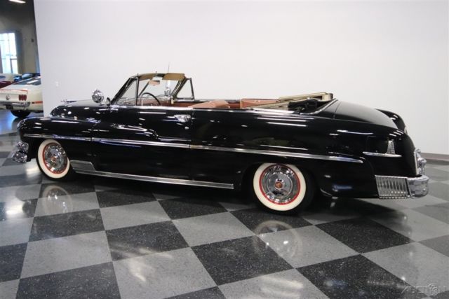 Restored to be a true stunner, this 1951 Mercury Eight Convertible is long, loaded, and legendary. So if you're looking for a rare and classy cruiser, read on... This was the final year for the legendary Mercury Eight series. These really had a terrific look to them with the grille and the bumper are part of an integral design. And you see the same in the rear where the ends of the bumper design expand to merge with the hint of tailfin. And even the brightwork details are great, like the large hood ornament, dual spotlights, and sweeping side trim. We especially love the factory wheel covers with bright red rings drawing attention to the Mercury logo center. You see all of this so vividly because the glossy black provides the perfect canvas to showcase all these details. And as people look closer (because they definitely will) old-school enthusiasts will give you nods of respect on the classic lacquer paint. But more than just a great total presentation, these are rare. As an expensive premium droptop, Mercury produced less than 6,800 examples in 1951. And how many do you think survived to look this good 65+ years later? The two-tone tan interior is pure 1950s cool. And the way it looks against the black paint has a timeless elegance. Also, like any good American cruiser, there's plenty of room to share the experience with family and friends. It has a terrific time capsule like presentation with the bright dash that nicely integrates all the gauges. And even the original AM radio is still on display. Plus, as a premium Mercury, you get some great premium features - after all, how many '50s classic do you see with a power seat? But we bet your favorite two luxuries will be the power windows and power convertible top. Together, they mean you never have to leave the driver's seat to go from enclosed luxury to a wind-in-your-hair experience. Under the hood is exactly what you want to see - Flathead V8 power. Mercuries were popular, because these 225 cubic-inch motors had extra displacement and extra torque over what was available at Ford during the time. And this legendary powerhouse not only looks authentic - right down to the oil bath air cleaner and bright blue block - but we also suspect it's original to the car. This has been given the right servicing, including adding an electric choke and electric fan. That means this classic fires-up readily and knows how to stay cool in traffic - exactly what you want in a cruising classic. This makes a nice sound out of the glasspack dual exhaust, and you have the added control of the classic column-shifted three-speed manual transmission. Plus, no '50s experience would be complete without whitewall tires. Rare, loaded, and stunning - this was born an upper-class cruiser, and thanks to the right investments, that reputation for this one has only grown. So don't miss this classy classic. Call today!!!