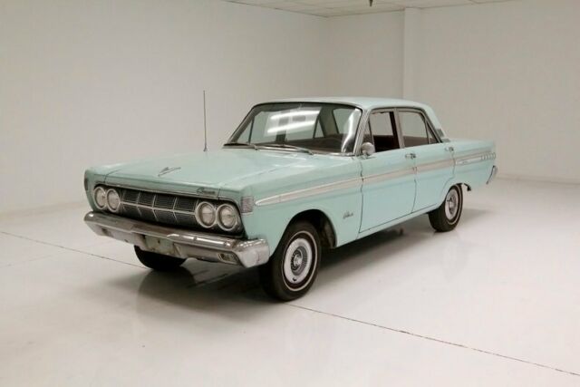 Starting life as a factory Anniversary Silver painted car, we now note a Sea Green Respray. Some chips in the paint, as well as dulling in areas are duly noted. There are also areas of bubbling and rust through on the front wheel wells. Chrome, Brite-work, and badging show signs of age with dimpling, pitting and some rust. The wraparound chrome side panel trim has been replaced by a single wide strip of white painted interior surrounded by chrome. The rear "Dixie Cup" taillights have been replaced this year by a single strip of 3 circular taillights, with less protruding individual lights. More upscale turbine style wheel covers emblazoned with MERCURY are on all 4 corners.