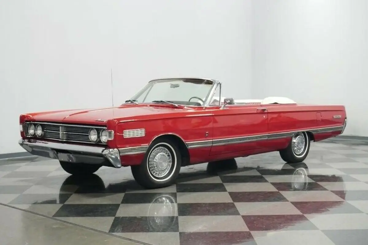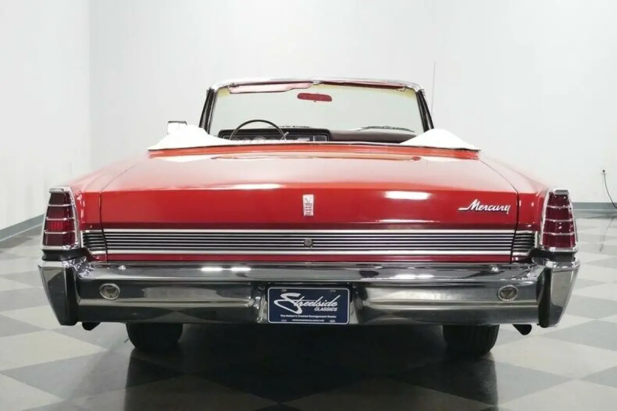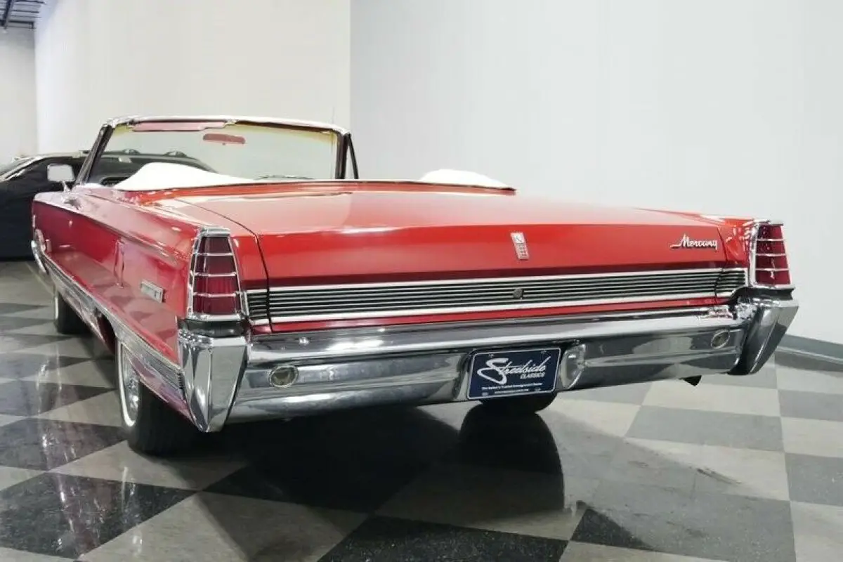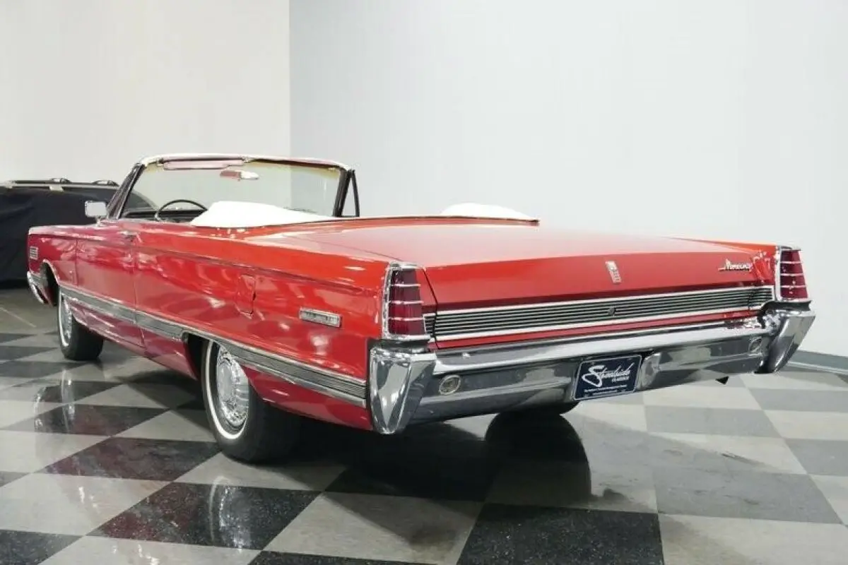 How often have you seen a Mercury Park Lane convertible? We know the answer is likely never because there were less than 2,600 of these produced in 1966...That's it! Now over half a century later how many of these classics do you think are remaining? This example looks quite good as it balances its premium and sporty images. For example, the factory-correct red makes a bold first impression, and it has been updated later in life so that this sunshine-friendly convertible still has a nice gloss on a Sunday drive. And if the weather does turn wet, the white convertible top gives this one the all-American appeal of a Coca-Cola bottle. The full-length side trim showcases the straightness of the sheetmetal. Plus, its sporty ribbed design matches the rear panel. There's all the right brightwork, including a front bumper that's wide enough to own the road, the factory wheel covers, and a rear bumper that makes up half of the back end. So this Mercury is elegant, sporty, coordinated, premium, imposing, and absolutely appealing - all in the first glance.