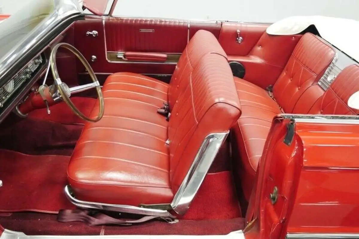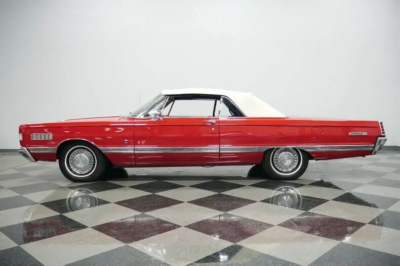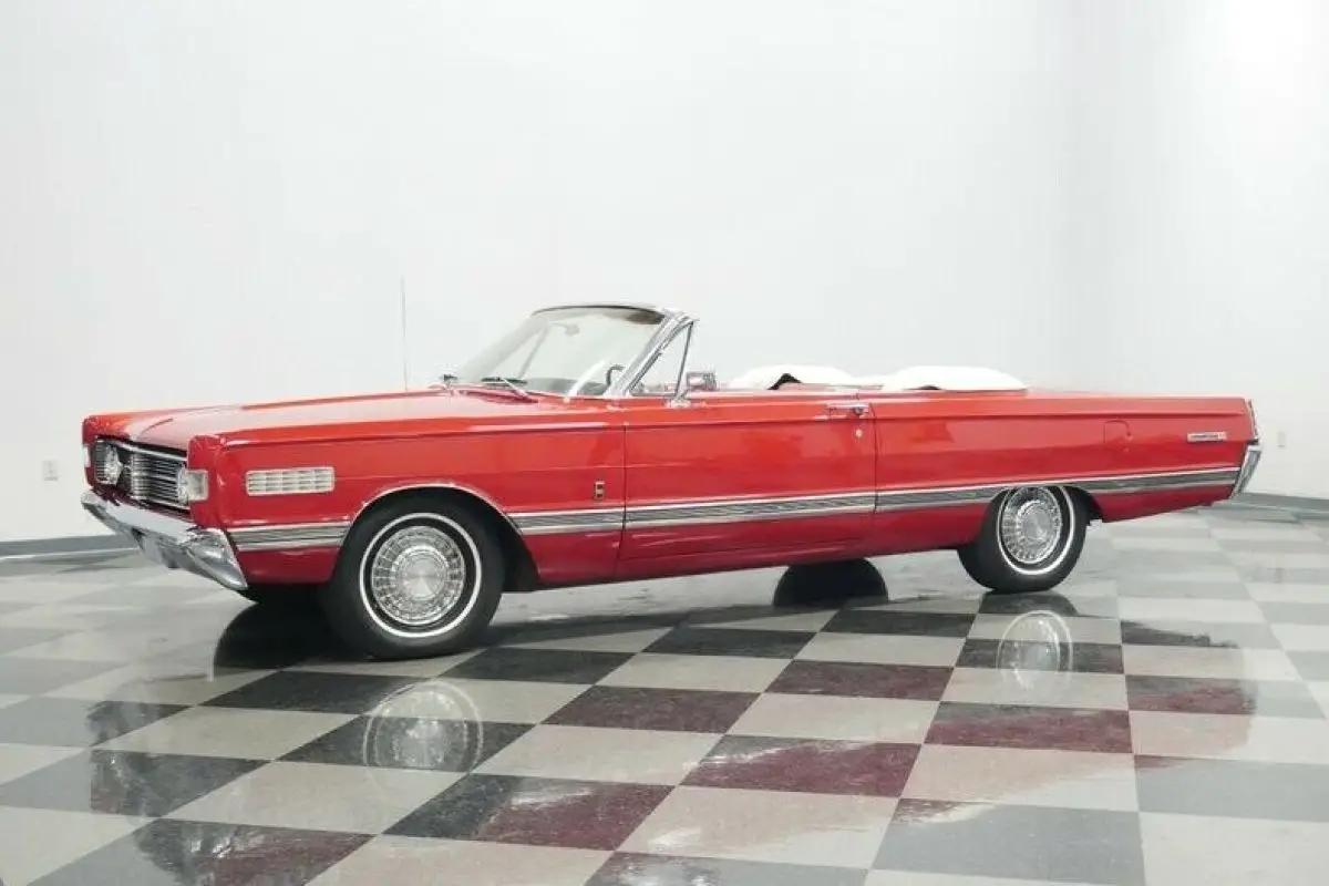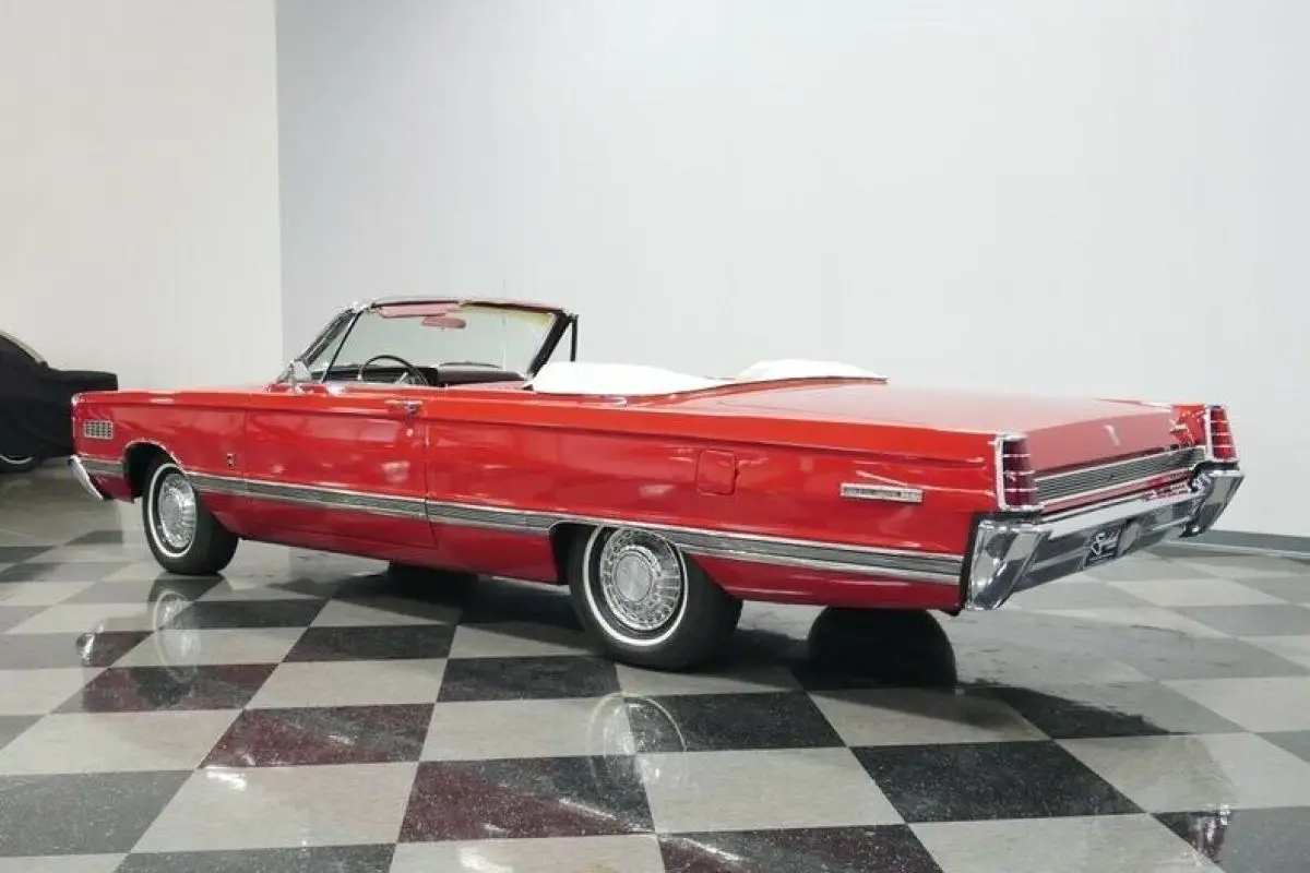 How often have you seen a Mercury Park Lane convertible? We know the answer is likely never because there were less than 2,600 of these produced in 1966...That's it! Now over half a century later how many of these classics do you think are remaining? This example looks quite good as it balances its premium and sporty images. For example, the factory-correct red makes a bold first impression, and it has been updated later in life so that this sunshine-friendly convertible still has a nice gloss on a Sunday drive. And if the weather does turn wet, the white convertible top gives this one the all-American appeal of a Coca-Cola bottle. The full-length side trim showcases the straightness of the sheetmetal. Plus, its sporty ribbed design matches the rear panel. There's all the right brightwork, including a front bumper that's wide enough to own the road, the factory wheel covers, and a rear bumper that makes up half of the back end. So this Mercury is elegant, sporty, coordinated, premium, imposing, and absolutely appealing - all in the first glance.