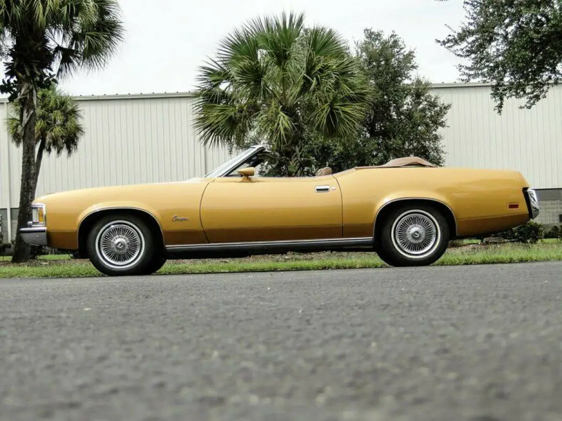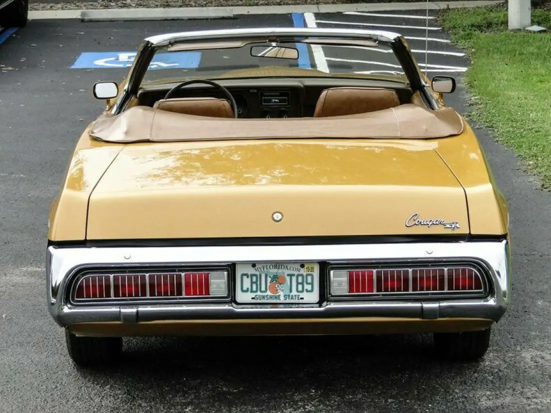 Please visit for additional photos, information and a video. The Mercury Cougar is the more luxurious sister car to the Ford Mustang. This 1973 Mercury Cougar XR7 convertible is the top of the line and is loaded with options. From high back bucket seats to A/C, power steering, power brakes, a power convertible top, white wall radial tires and wire wheels. The 351 under the hood packs a punch and a nice rumble so those around will know this is a wolf in sheep's clothing! The 351 is mated to a stout C6 automatic transmission and runs out to 2.75 gears that are great for highway cruising. It is one of only 646 built with this engine and transmission combination. The door tag gives us a lot of information on this Cougar. The 76F body code indicates an XR7 convertible. The 6F paint code is for Bright Yellow Gold Metallic. Only 113 XR7 Convertibles were made with this paint and trim code, making this one very rare Cougar. The DF trim code is for Medium Ginger interior, which this car still features. The interior is in excellent condition throughout! Drop the top with the push of a button and cover it with the included matching top boot for a clean hidden look. Under the hood is almost completely stock and shows well. This XR7 comes with a car cover, fender apron and top boot bag for safe storage. It also has a full-size spare, just in case. It is solid and clean and just had a lot of routine maintenance performed so the next owner can enjoy it worry free! This vehicle is eligible for an Extended Service Contract through Classic Vehicle Protection. Please visit warranty for more information. For additional information on this and our other classic and collectible cars for sale, please visit For assistance please call the office at 941-845-4461, text our cell phones at 813-358-8830, or email us at . We are located between Tampa and Sarasota. We are 90 minutes from Orlando and Fort Myers.