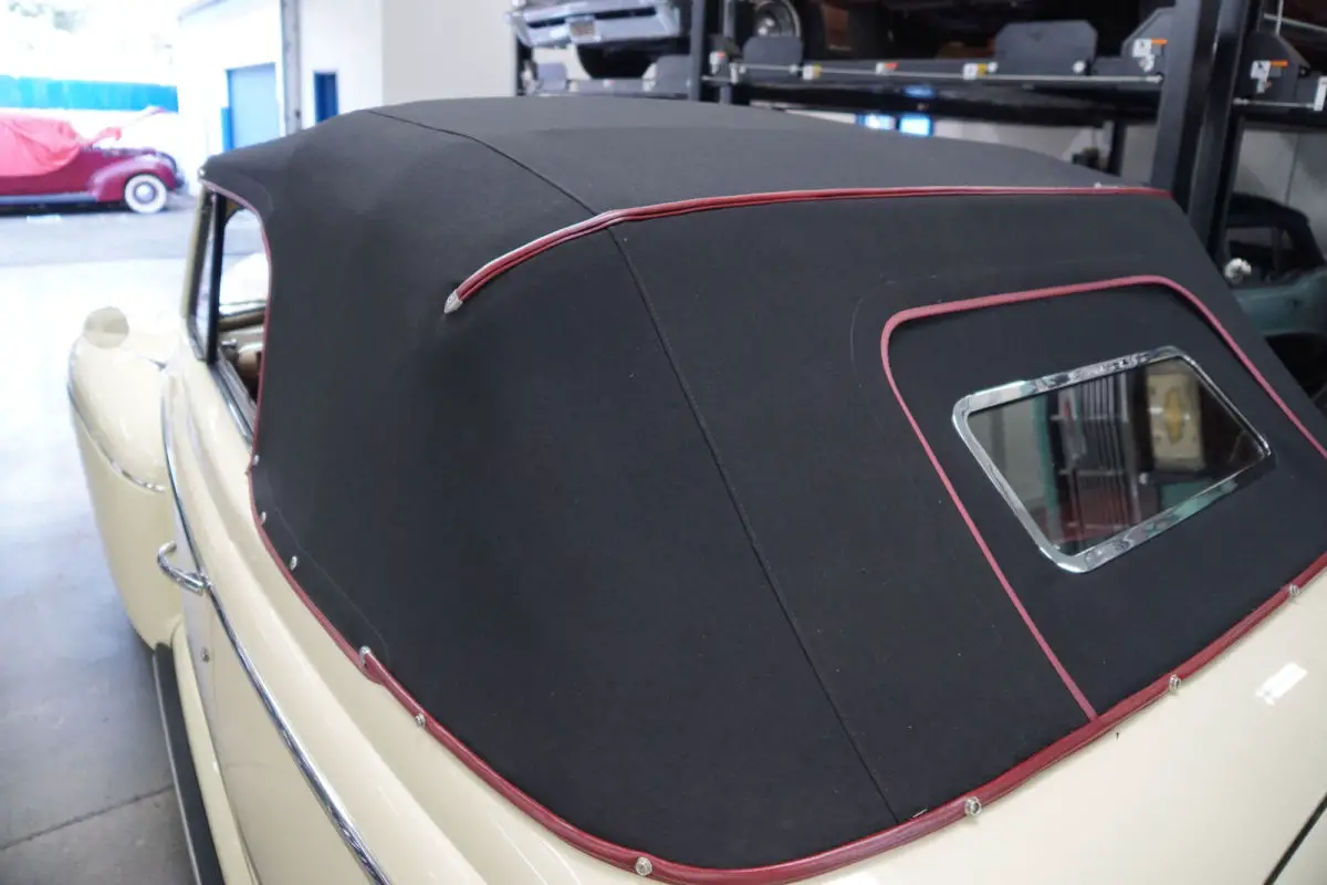 Recently acquired from a prominent collection, this particular car has been absolutely beautifully frame off restored with no expense spared and with extraordinary attention to detail and which is finished in a striking 'Cream' color with a striking 'Red' leather interior and a new convertible power soft top. The car looks absolutely beautiful and has been professionally restored throughout with the whole car in quite exceptional and virtually flawless condition throughout! The 'Black' Power Soft Top with Red Piping is also new as is all the restored chromework. The original spare wheel is in it's rightful storage place in the trunk. The Flathead 239 95HP V8 engine is extremely strong and powerful and this particular car drives magnificently - must be driven to be believed - drives straight as an arrow with no strange road wobbles, shakes or rattles - a truly remarkable daily driver that will give any modern day car a run for it's money!