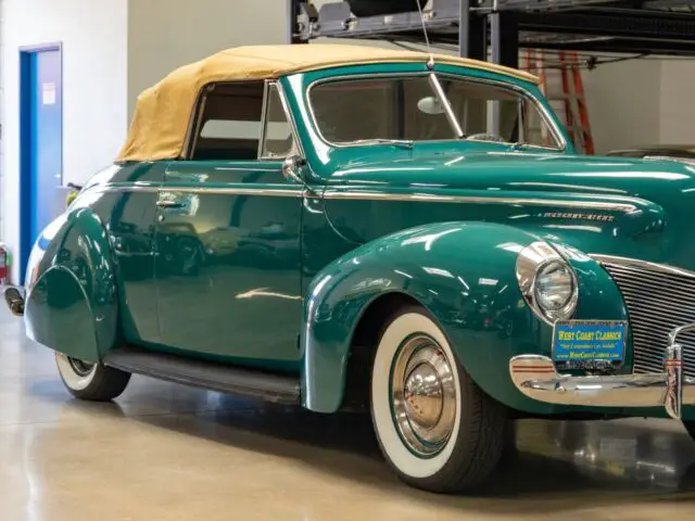 West Coast Classics are proud to present this absolutely exceptional and stunning example of this virtually all stock and completely rust and accident free and very rare 1940 Mercury 09A 2 Door Convertible Coupe with it's reliable and virtually bullet-proof 239 L head V8 engine (a slightly larger version of Ford's 'V8/85' having the same stroke but larger bore with brake horsepower of 100 in '41) with a manual synchromesh 3 speed transmission and mildly customized with performance upgrades resulting in the ultimate 50s style cruiser. Solid original car that was fully restored a few years ago!