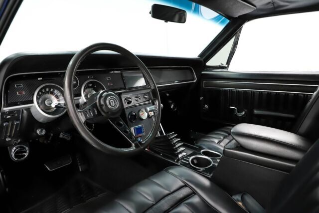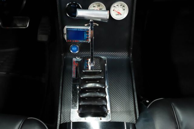 INTERIOR: The dash has a new pad and carbon fiber looking decal. Custom made console has cup holders, B&M shifter, and a push button starter. Custom touch screen stereo system with sub-woofer and a back up camera. The seats were reupholstered, headliner was replaced. Door panels are overall very good.