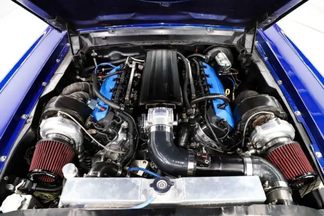 ENGINE COMPARTMENT: 5.0 Coyote motor is an aluminum 32 valve motor that makes well over 400 hp stock. It is capable of handling much more with modifications. This one has On3 performance 67 mm twin turbos! It also has a Velocity intake and a big inner cooler. Upgraded Vintage Air heat and a/c system. It also has power steering and brakes. It runs cool with a big aluminum radiator.