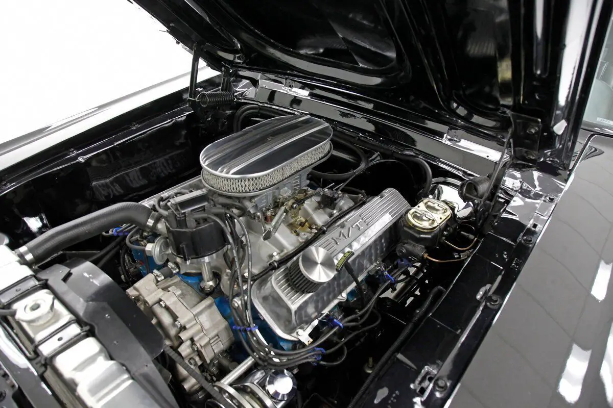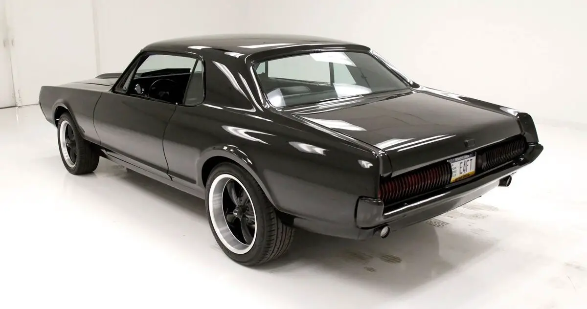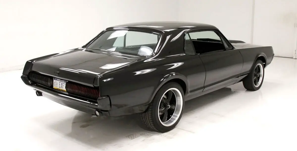 1967 Mercury Cougar Not exactly hot on the heels of Ford Division's extremely successful Mustang, was the 1967 Cougar. Actually, the decision to go ahead and build Mercury's version of the Mustang was made in February of 1965. The Cougar was envisioned to be a more elegant, high line Pony car that would exude a bit more class and yet still encompass the qualities that made the Mustang so popular-a smaller sporty sedan that would handle well and still be economical enough for the younger customer. For consignment...a restomod version of the Cougar right out of 1967. Fully murdered out in sinister black, a big block V8, upgraded suspension, 4-wheel disc brakes and custom touches galore. It's time to grab this untamed kitty by the tail and enjoy the 1967 Motortrend Car of The Year. Exterior The Cougar is quite different from the Mustang in the realm of styling. Most noticeable was the front end "electric shaver" split Grille treatment with concealed headlights and this particular car has upgraded electric actuation and LED lighting that leads to the reverse scooped hood. At the rear, it came with T-Bird sequential taillights. These taillights have had their sequencers removed but still shine brightly. Deep end of the pool sinister midnight black covers the panels which show some usage, inclusion and cracks, particularly at the molded in rear quarter caps but all else is straight and smooth. All chrome and brightwork has been fully blacked out and the door handles have been shaved. Dual exhaust with blacked out tips peek out the back at the bottom of the chassis. Black with polished lip 17 and 18-inch Ridler wheels give this cat sure footing along with staggered size and width blackwall radial rubber. A shout out to the trunk with its plaid finished mat and relocated battery. Meow!! Interior Swinging one of the two doors open, we are met with more black in the form of lowback bomber style buckets with tuck and roll inserts and smooth bolsters. A rear bench, providing room for 3, fills the rear of the cabin and all of the seating appears as new. This car does not sport the XR-7 package so we see the standard clean black padded dash giving way for a black steel lower section and twin round gauge pods in front of the driver. These gauges are some of the few deviations from the all black theme with their silver faces and red pointers. An aftermarket tachometer sits to the left just above the slides for the heater/defroster controls and to the right are a series of warning lights. A late model General Motors steering column fronts the dash and gives us the much appreciated tilt feature. In the center of the dash are ducting outlets and an aftermarket AM/FM/CD player and just below are a trio of white-faced gauges. Medium loop black carpet floods the floors and hanging above is a tight black headliner. Finishing off the interior tour are black vinyl door panels with a vertically stitched center and bright chrome for the door actuators and window cranks. These panels present in good shape but do show some wrinkling of the material, especially around the edges. Drivetrain Under the scooped hood is the roaring heart and soul of this Cougar. A rebuilt and bored .030 blue painted 460ci V8 now resides between the fenders and with ported C9VE-A heads, its growl is heard for miles. This big mill is topped with an aluminum intake manifold and a Holley 750cfm 4bbl carburetor. Keeping things well dressed are polished and ribbed valve covers along with a matching air cleaner assembly. A 3-speed automatic C6 transmission sends power rearward through a 31 spline Ford 8.8" 3.73 TracLoc pumpkin to boil the hides. Undercarriage All solid underneath with miles of black painted steel and undercoating. A solid and clean unibody with subframe connectors provides the backbone for the DMJ independent coil spring front suspension and power rack and pinion steering while in the back we see leaf springs on for the ride. Power disc brakes are noted on all 4 corners, and we see a custom dual exhaust system with Cherrybomb mufflers. All these parts work together to keep this big cat sure footed through all the curves. Drive-Ability A quick starter and very smooth runner with acceleration aplenty just push foot further to floor. Bias free braking thanks to the 4-wheel discs, and good handling make this a luxury muscle car much more upscale than the Mustang, and more powerful especially with that big block up front. Our drive garnished quite a few looks and thumbs up and I enjoyed myself so much with this fully functional Merc that I took a second lap just so I could draw in the excitement again. Restomods are hot these days and this car hits every mark properly. All blacked out and straight as an arrow, this Mercury was well thought out during its build and assembly. Much more luxurious than a Mustang, and in this iteration much more powerful to boot. Visit our Hallowed Halls and keep an eye out for the sign of the cat...this one's ready to bite any challengers. VIN DECODE 7F91C546727 7-1967 F-Dearborn, MI Assy Plant 91-Cougar 2 Door Hardtop C-289ci V8 2bbl 546727-Sequential Unit Number